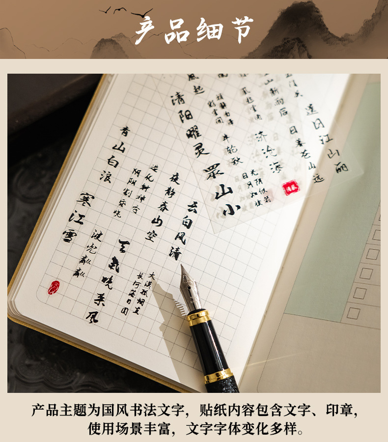 텍스트 스티커 창조적 인 골동품 서예 애완 동물 장식 재료 손 계정 접착제 DIY 손 계정 방수 스티커 도매
