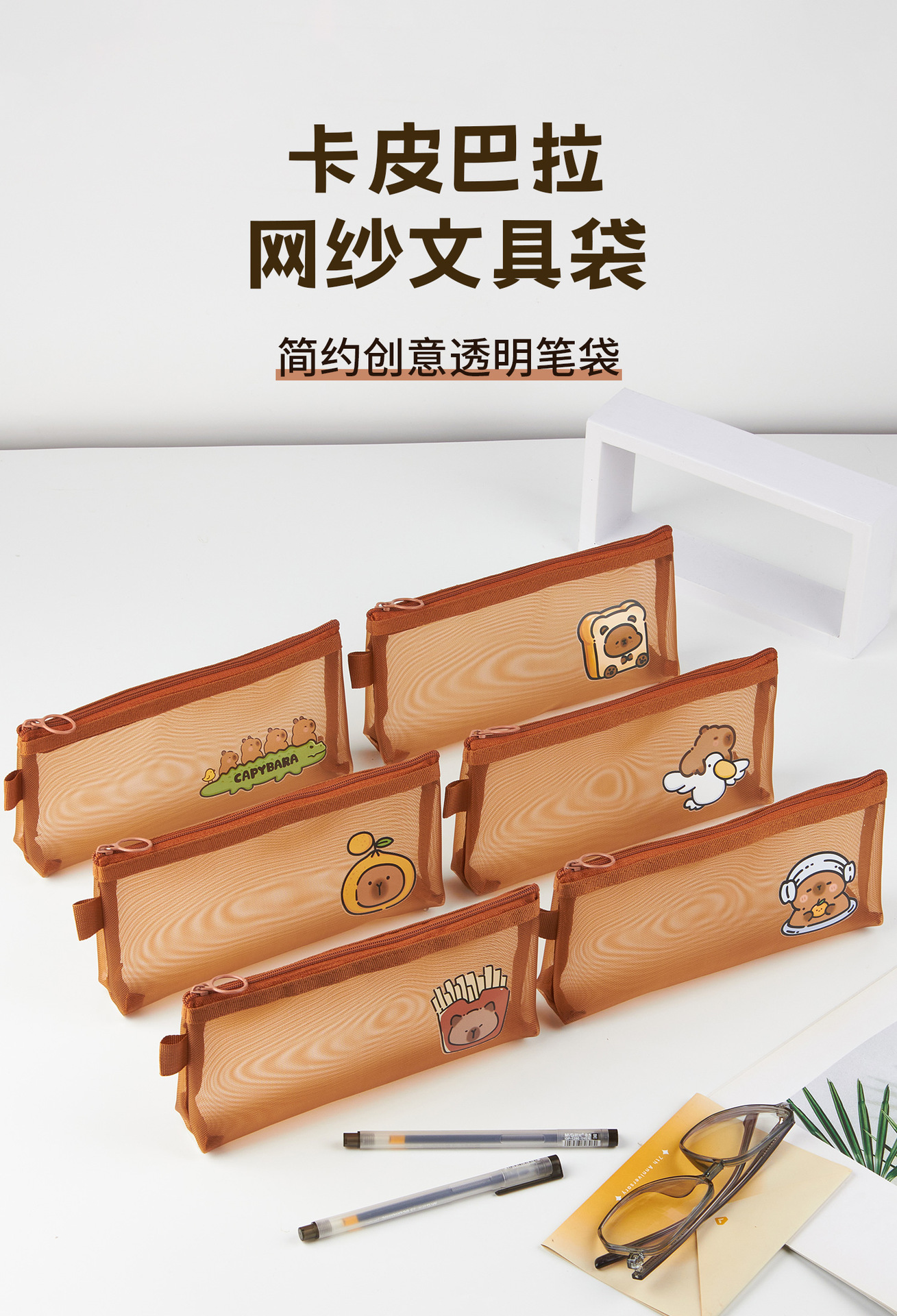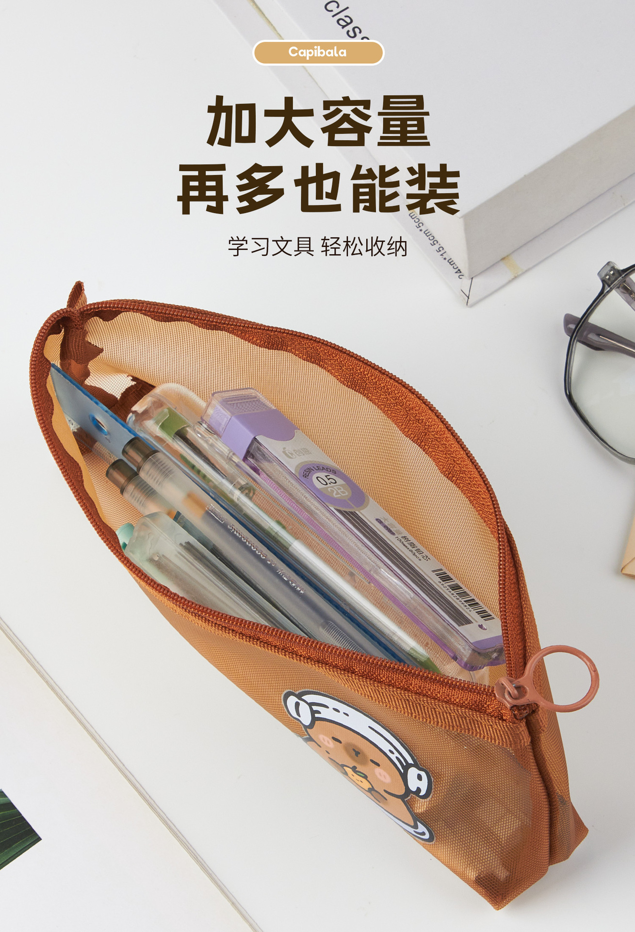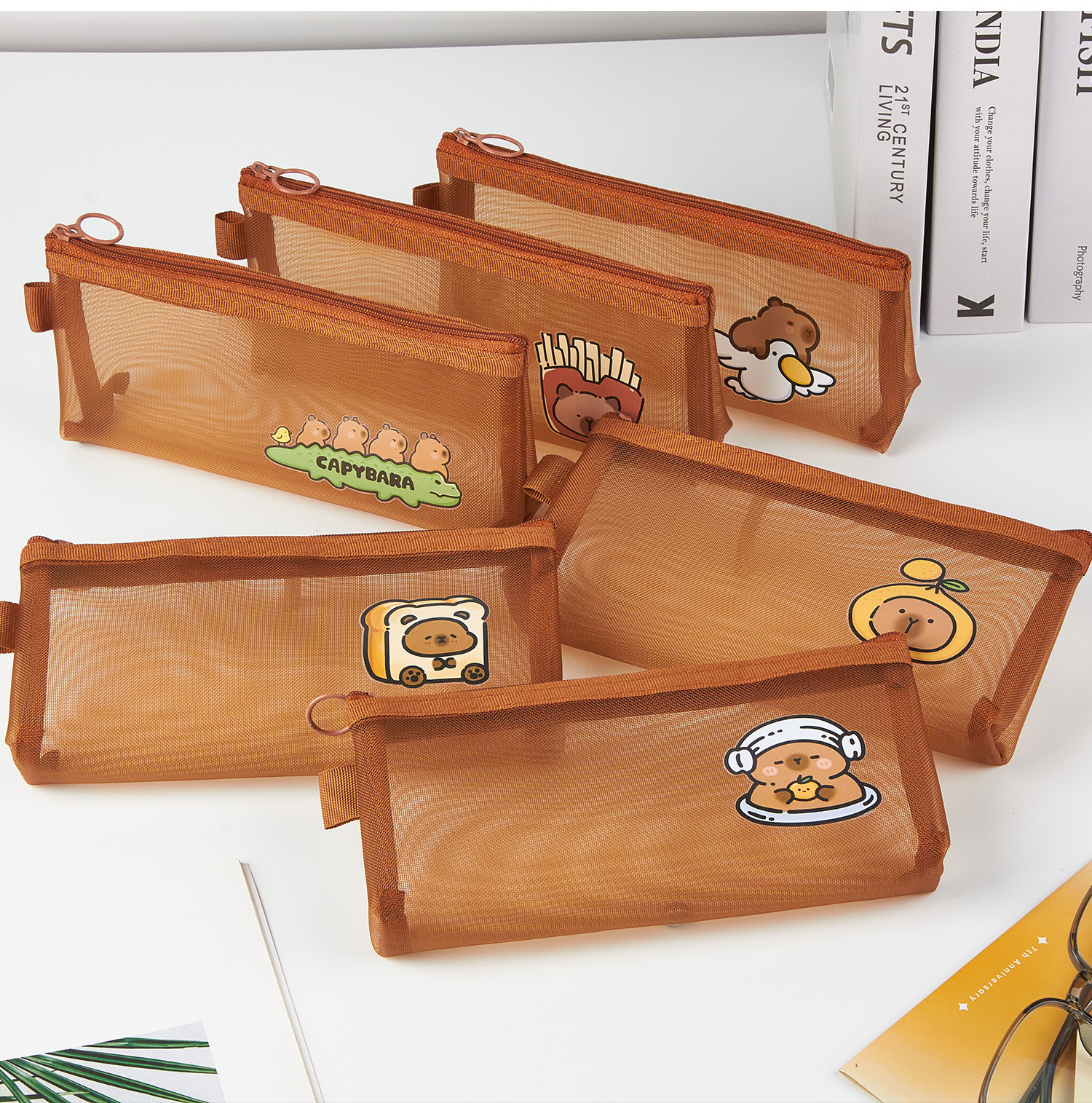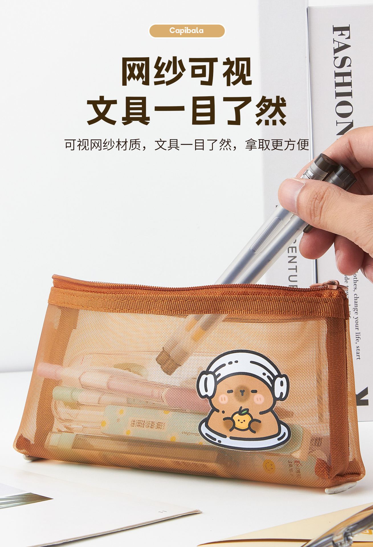 카피 발라 연필 가방 메쉬 문구 가방 귀여운 학생 연필 가방 대용량 저장 가방 투명 문구 상자