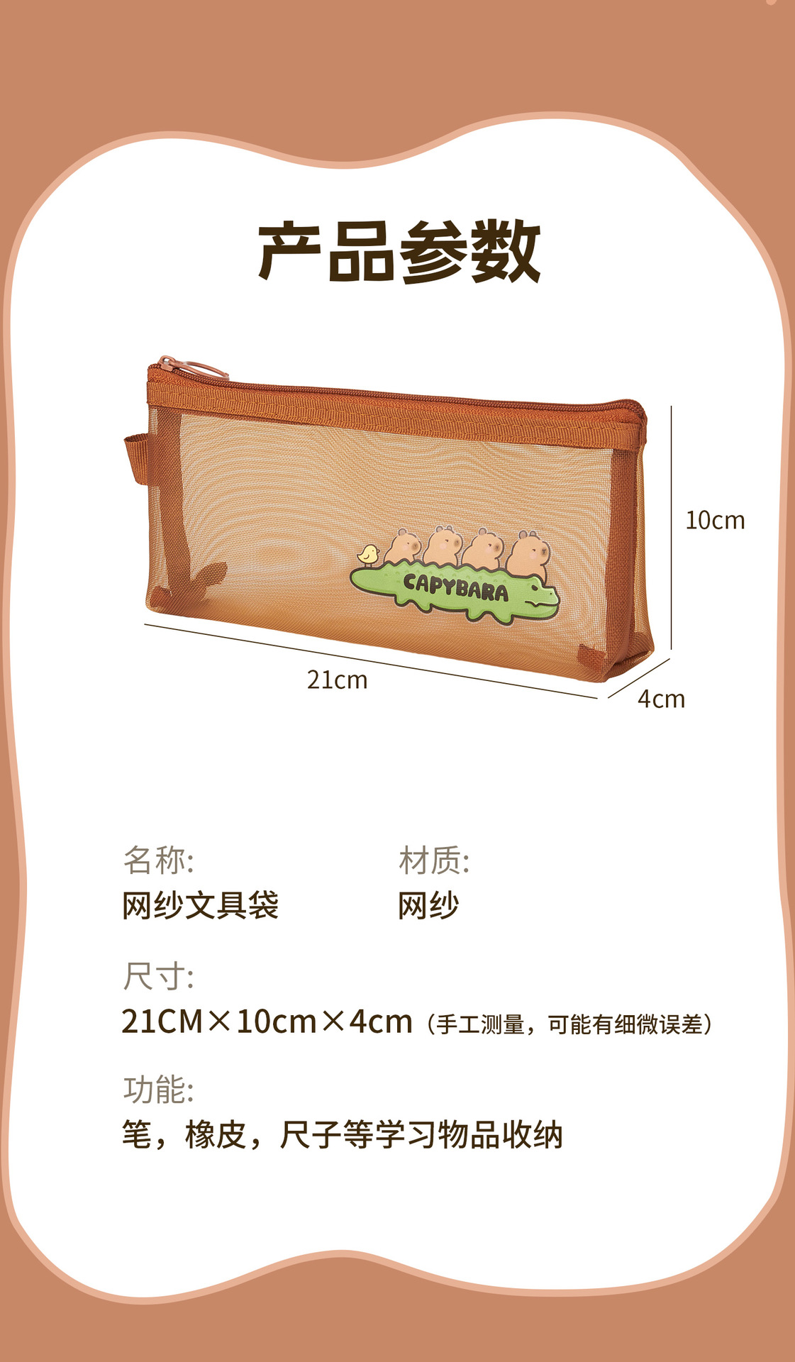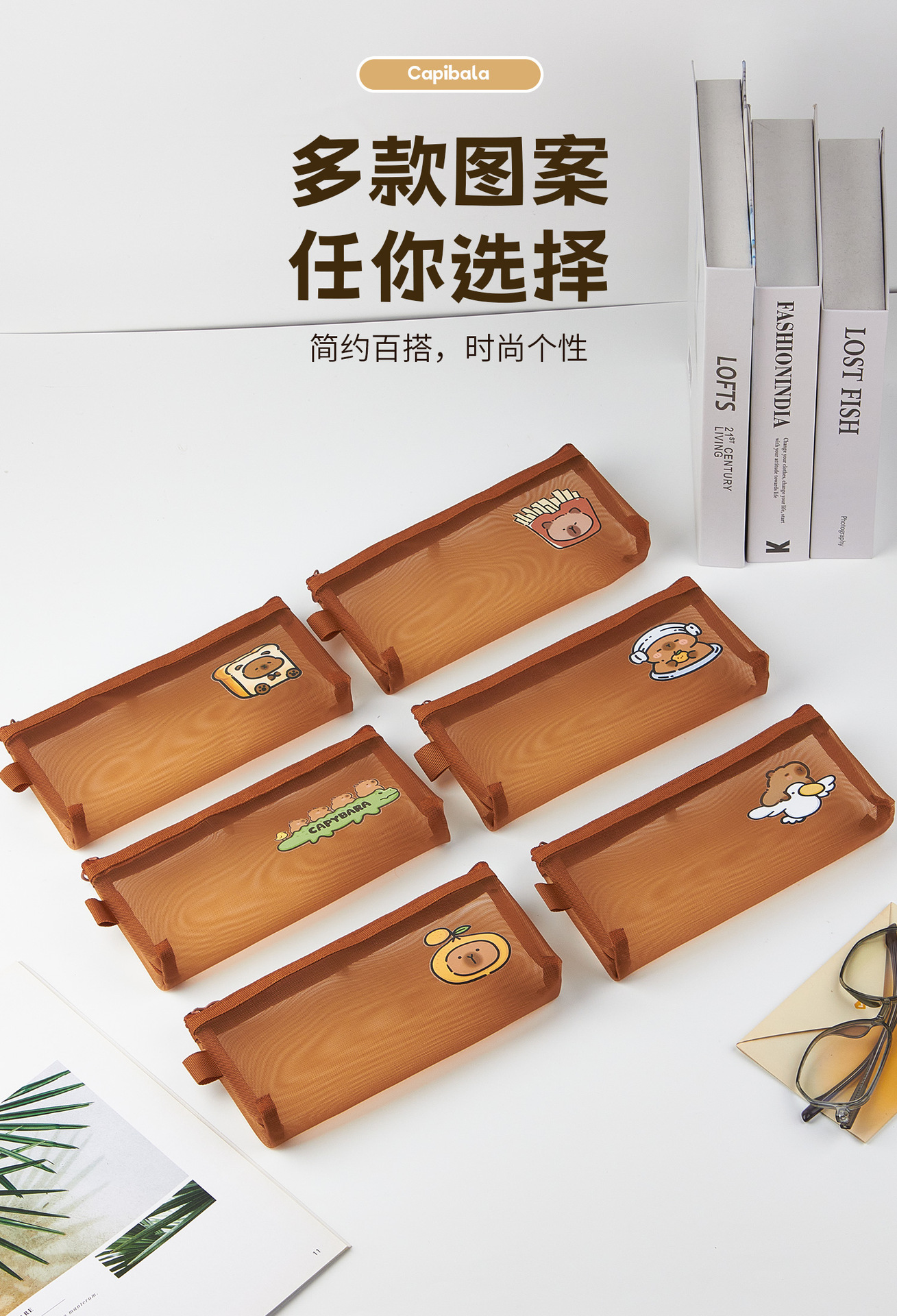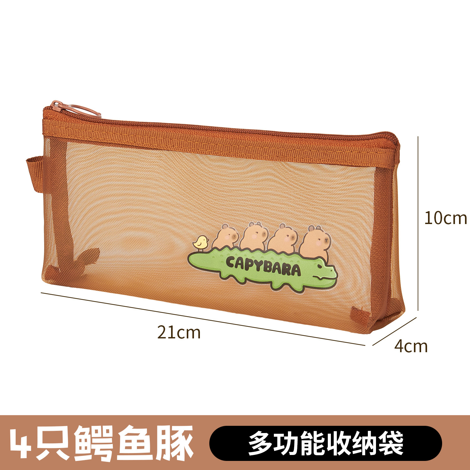 카피 발라 연필 가방 메쉬 문구 가방 귀여운 학생 연필 가방 대용량 저장 가방 투명 문구 상자