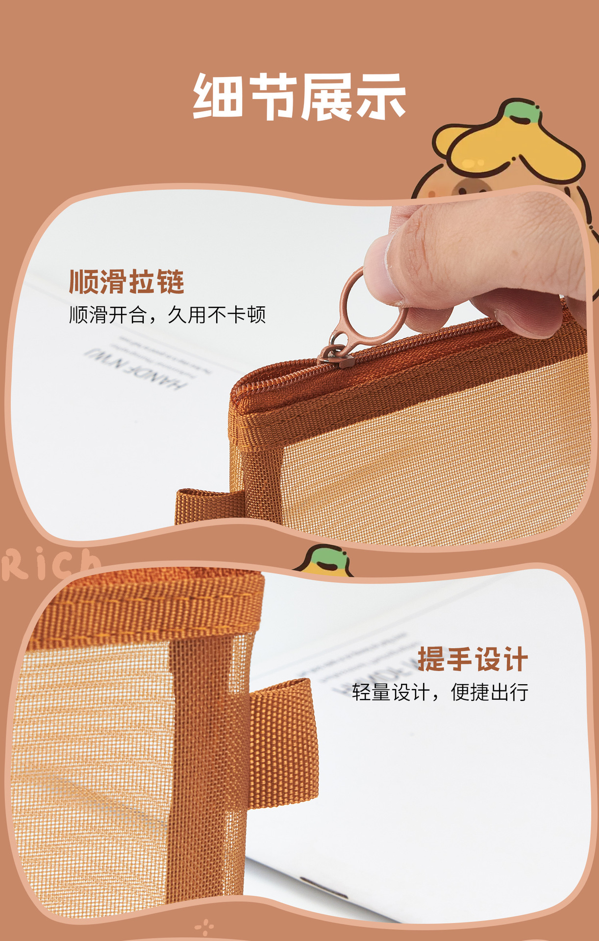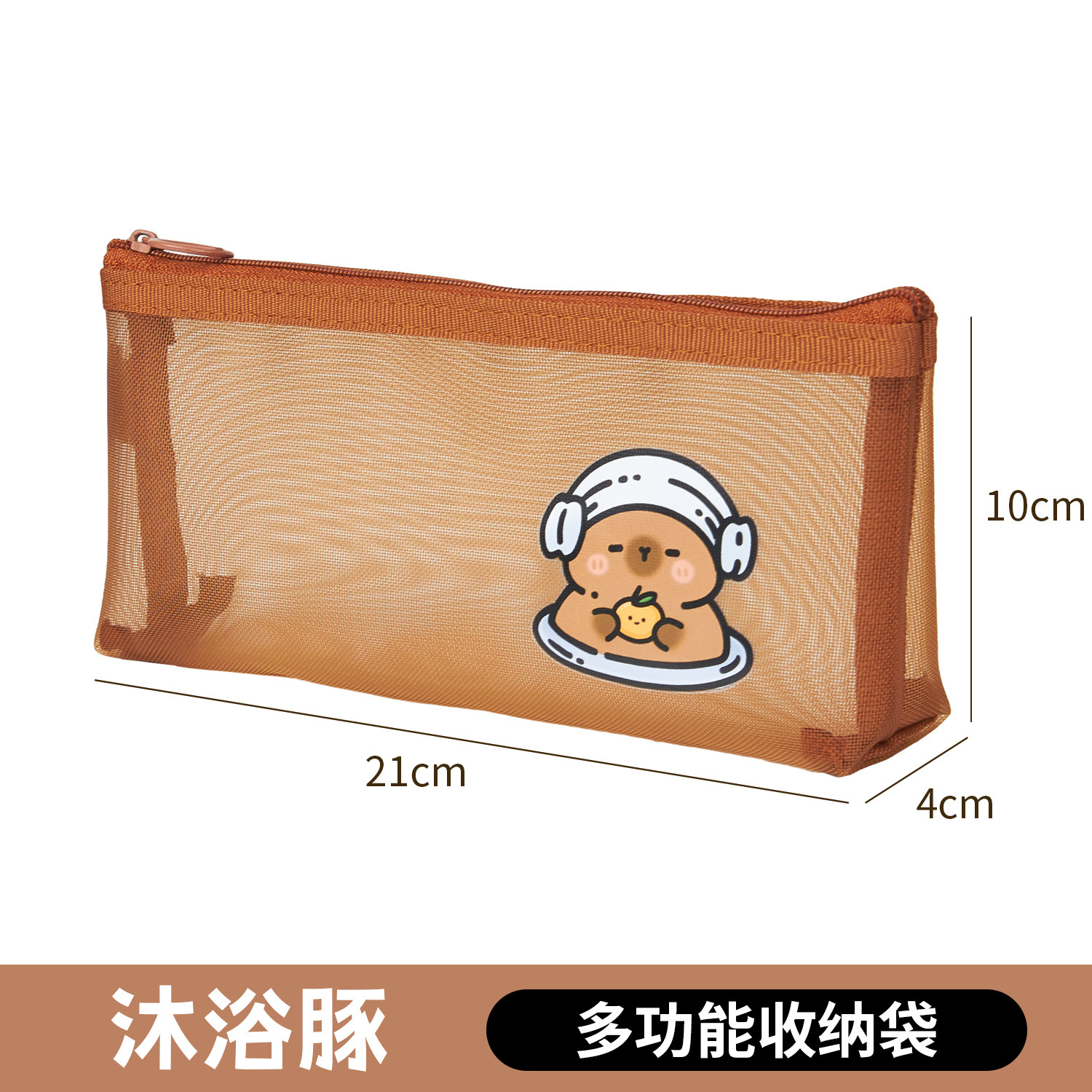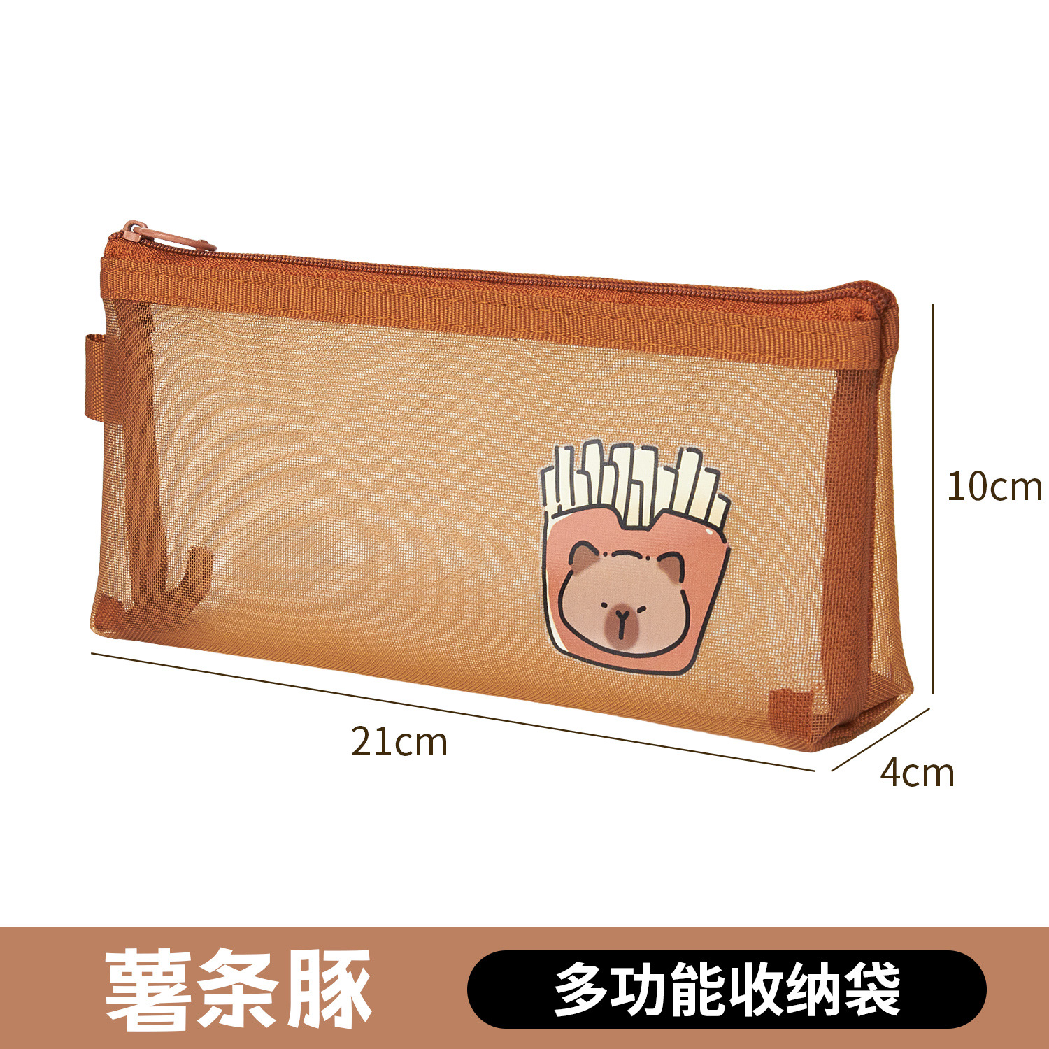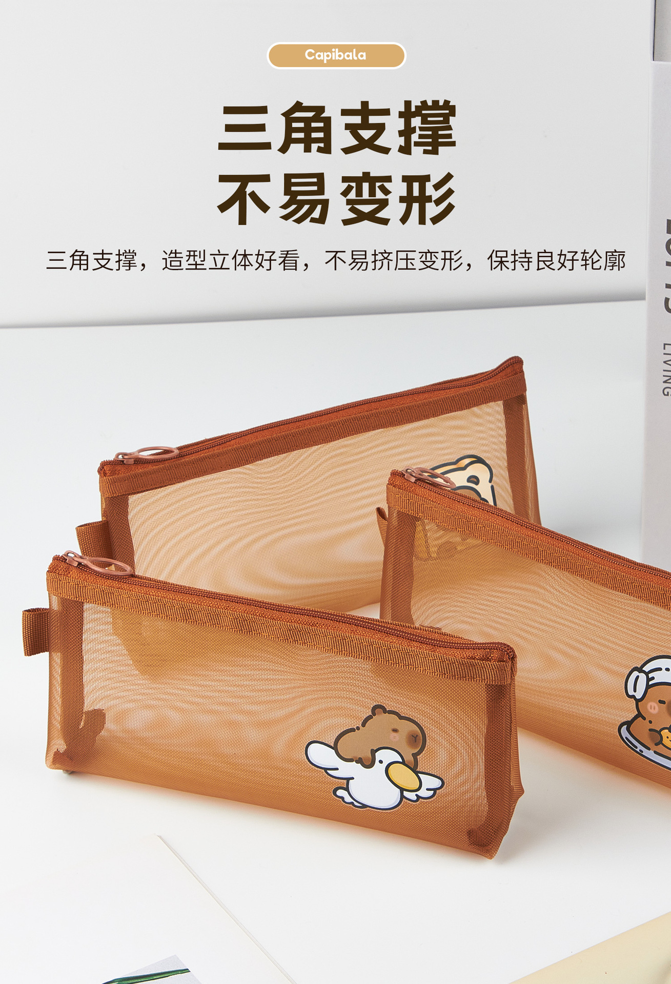 카피 발라 연필 가방 메쉬 문구 가방 귀여운 학생 연필 가방 대용량 저장 가방 투명 문구 상자