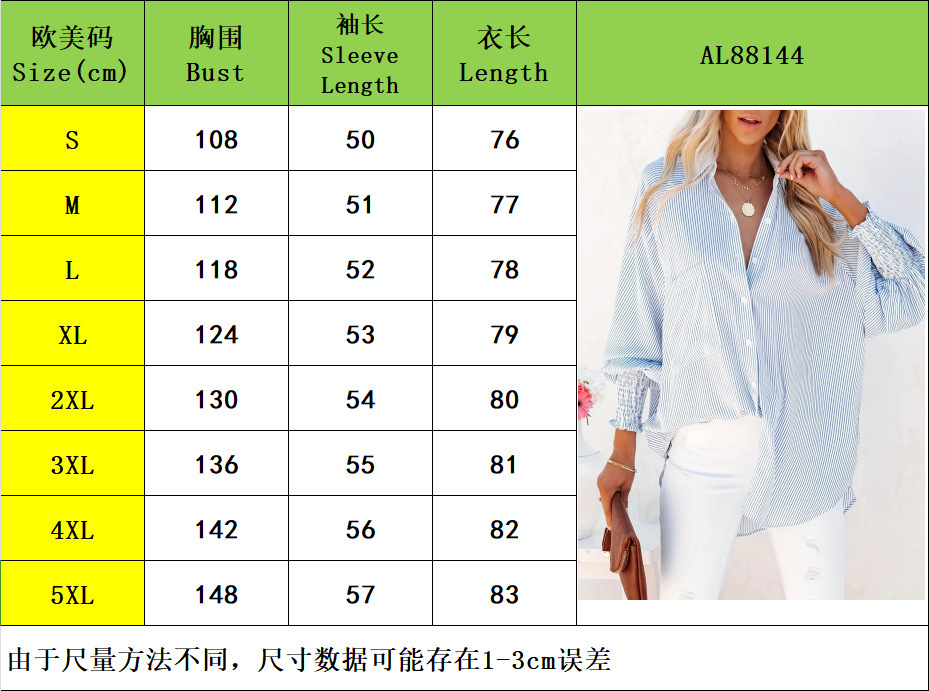 2024 국경 블라우스 비치 휴가 선 스크린 중간 길이 줄무늬 셔츠 여성 셔츠 긴 소매