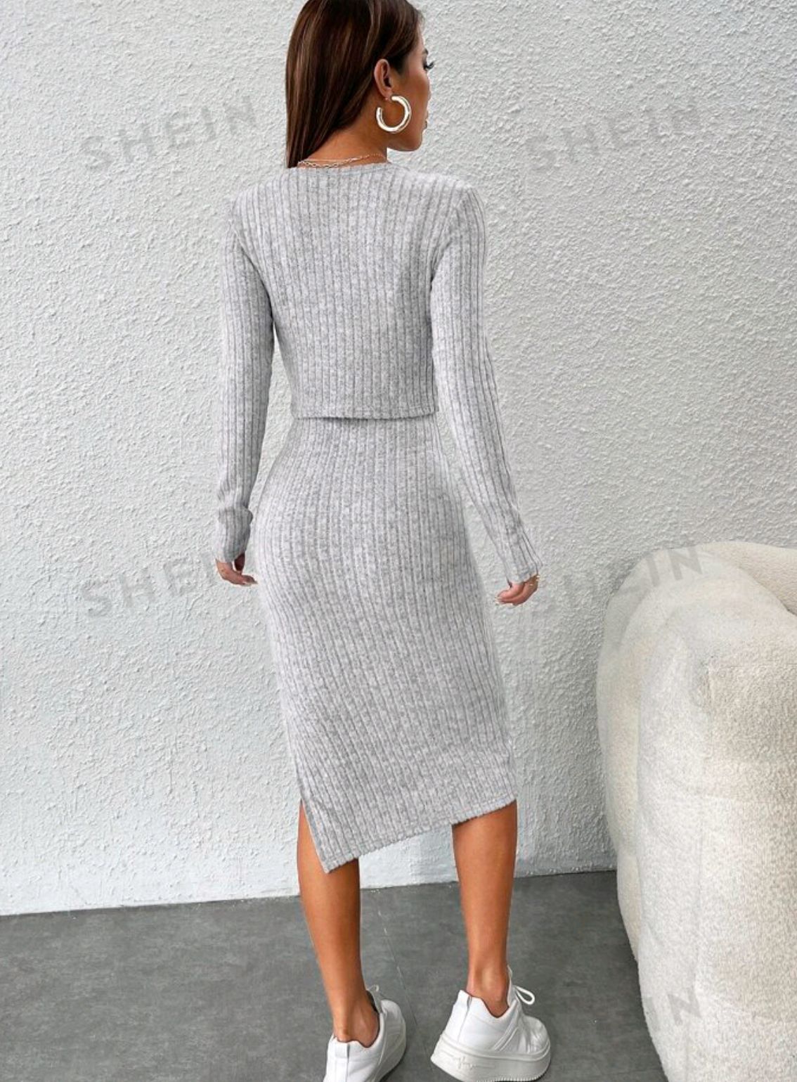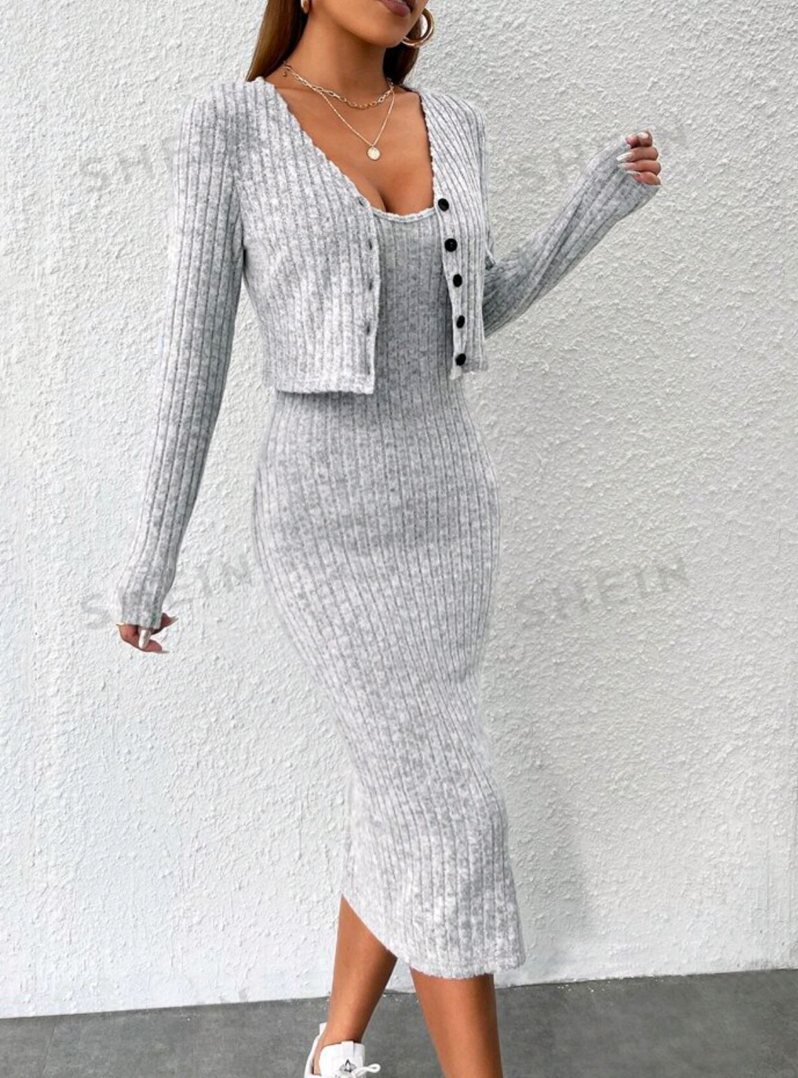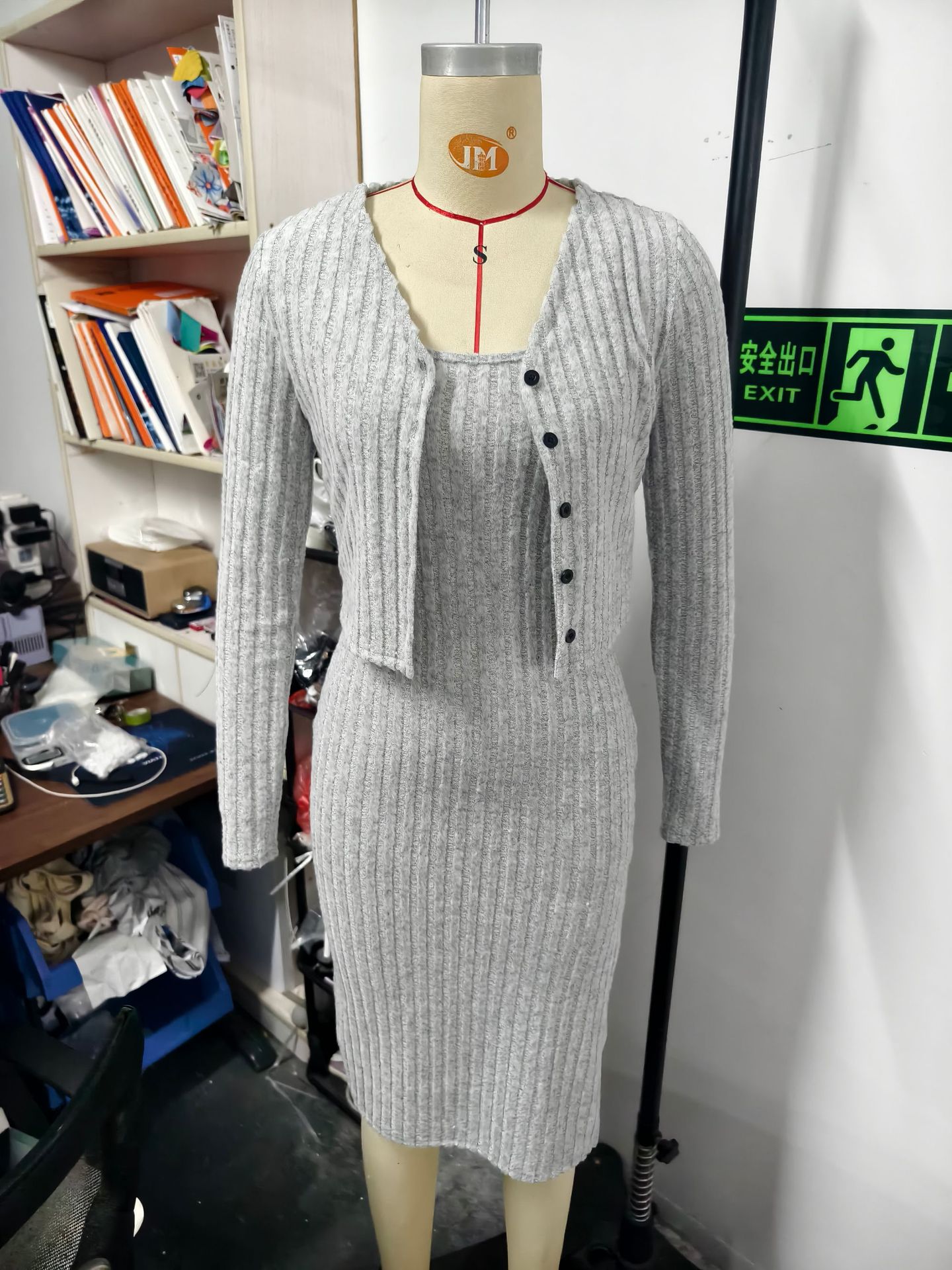 2024 년 가을/겨울 유럽과 미국 아마존 국경 간 여성 슬림 슬링 원피스 핏 스트립 카디건 자켓 여성용 투피스 세트스토어 가기
