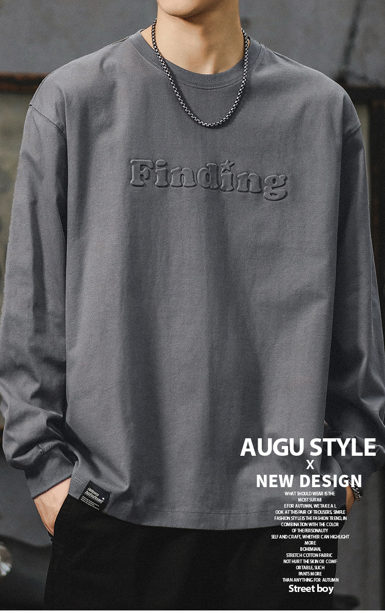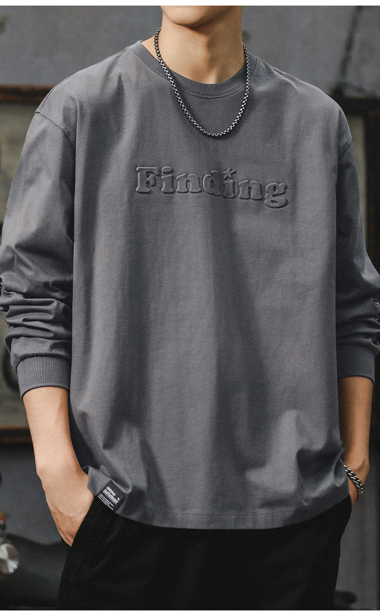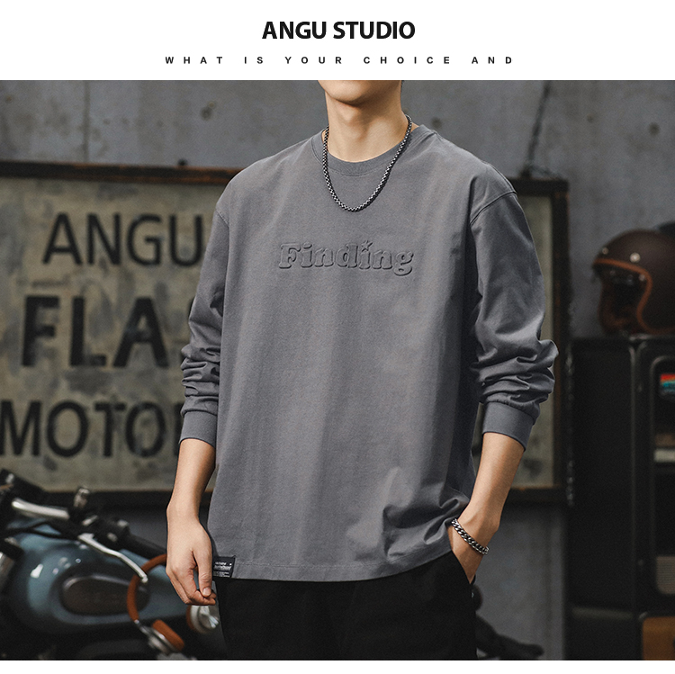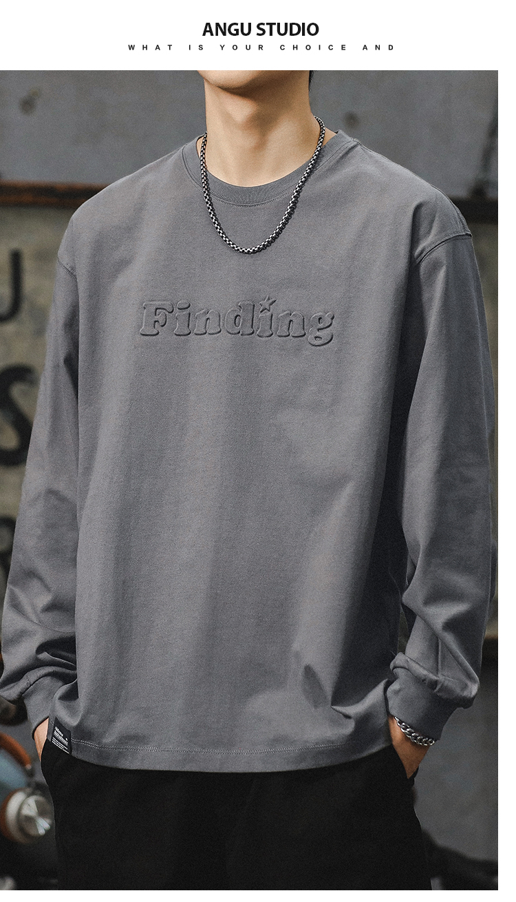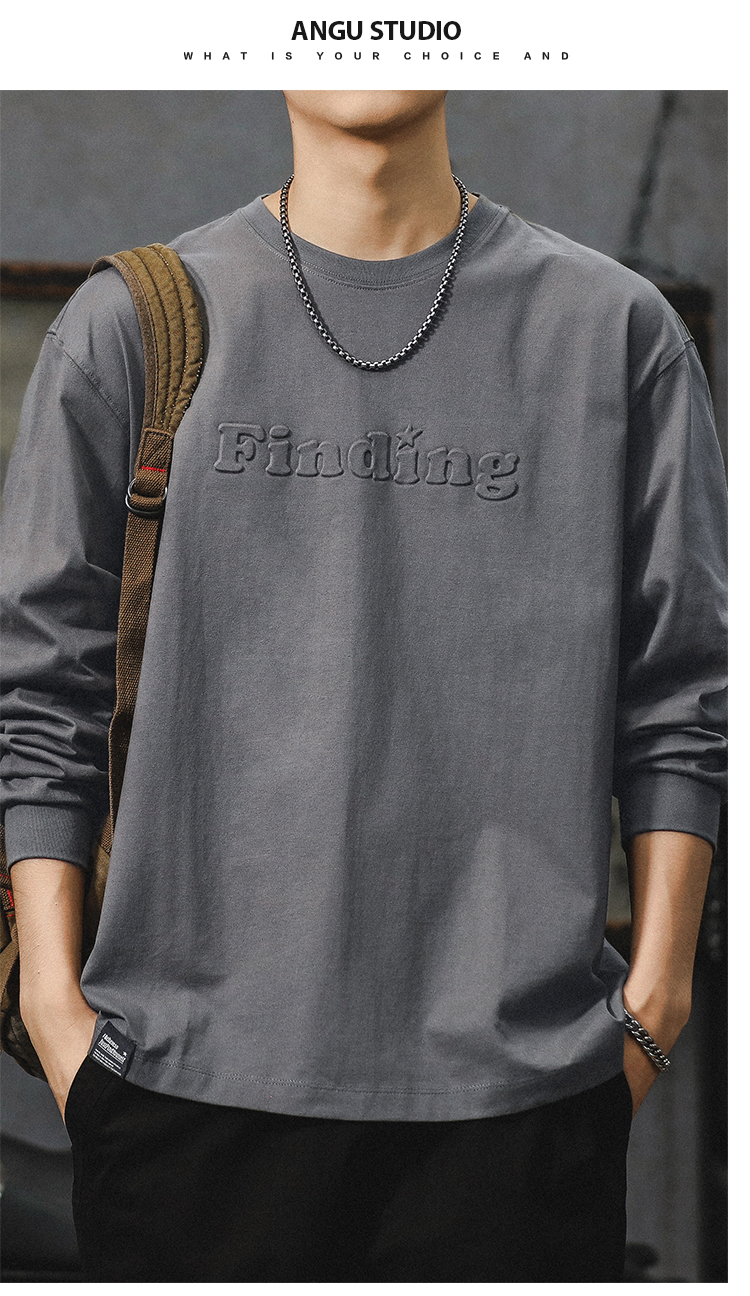 260g 무거운 신장 면 긴 소매 티셔츠 남자 2024 새로운 십대 미국 편지 패션 브랜드 라인베이스 셔츠