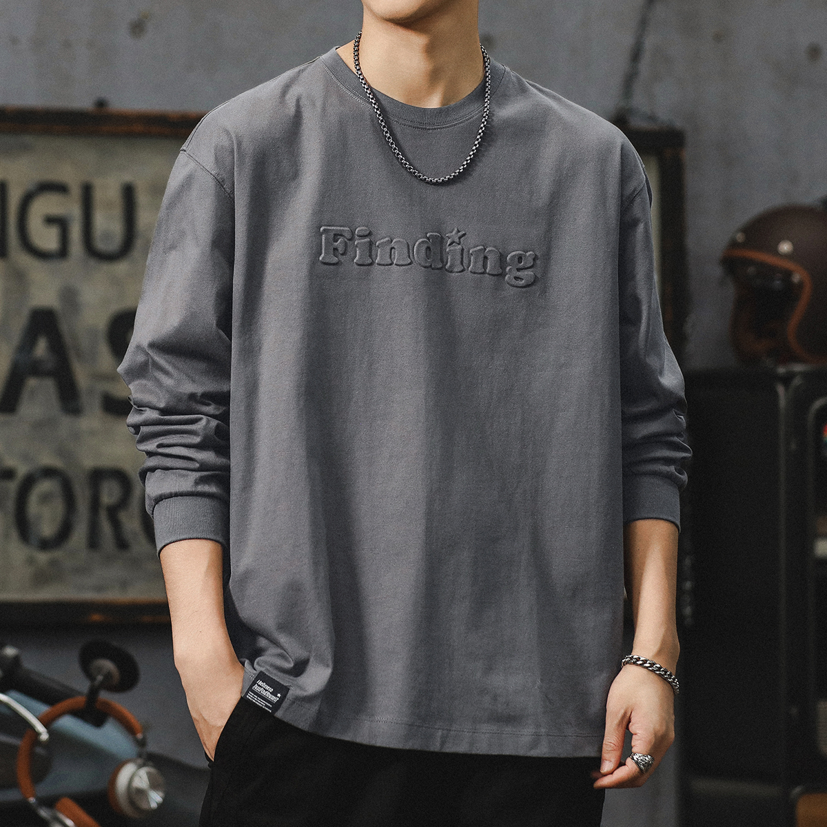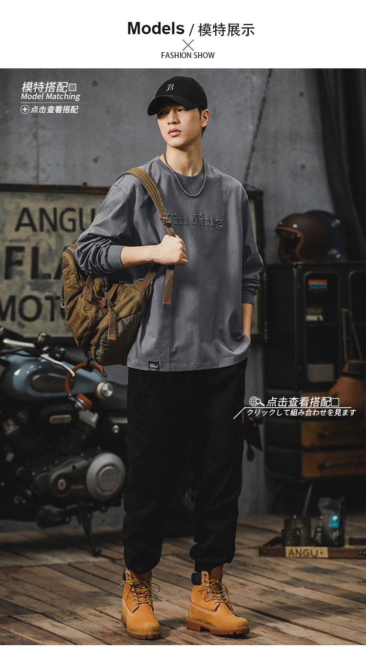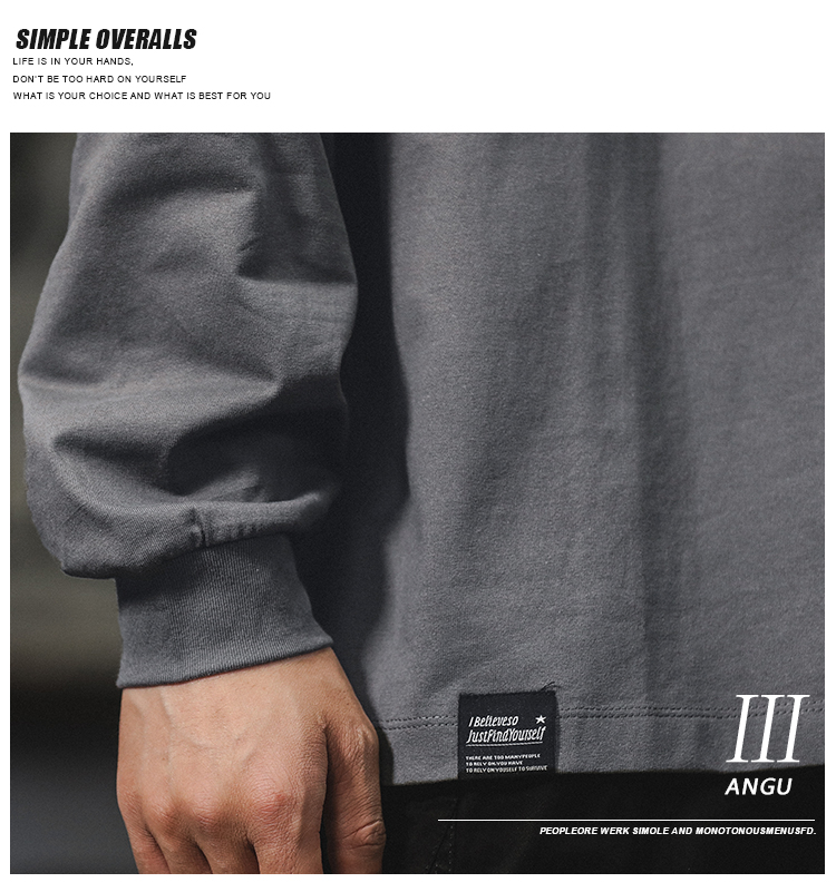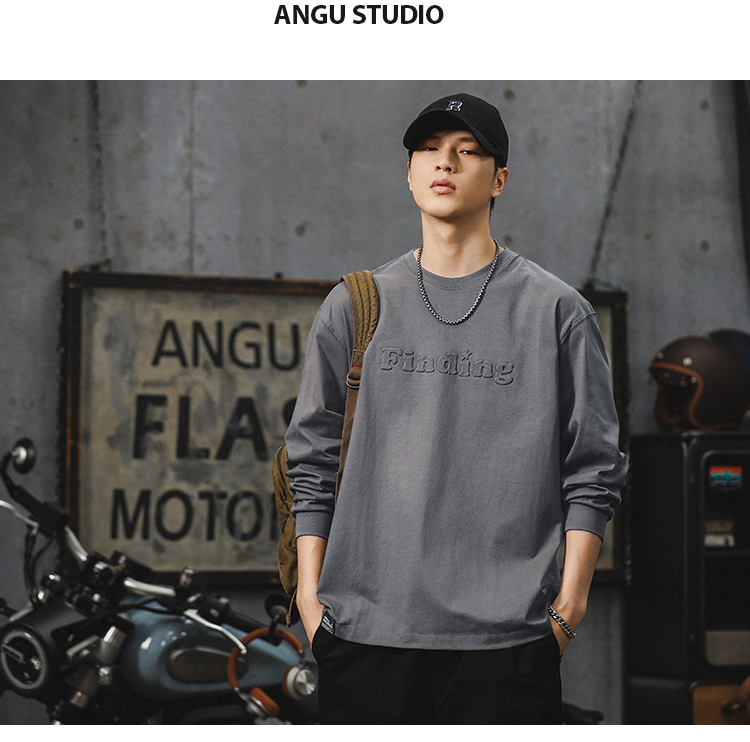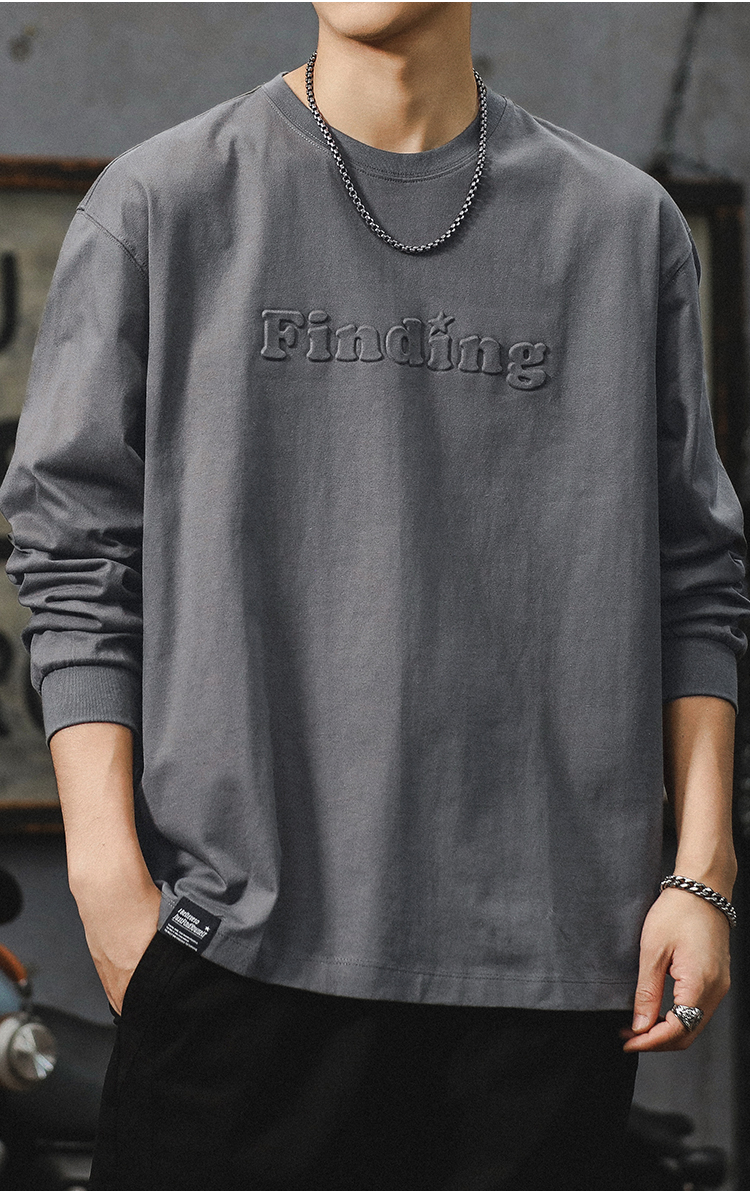260g 무거운 신장 면 긴 소매 티셔츠 남자 2024 새로운 십대 미국 편지 패션 브랜드 라인베이스 셔츠