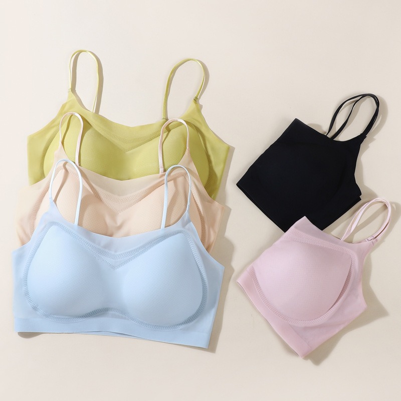 새로운 라이크라 무봉제 여성용 슬링 브라, 얇은 노와이어 브라, 작은 가슴을 위한 푸쉬업, 통기성 좋고 편안한 아름다운 등 디자인의 베스트