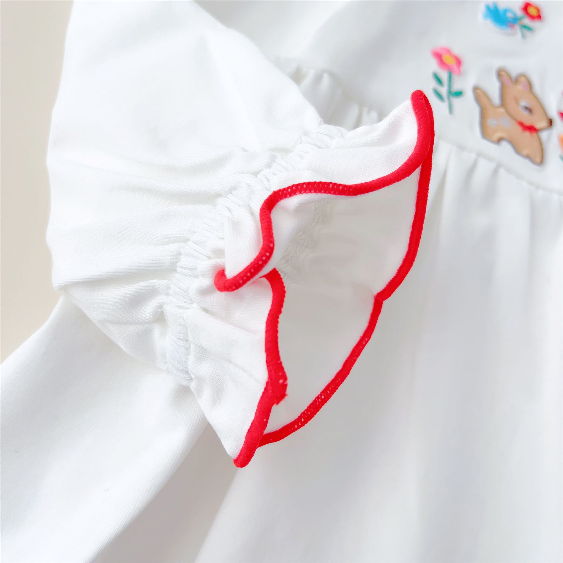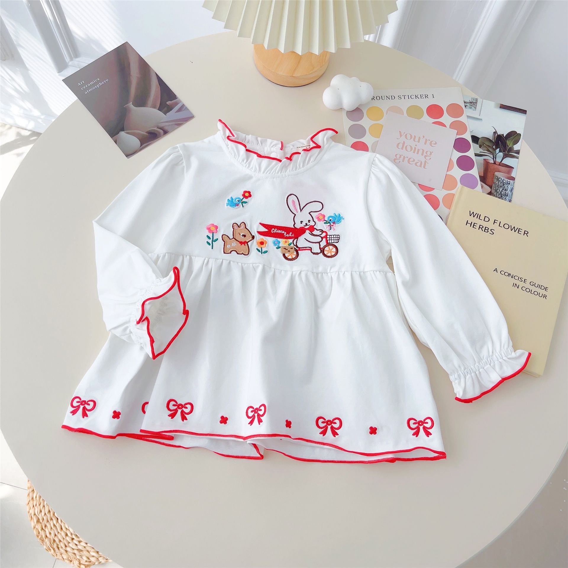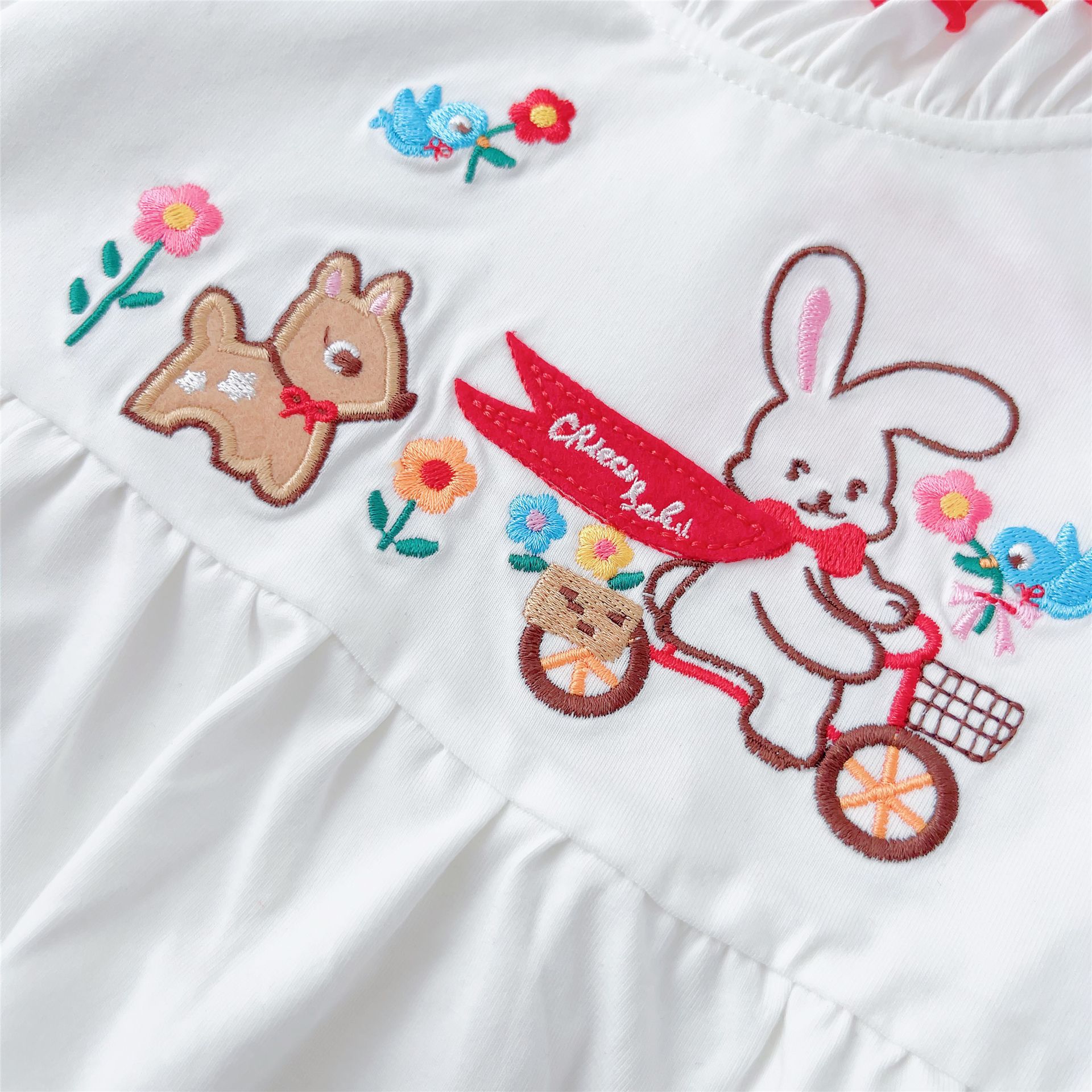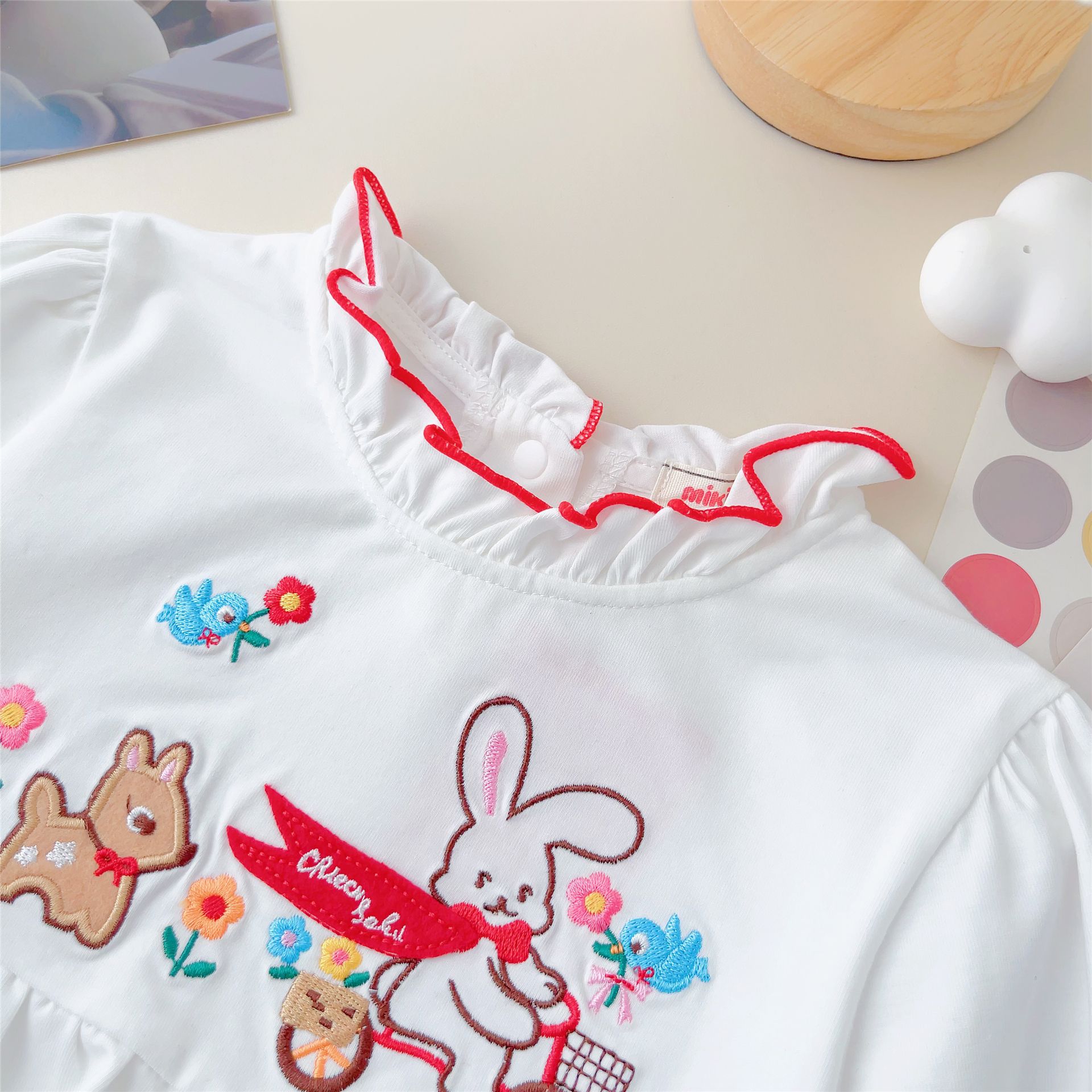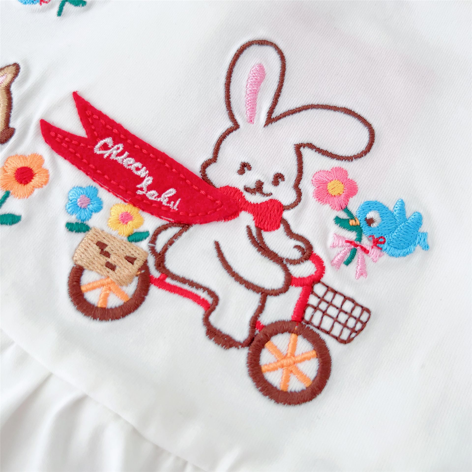일본 소녀 24 가을 새로운 Qi 페인트 토끼 중공업 패치 수 놓은 레이스 사이클링 토끼 스커트 티셔츠 6008