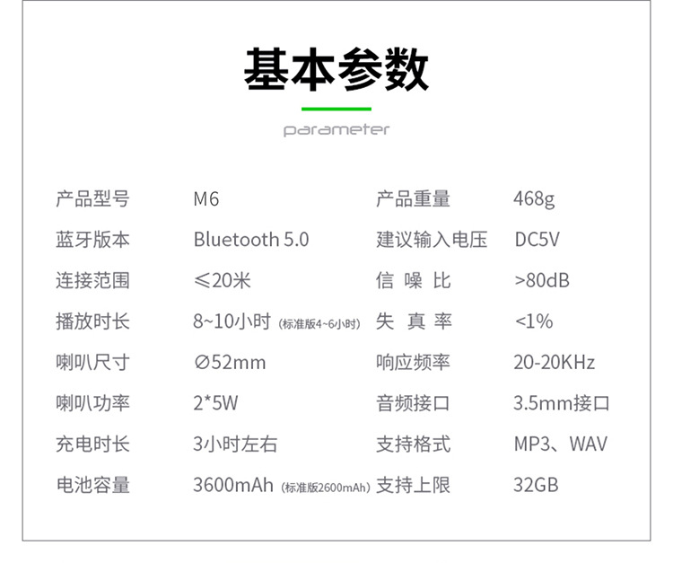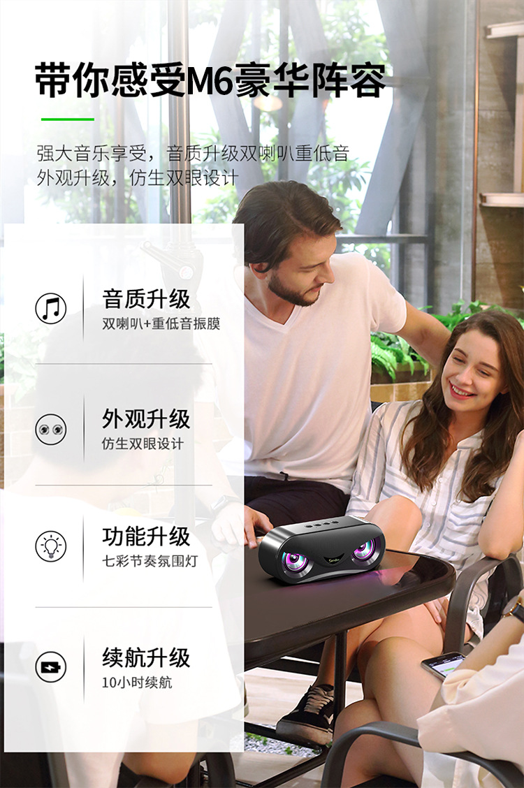국경 새 홈 데스크탑 M6 라이트 블루투스 스피커 무거운 서브 우퍼 휴대용 야외 무선 블루투스 오디오