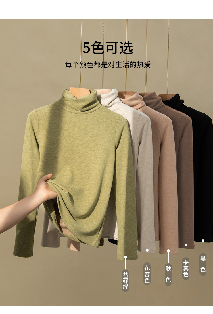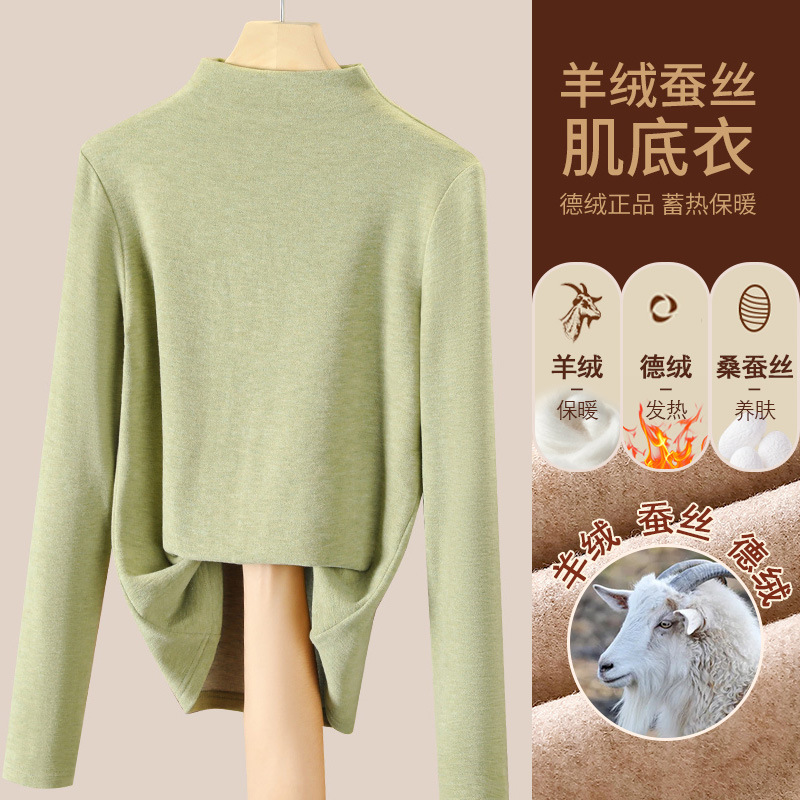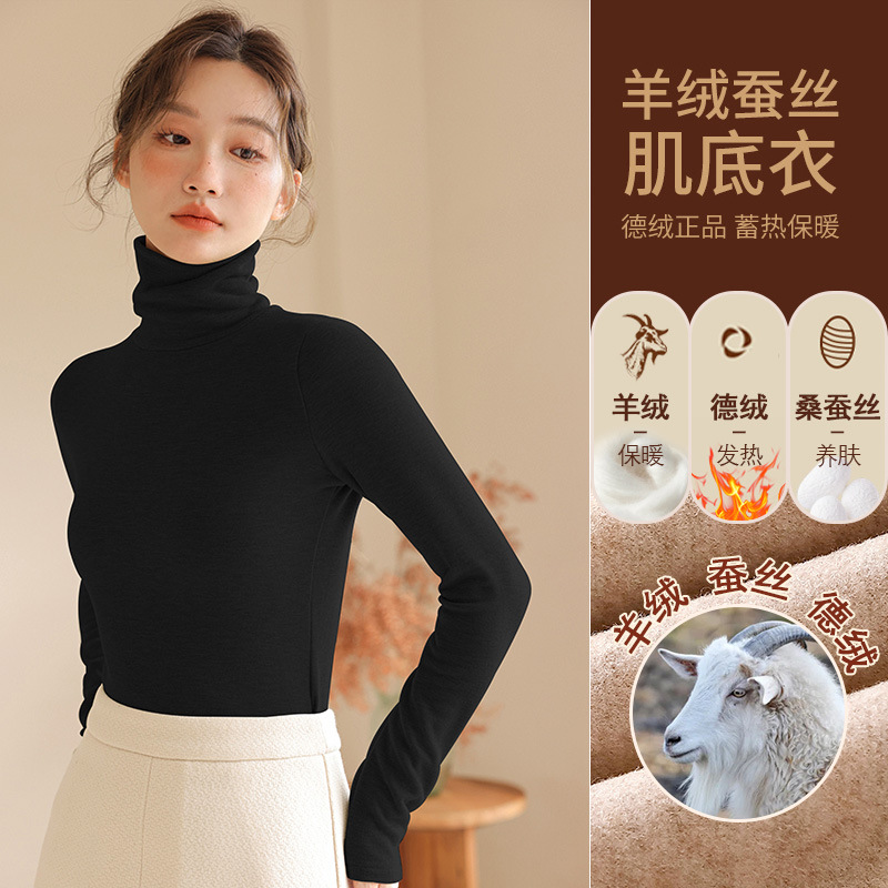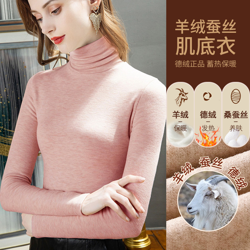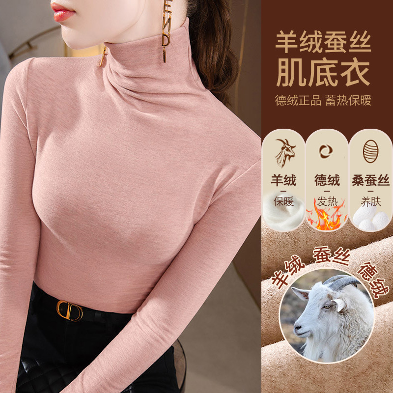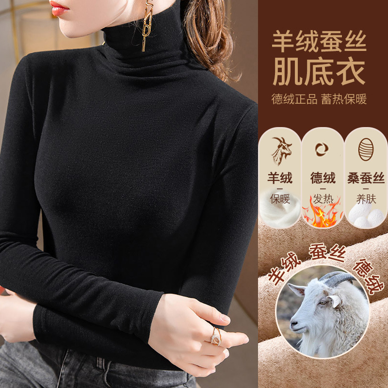 280g 캐시미어 실크 양털베이스 셔츠 여자 가을 겨울 새로운 높은 목 따뜻한 내부 기모 올 매치 톱 여자스토어 가기
