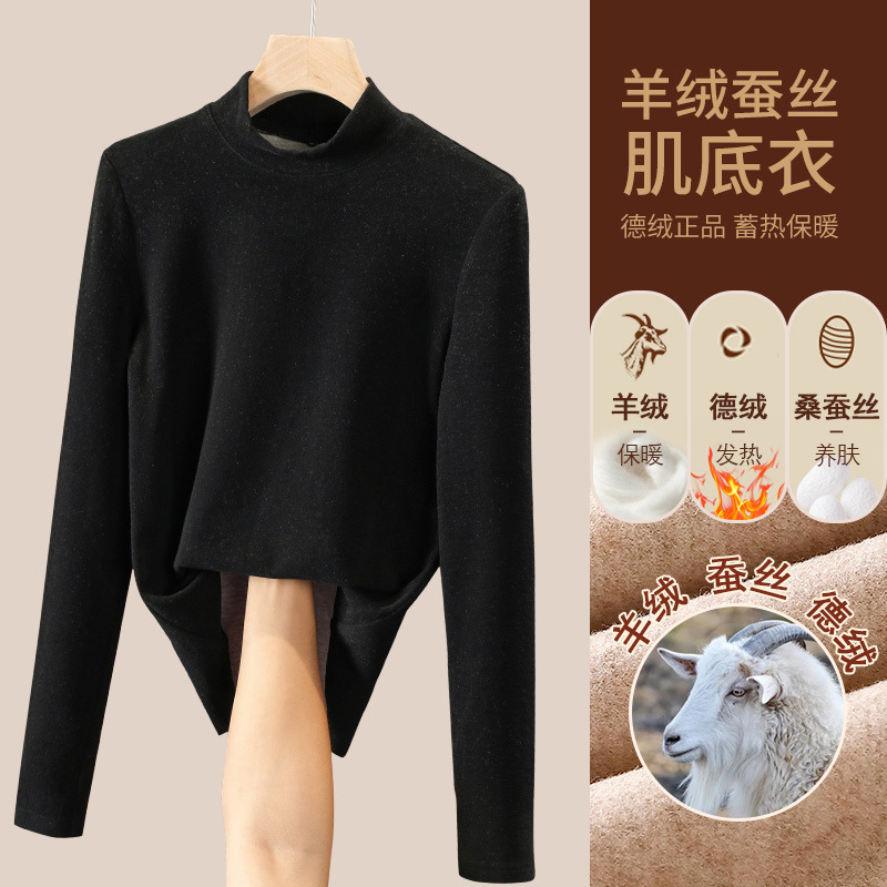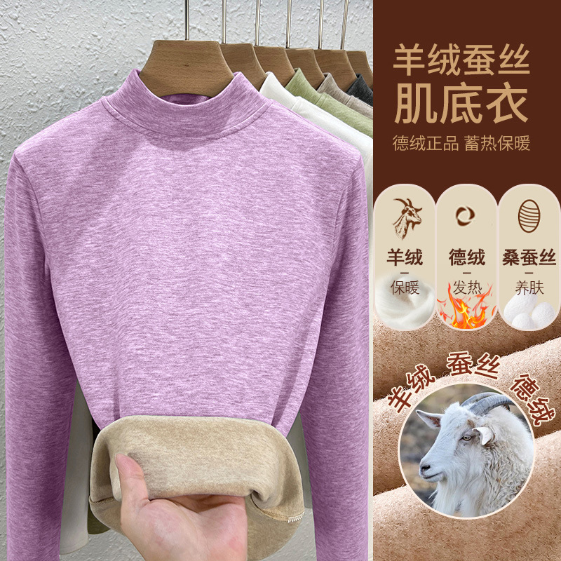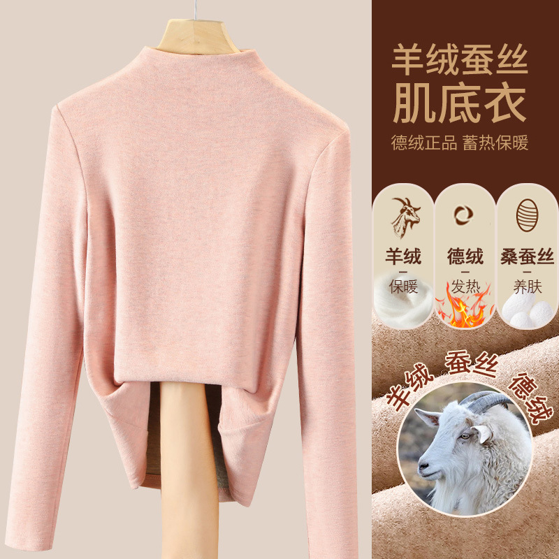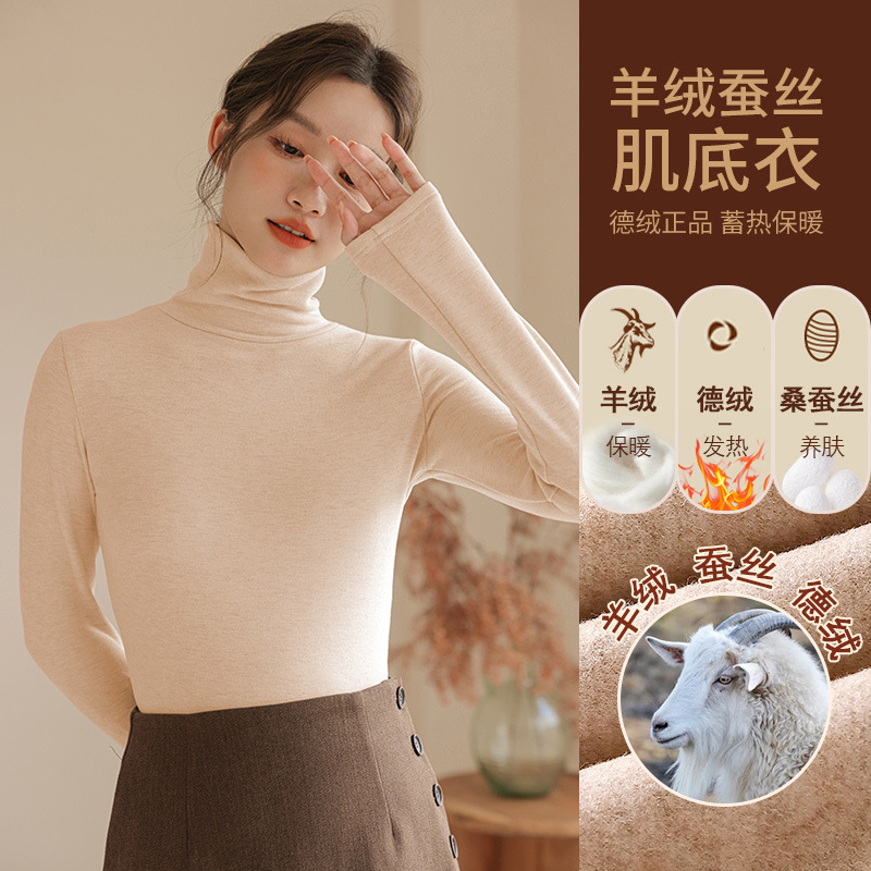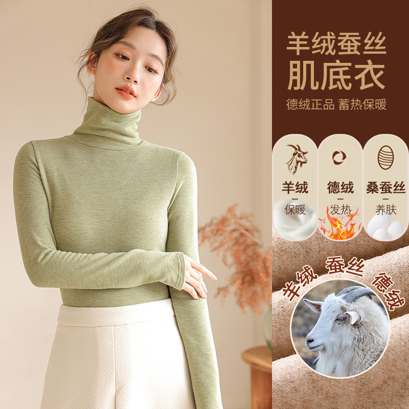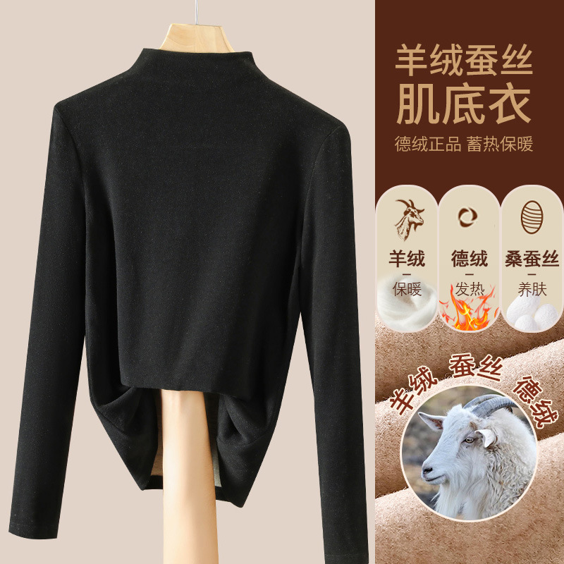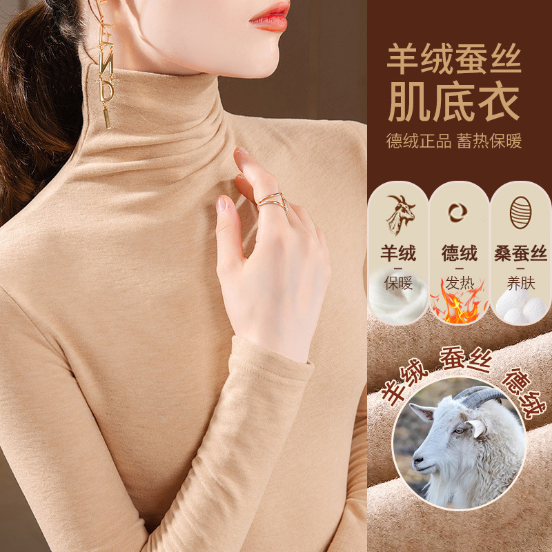 280g 캐시미어 실크 양털베이스 셔츠 여자 가을 겨울 새로운 높은 목 따뜻한 내부 기모 올 매치 톱 여자스토어 가기