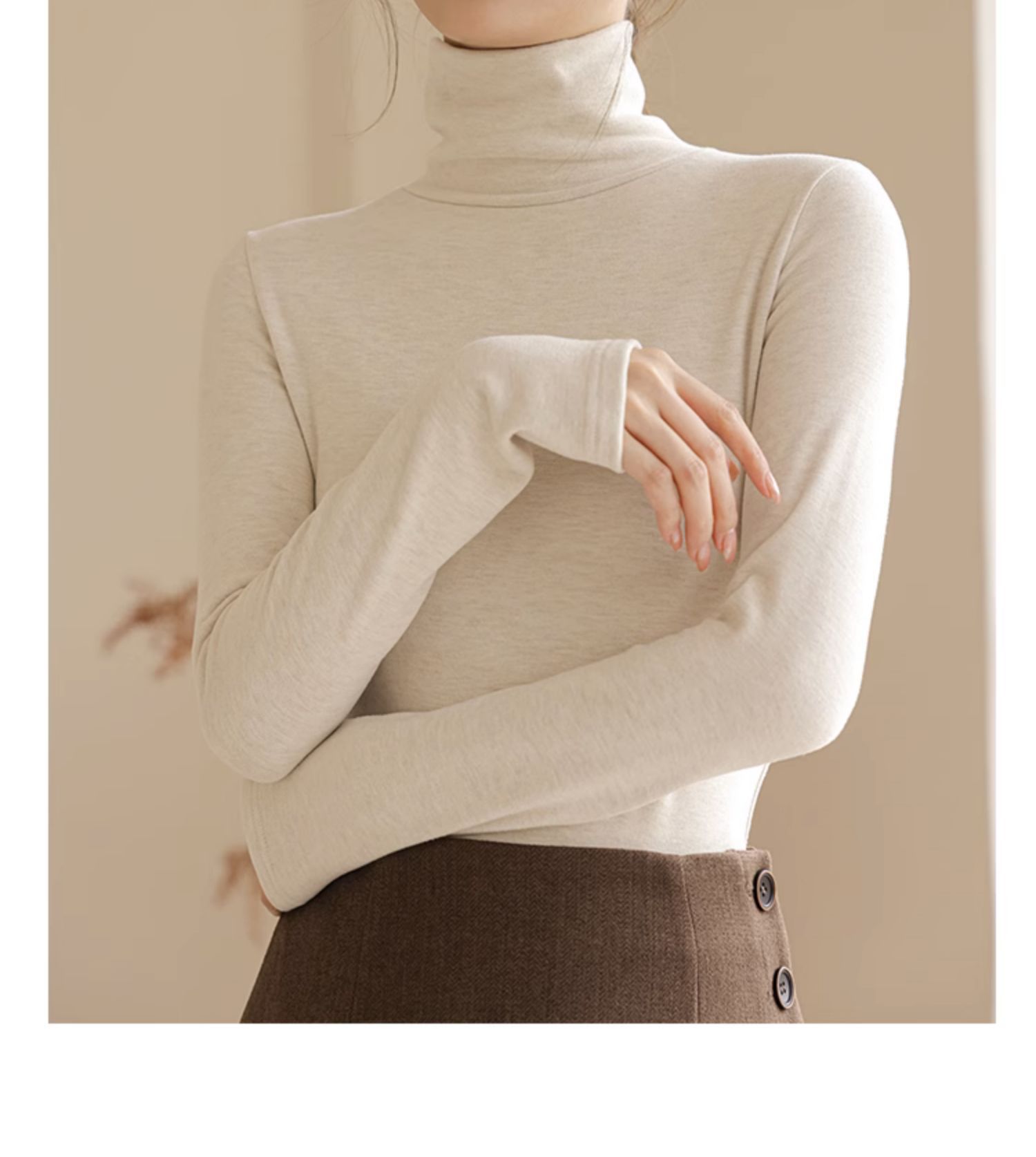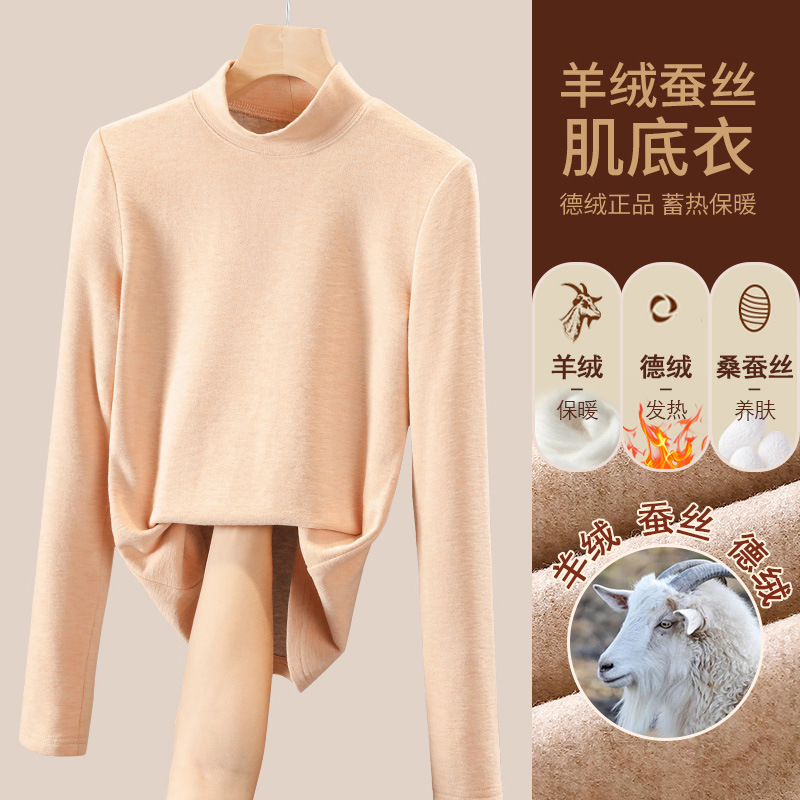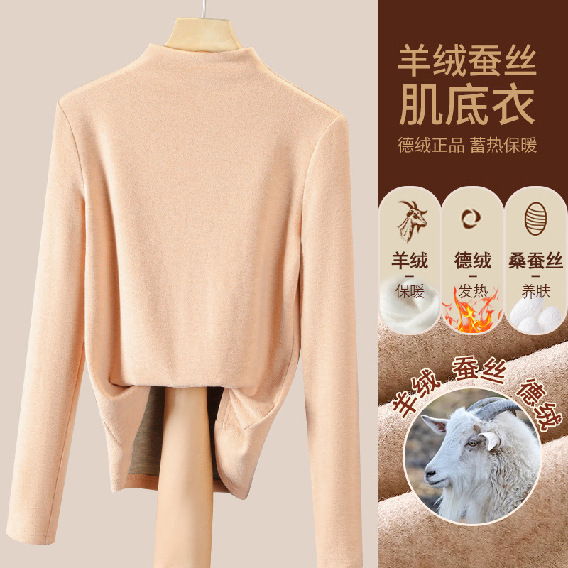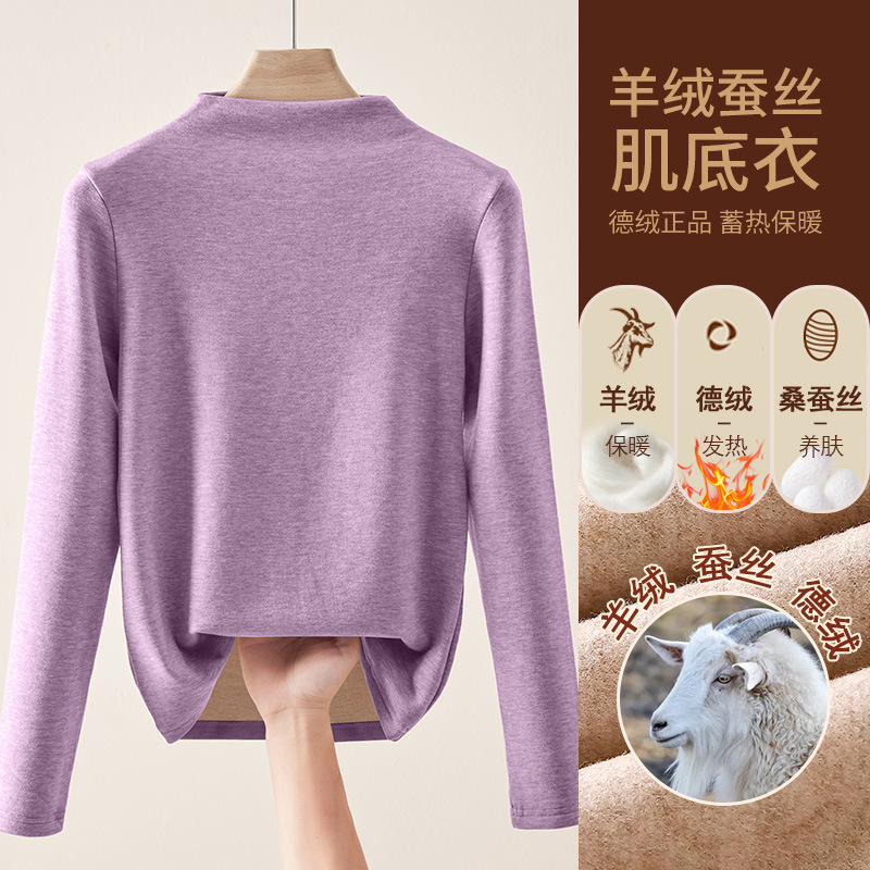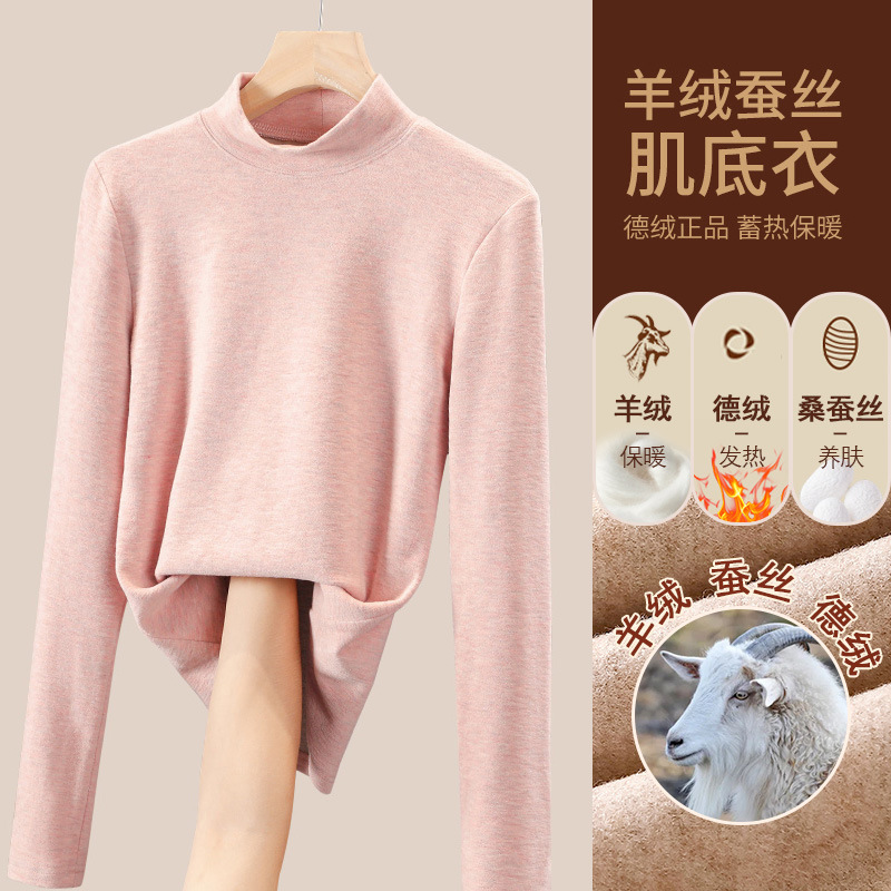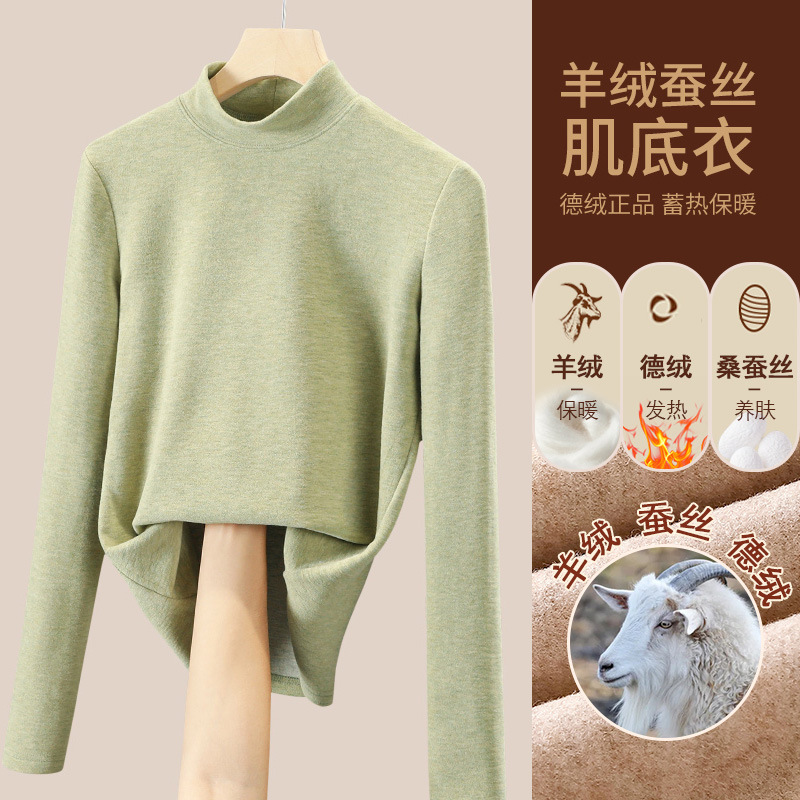 280g 캐시미어 실크 양털베이스 셔츠 여자 가을 겨울 새로운 높은 목 따뜻한 내부 기모 올 매치 톱 여자스토어 가기