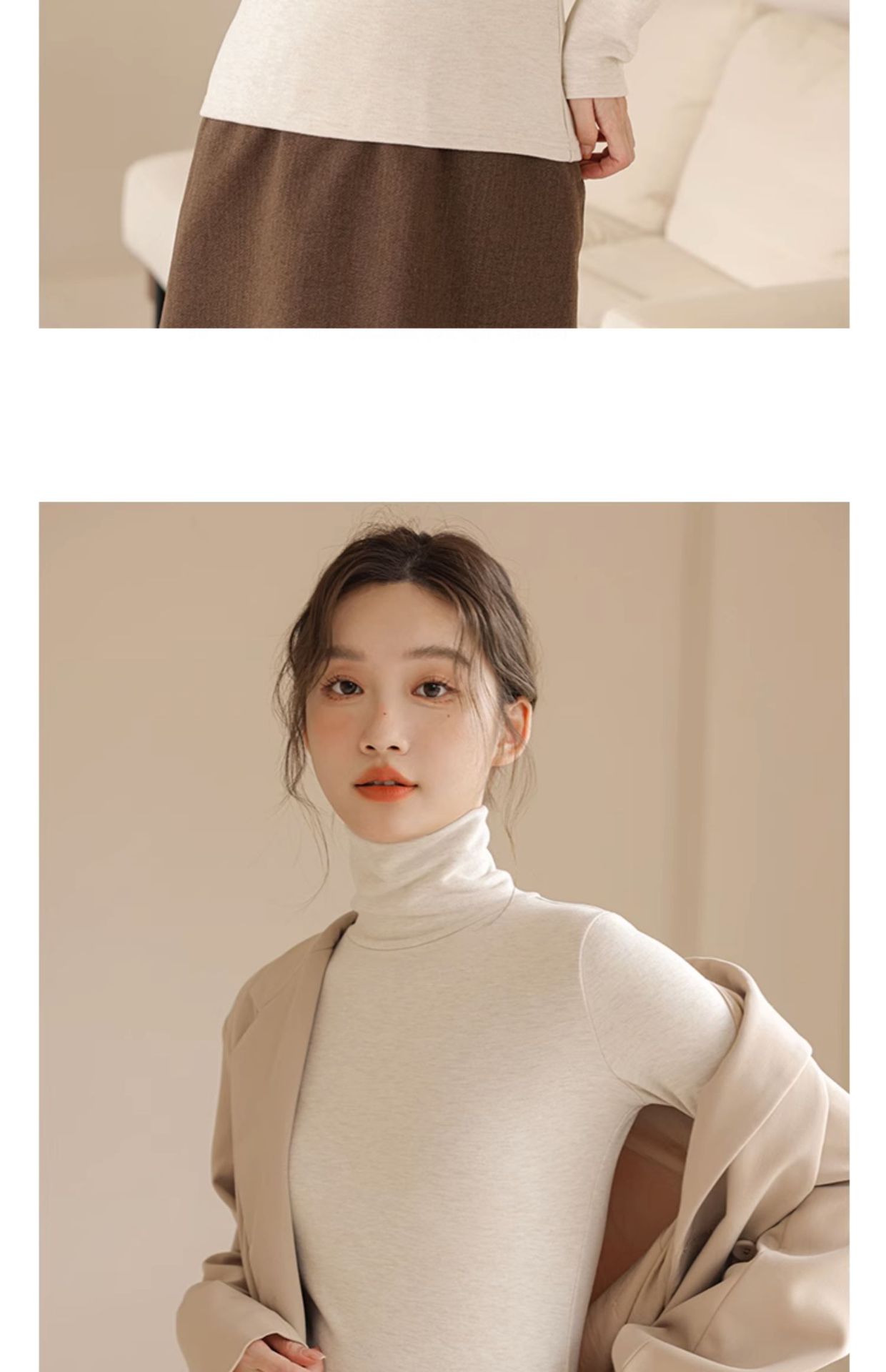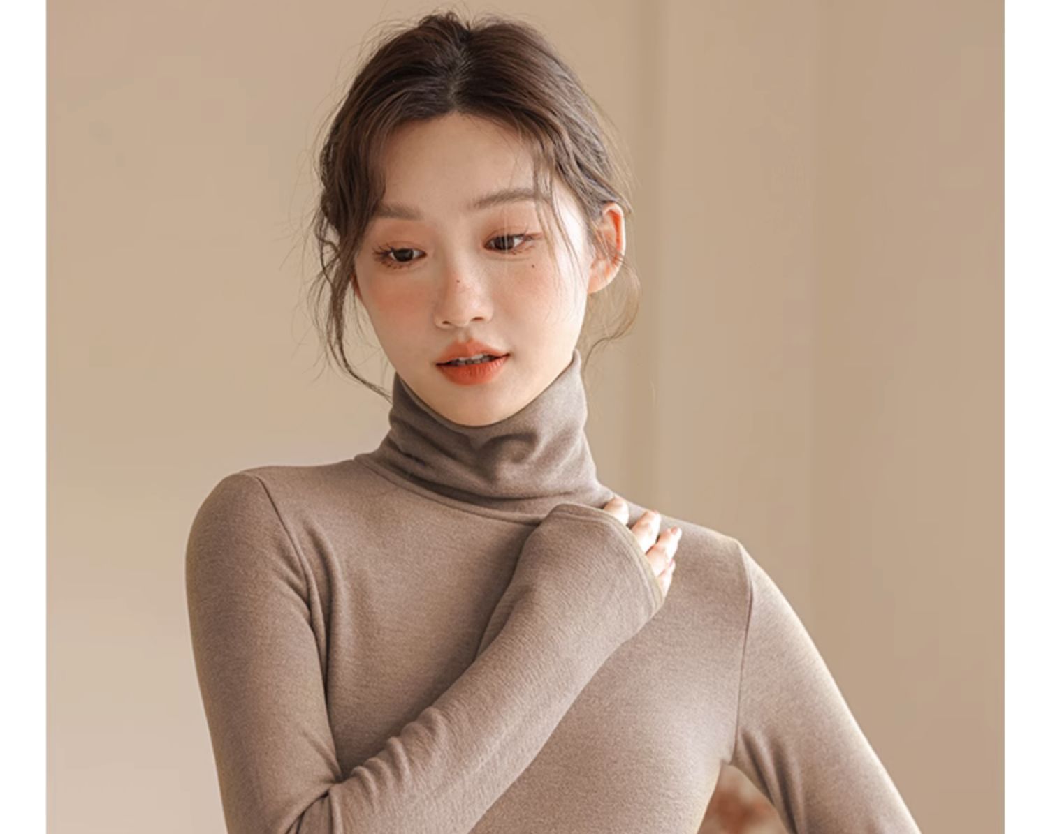 • 원피스 터틀넥 살구색