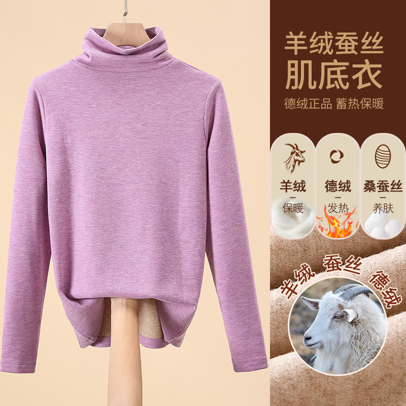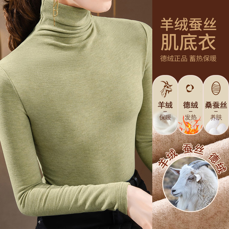 280g 캐시미어 실크 양털베이스 셔츠 여자 가을 겨울 새로운 높은 목 따뜻한 내부 기모 올 매치 톱 여자