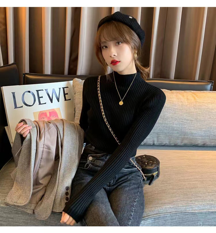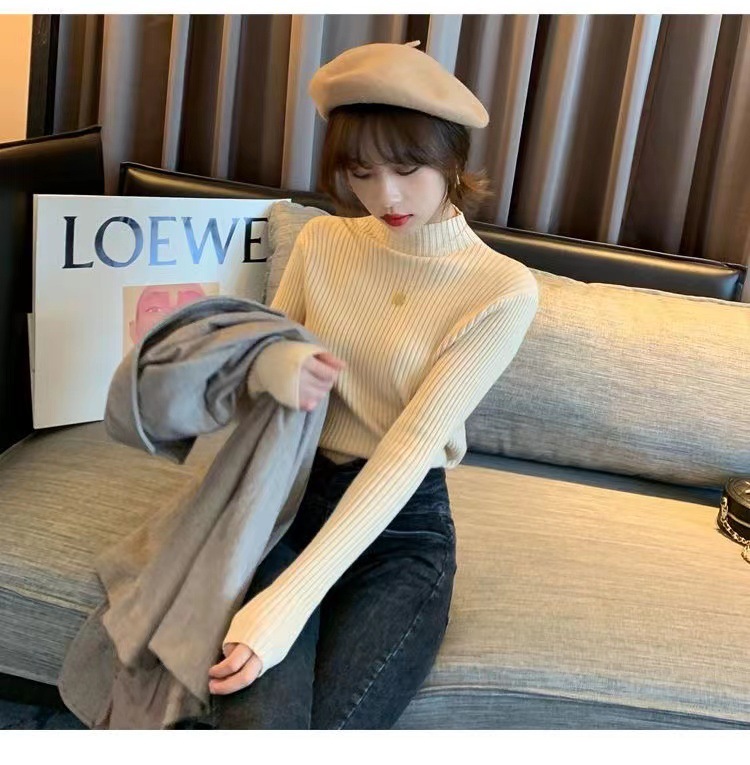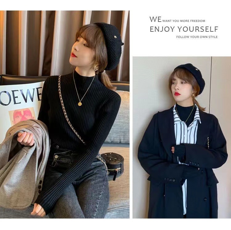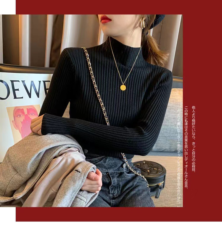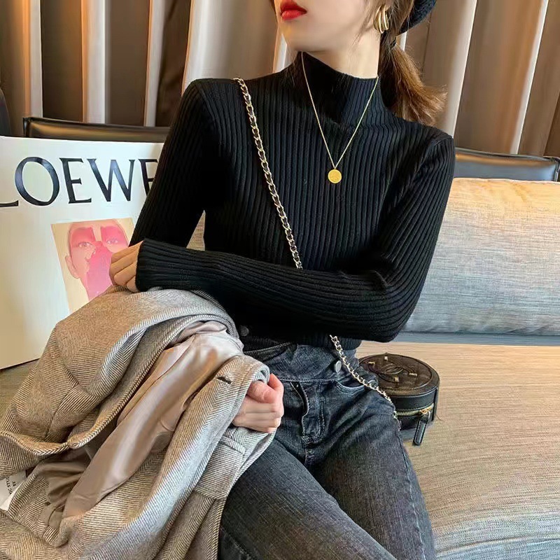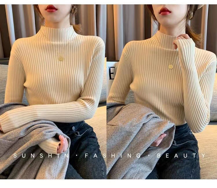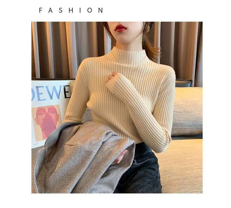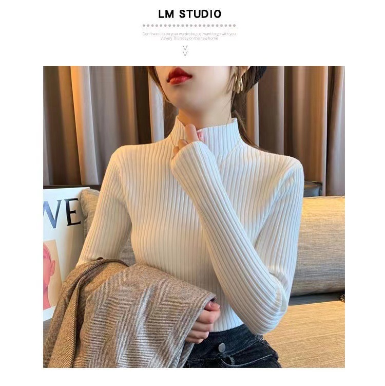 여성용 화이트 베이스 셔츠 가을 겨울 2025 신상 고급스러운 스타일 하프 터틀넥 스웨터 이너 니트 긴팔 상의스토어 가기