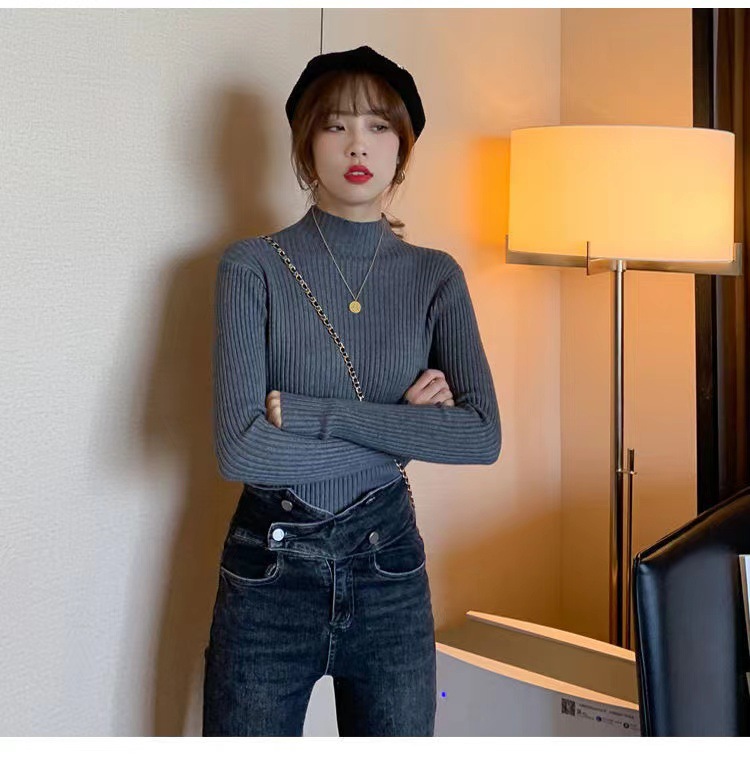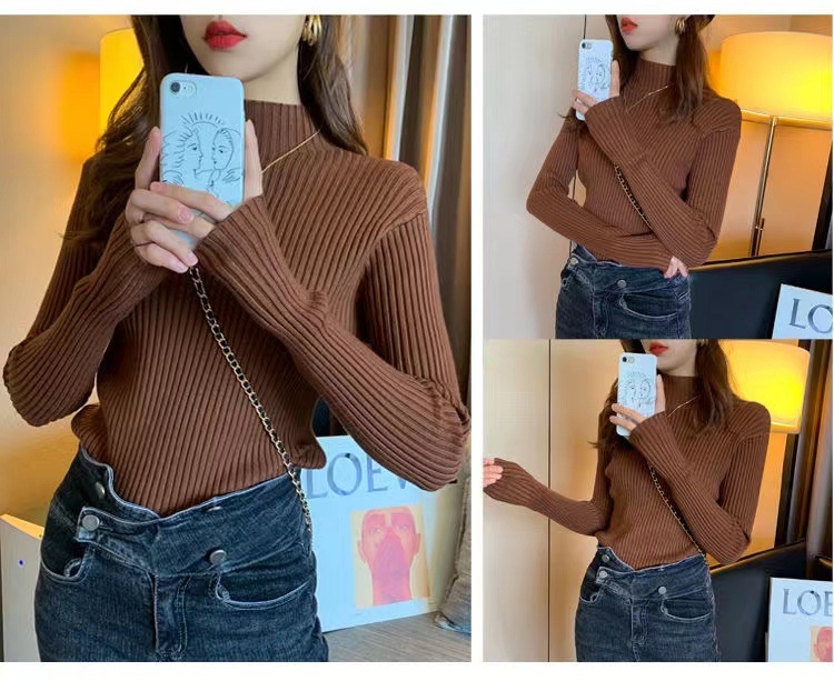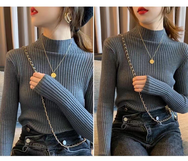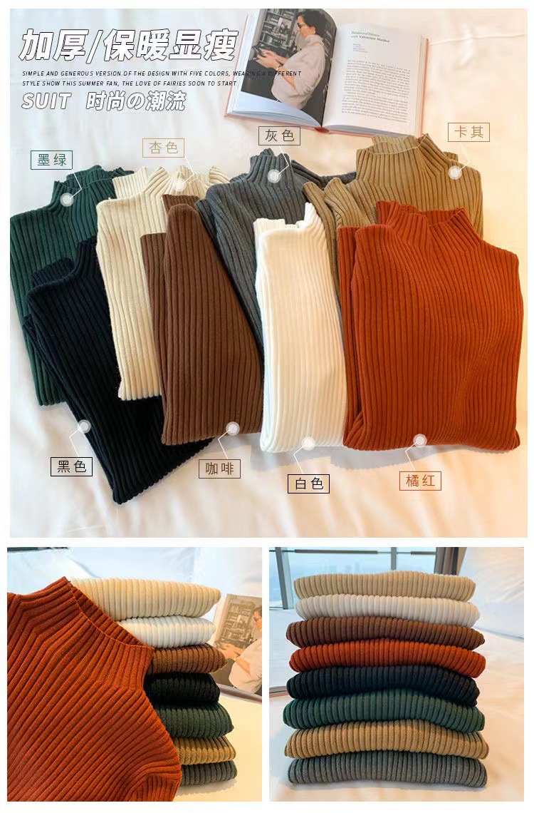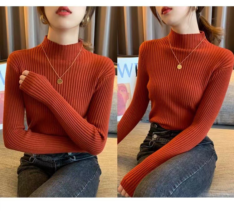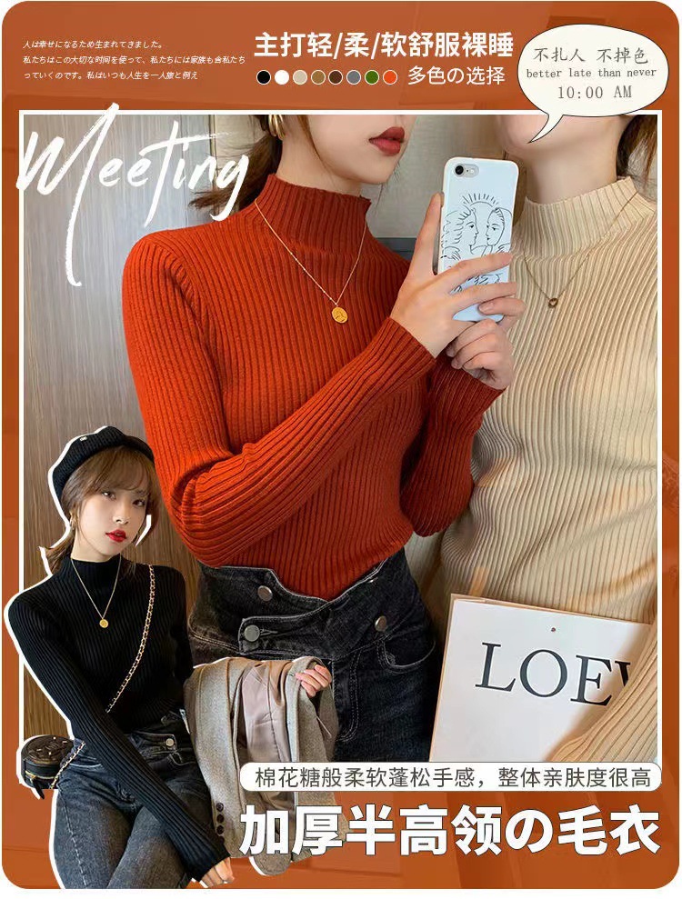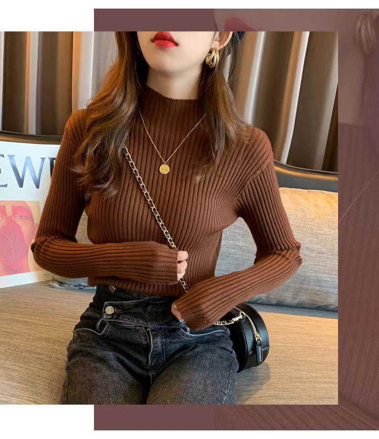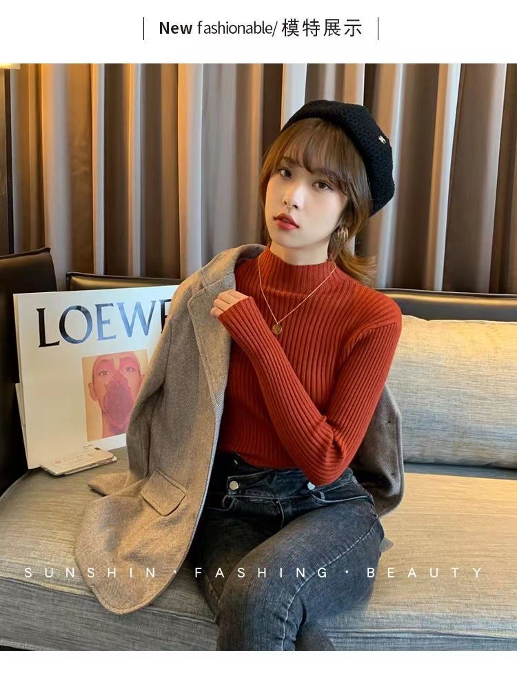 여성용 화이트 베이스 셔츠 가을 겨울 2025 신상 고급스러운 스타일 하프 터틀넥 스웨터 이너 니트 긴팔 상의스토어 가기