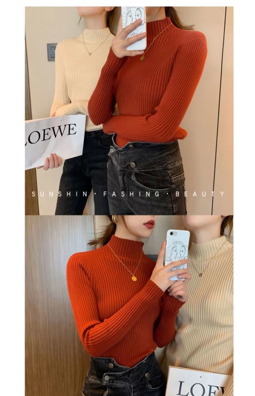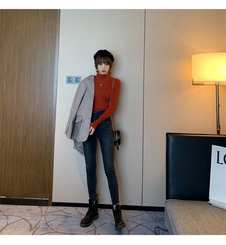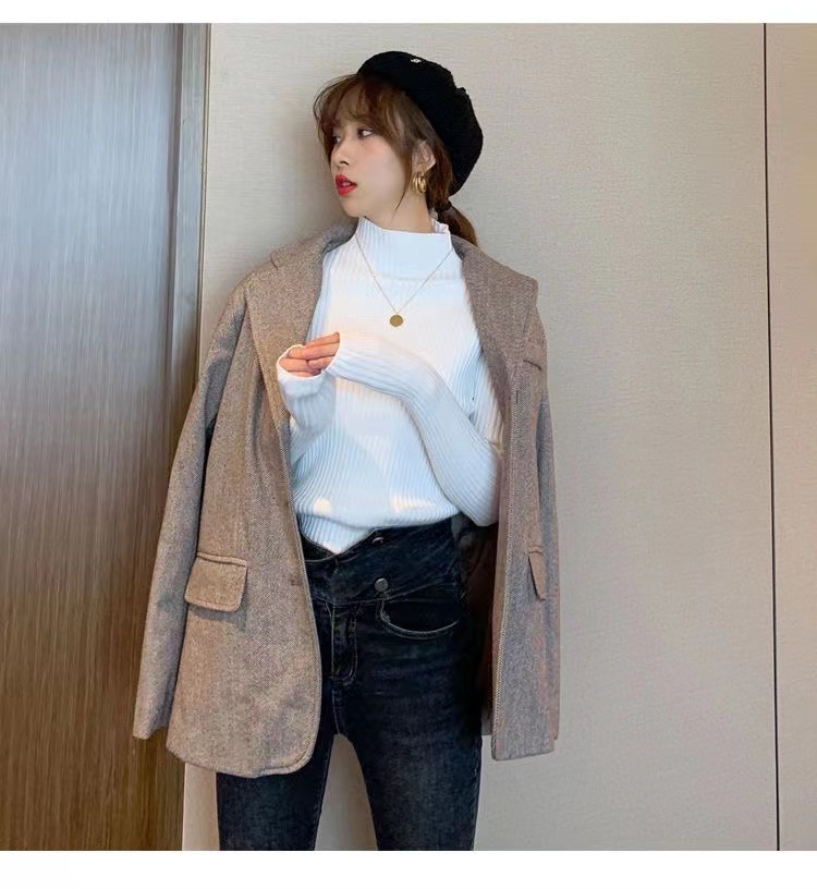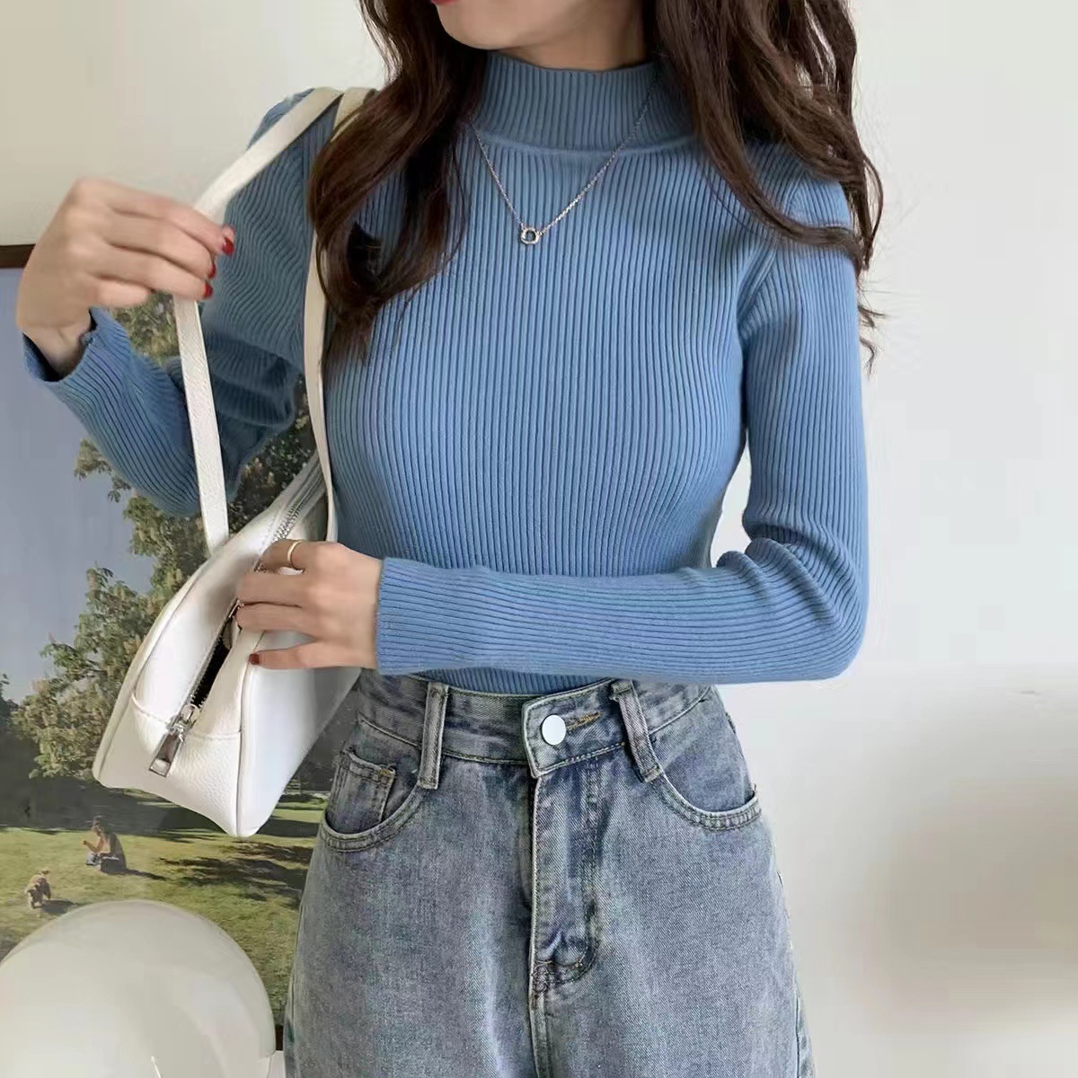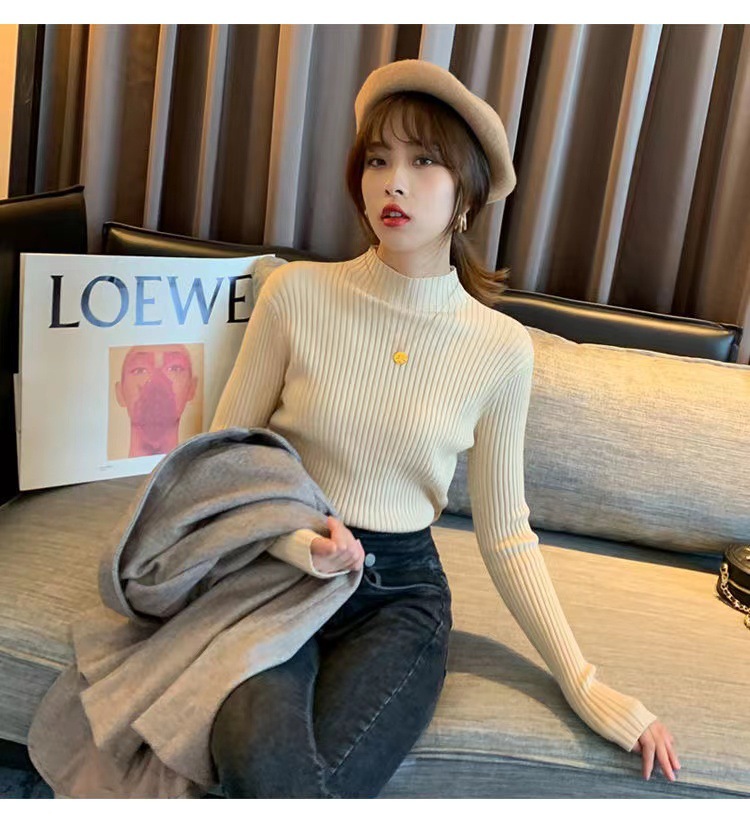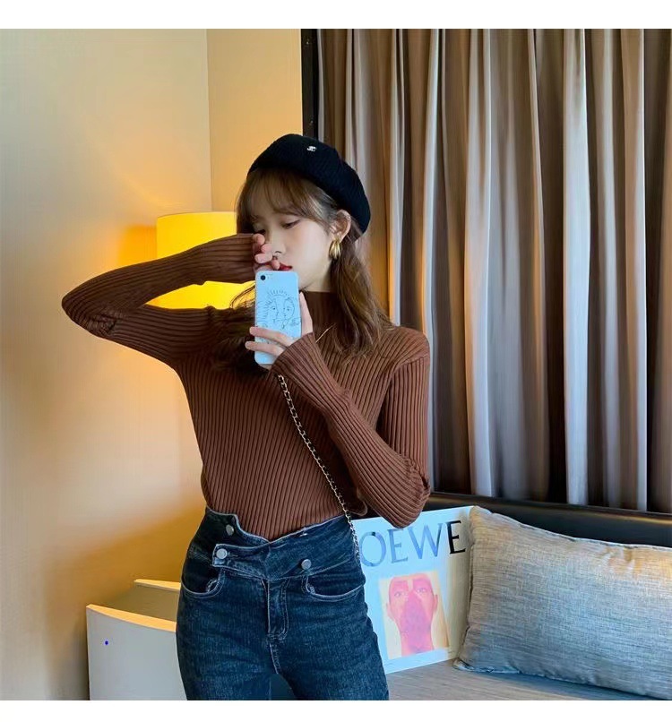 여성용 화이트 베이스 셔츠 가을 겨울 2025 신상 고급스러운 스타일 하프 터틀넥 스웨터 이너 니트 긴팔 상의스토어 가기