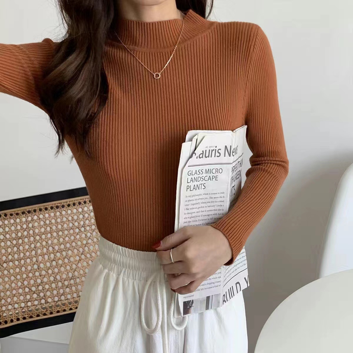 여성용 화이트 베이스 셔츠 가을 겨울 2025 신상 고급스러운 스타일 하프 터틀넥 스웨터 이너 니트 긴팔 상의