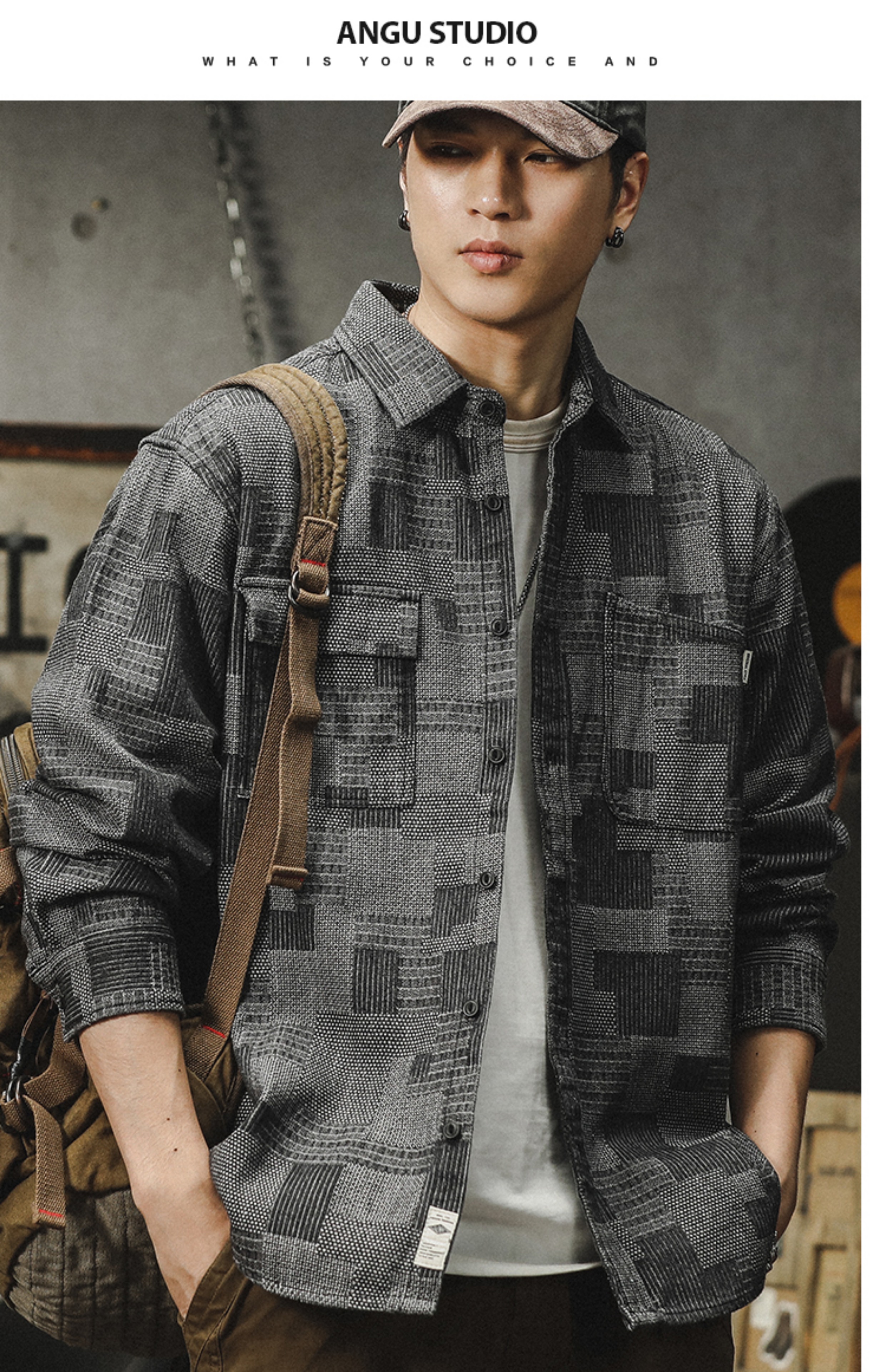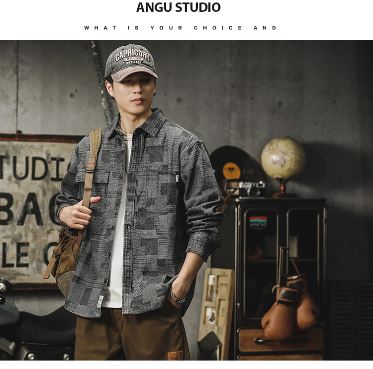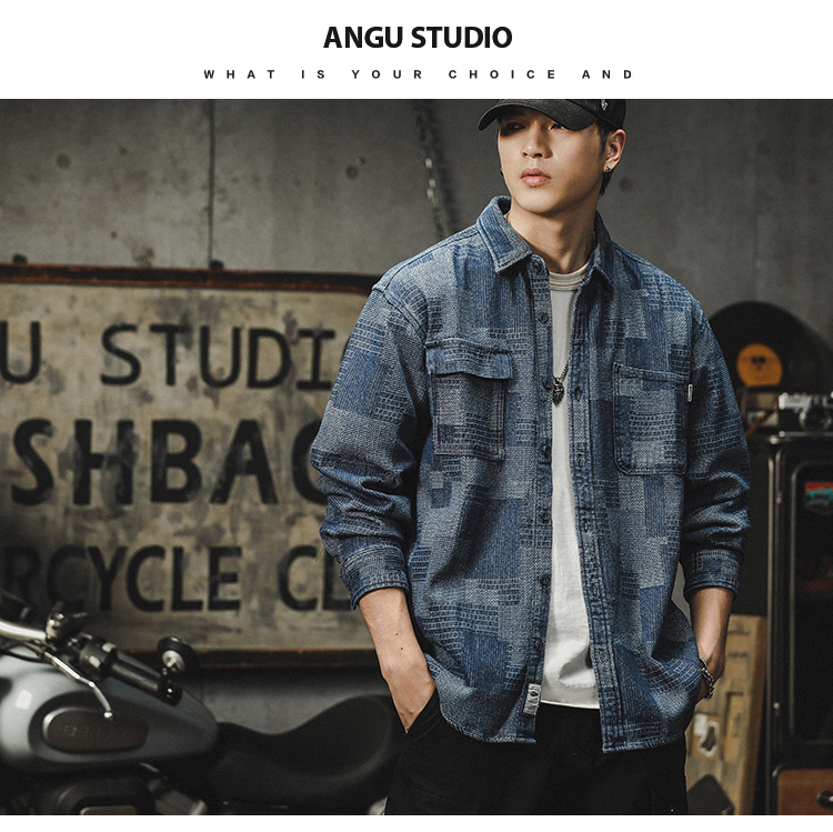 격자 무늬 데님 셔츠 남자의 긴 소매 봄 및 가을 새로운 느슨한 미국 스타일 유행 브랜드 캐주얼 트렌디 핸즈름 작업복 셔츠 재킷