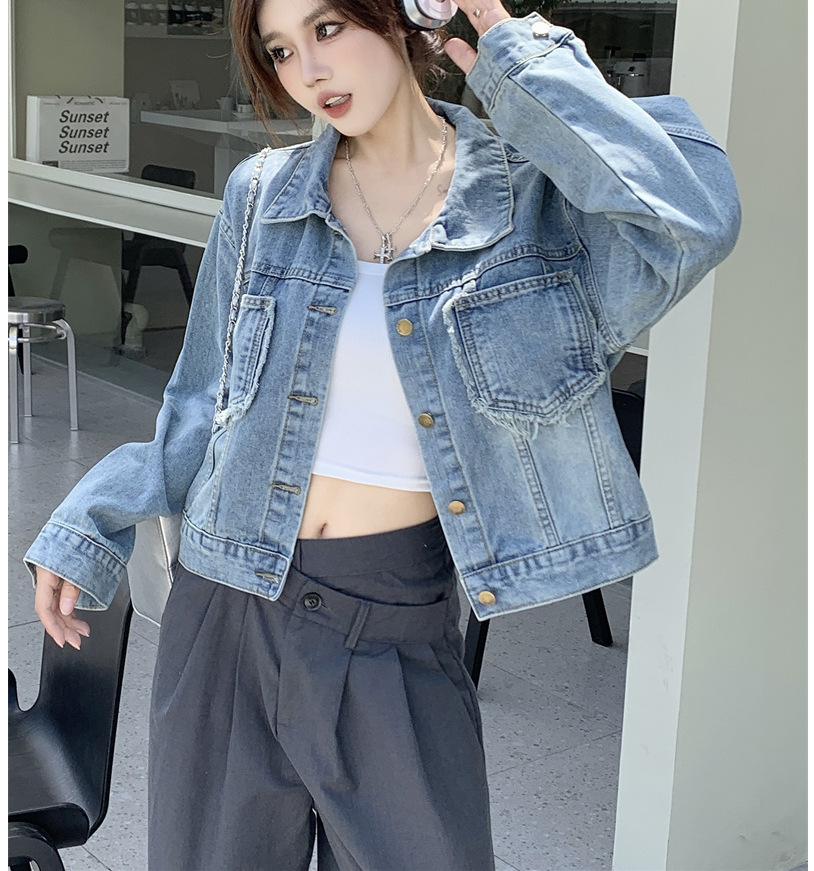 봄과 가을 새로운 빈티지 느슨한 데님 짧은 코트 작은 홍콩 스타일 짧은 패션 자켓 최고 여성의 짧은스토어 가기