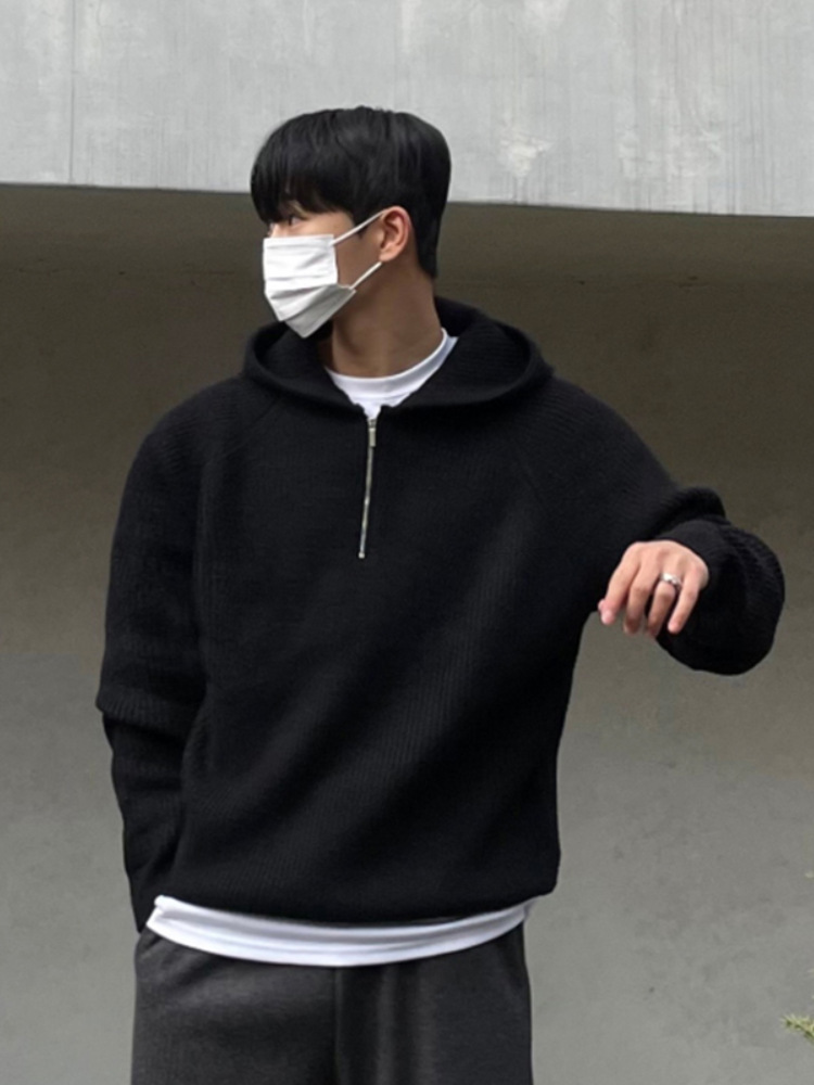 고급 반 지퍼 후드 스웨터 스웨터 남자 트렌디 브랜드 봄과 가을 게으른 스타일 두꺼운 스웨터 헤비 재킷