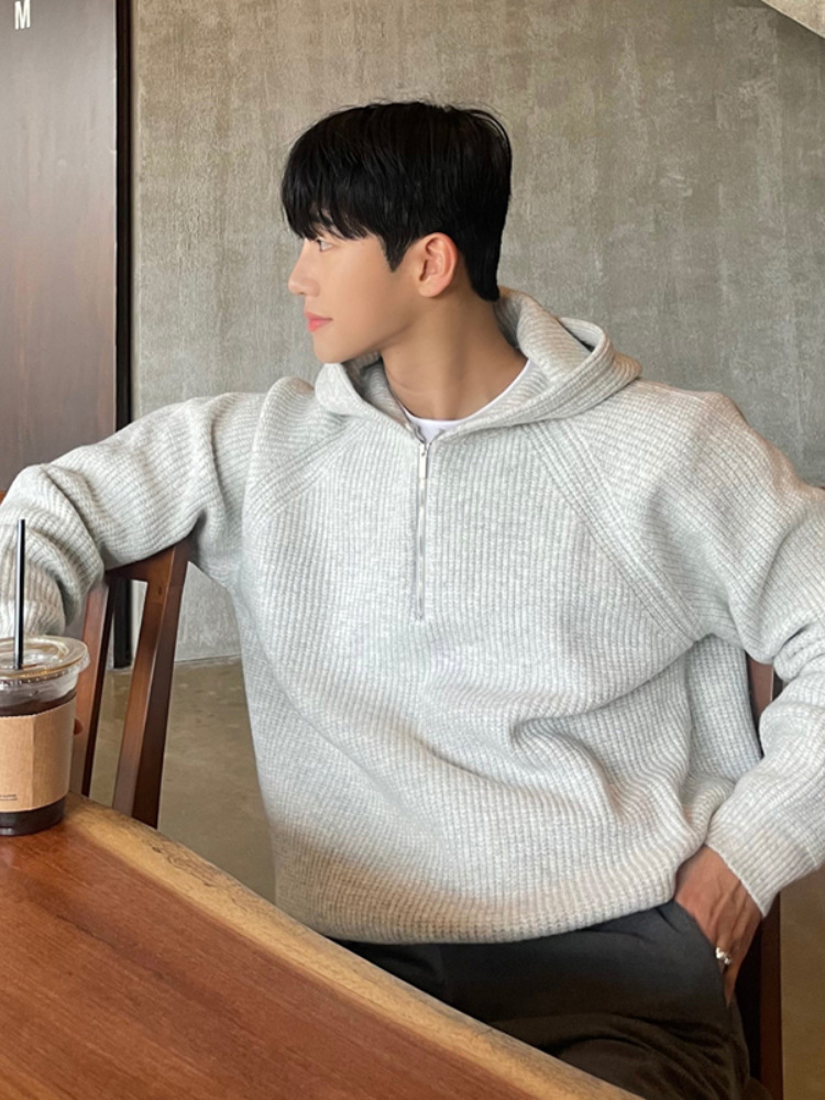 고급 반 지퍼 후드 스웨터 스웨터 남자 트렌디 브랜드 봄과 가을 게으른 스타일 두꺼운 스웨터 헤비 재킷스토어 가기