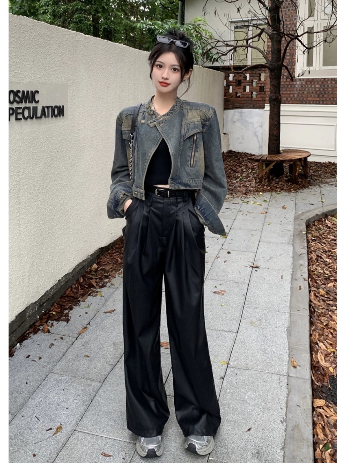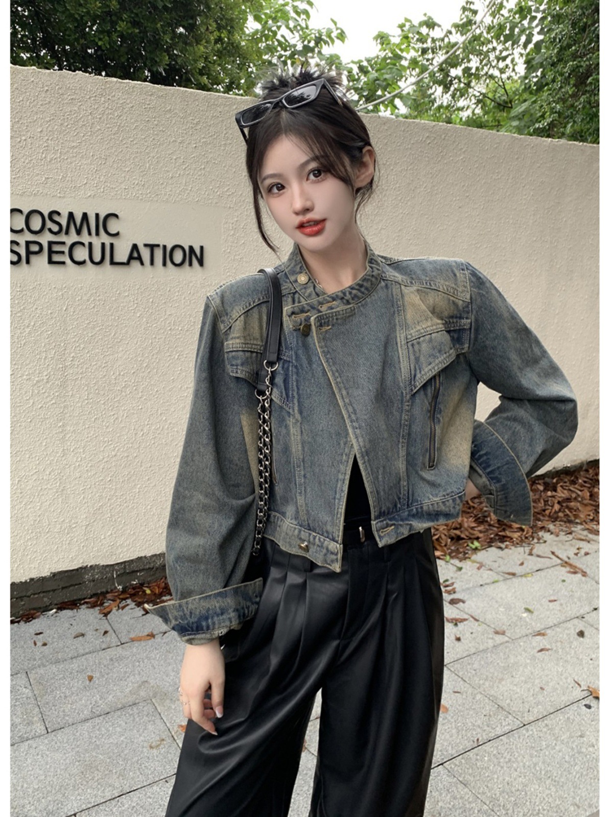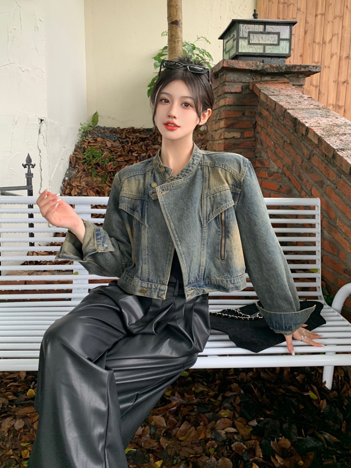 여성용 데님 바이커 재킷 2024년 가을 루즈핏 숏 긴팔 재킷 탑 ins 스타일 다용도 패셔너블스토어 가기