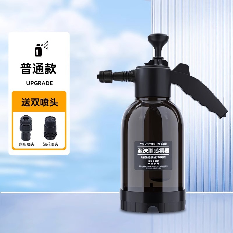 2.喷壶适用于家庭清洁和汽车清洁喷洒无腐蚀性液体。请勿用于喷洒酸液,酒精,汽油等强腐蚀性液体。