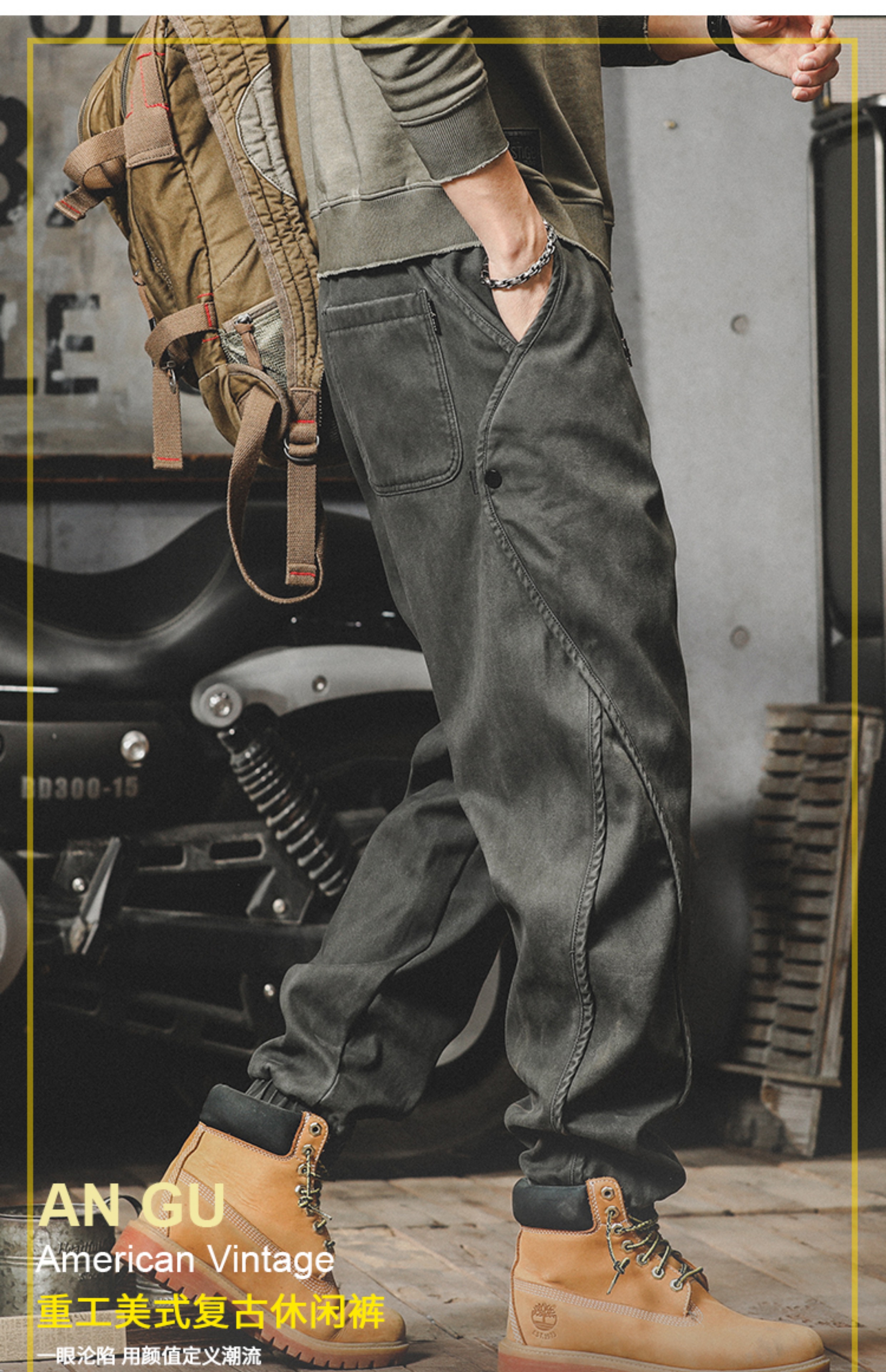 디자인 센스 중량화물 바지 남성용 트렌디 브랜드 루즈 할란 캐주얼 바지 남성용 아메리칸 스타일 레트로 로깅 바지스토어 가기