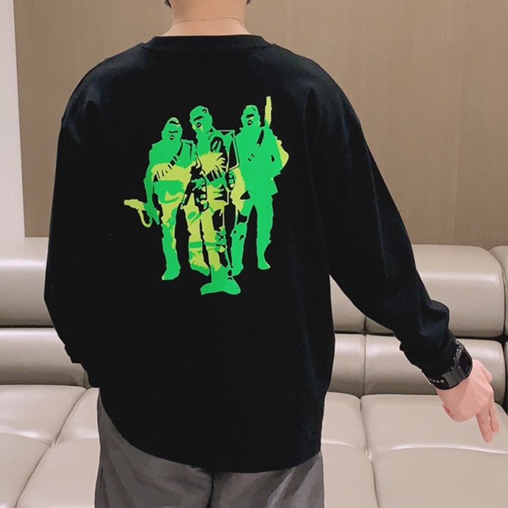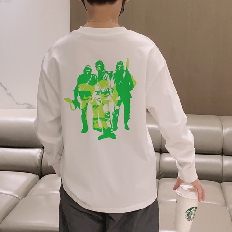 24FW009 남녀 어린이 원숭이 머리 인쇄 모든 경기 면 긴팔 티셔츠 2 색스토어 가기
