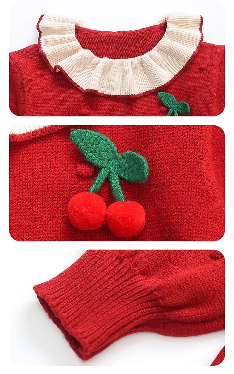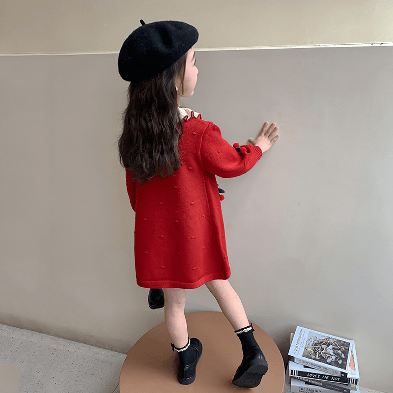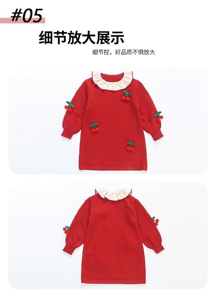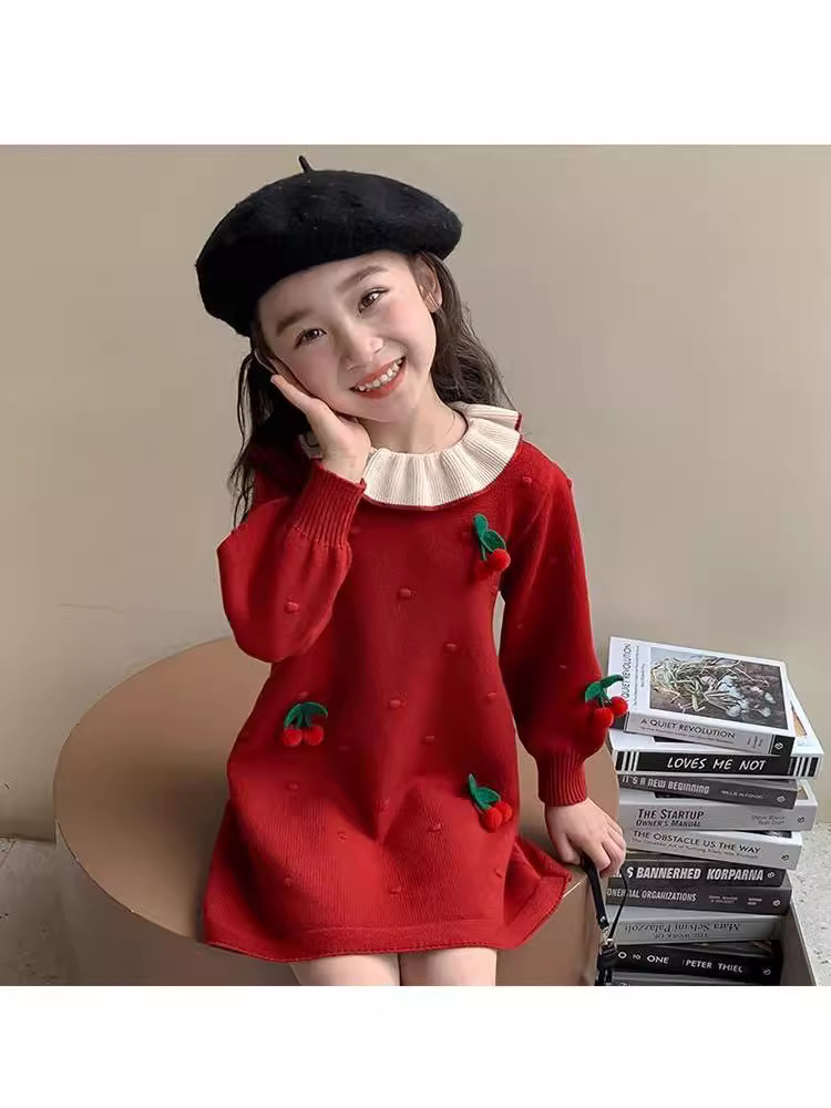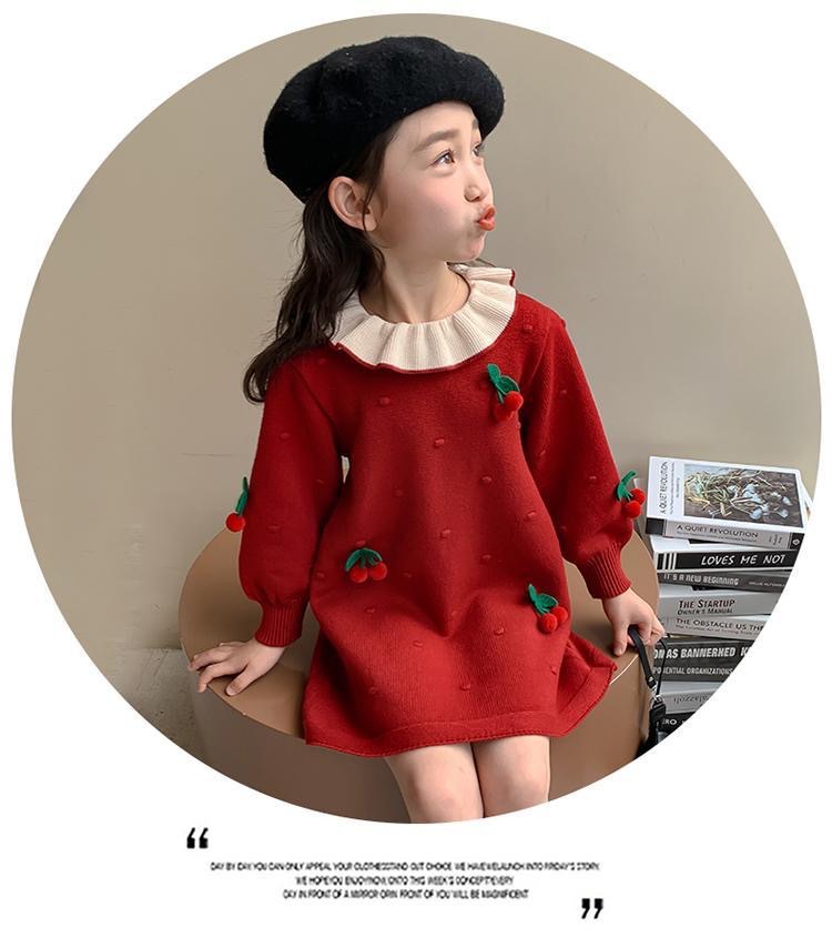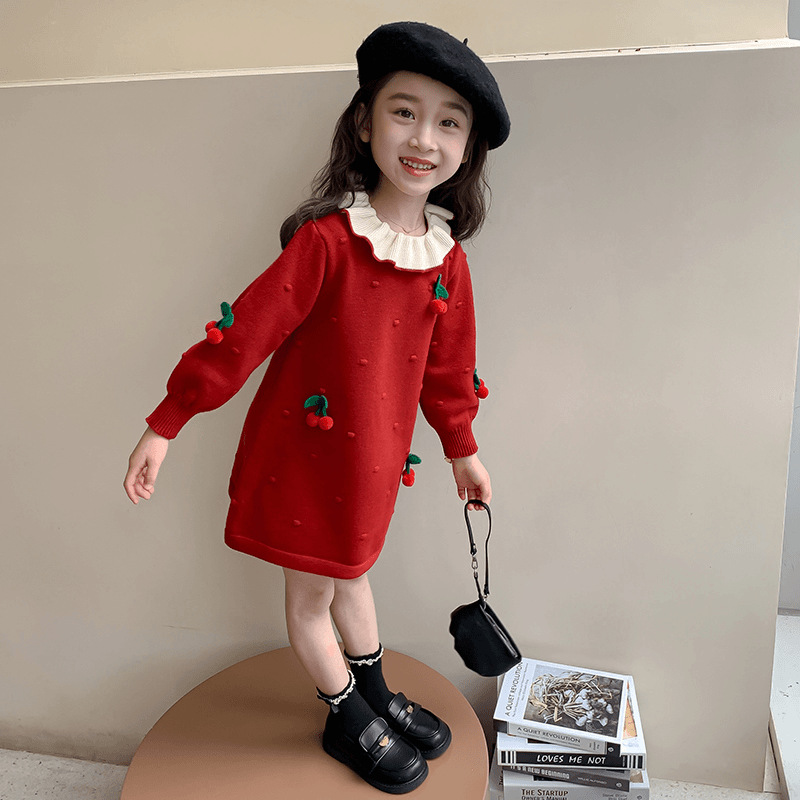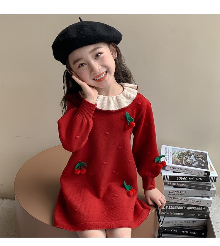 소녀 스웨터 원피스 2024 가을과 겨울 새로운 한국 스타일 입체 체리 니트 달콤한 소녀 공주 스커트스토어 가기