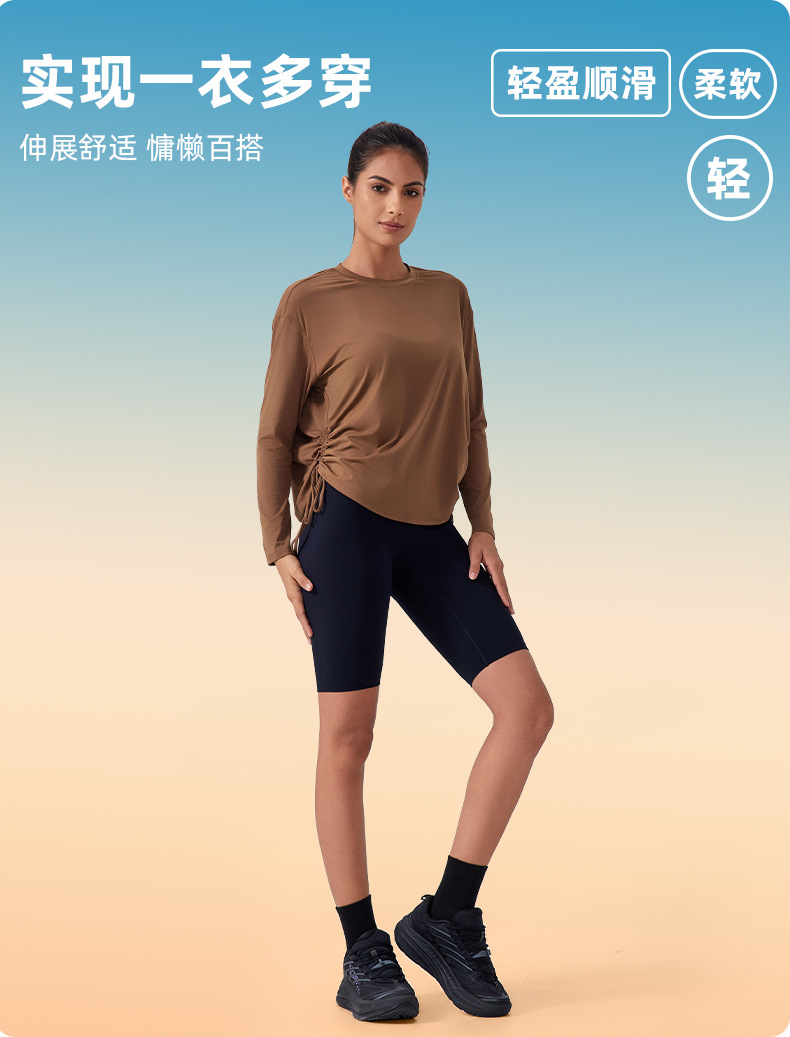 느슨한 빠른 건조 스포츠 최고 여성 긴팔 티셔츠 요가 의류 알몸 통기성 러닝 피트니스 의류 DAW187스토어 가기
