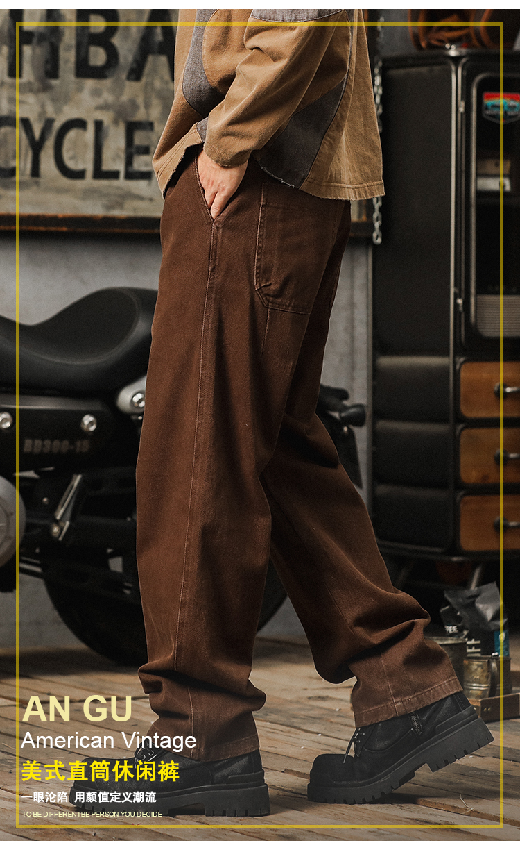 스트레이트 캐주얼 바지 남성용 느슨한 작업복 남성용 바지 올 매치 유행 잘 생긴 미국 스타일 플러스 사이즈 내마모성 나무 바지스토어 가기