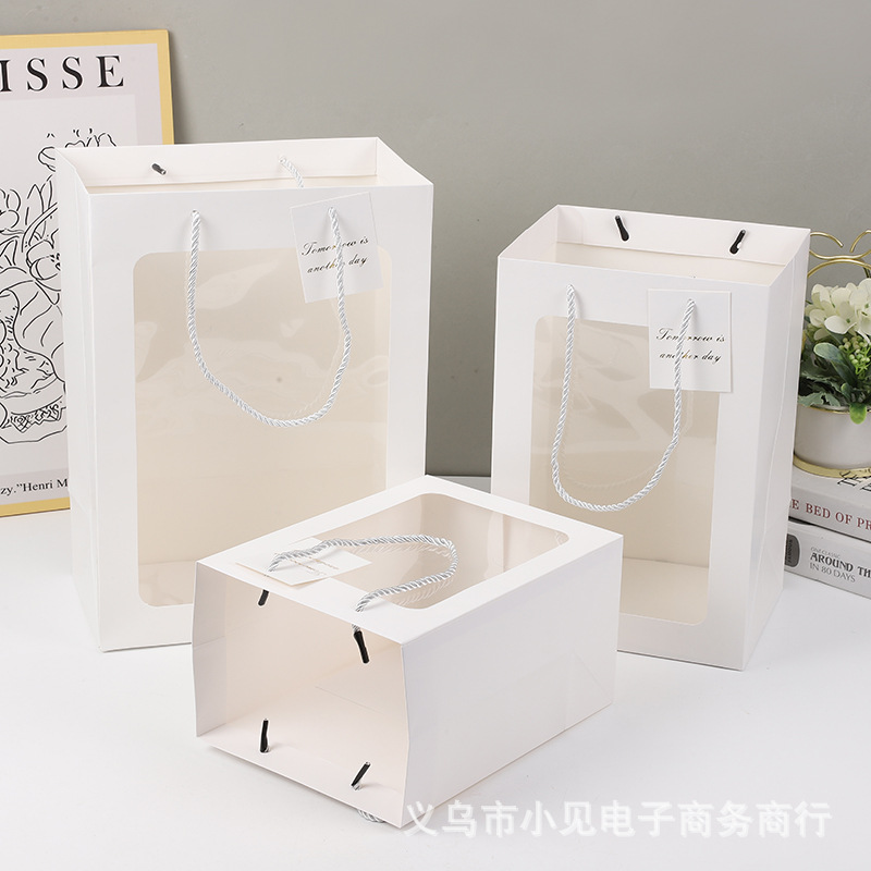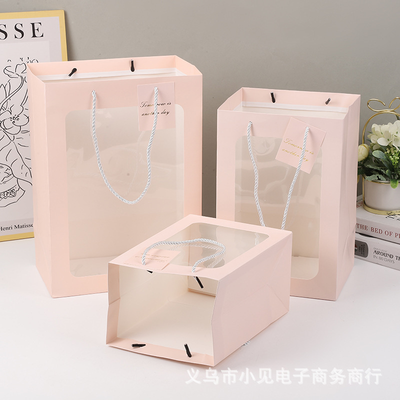 창문 선물 가방 꽃다발 인형 쇼윈도 가방 꽃 핸드백 투명 선물 가방 두꺼운 어머니날 포장 가방스토어 가기