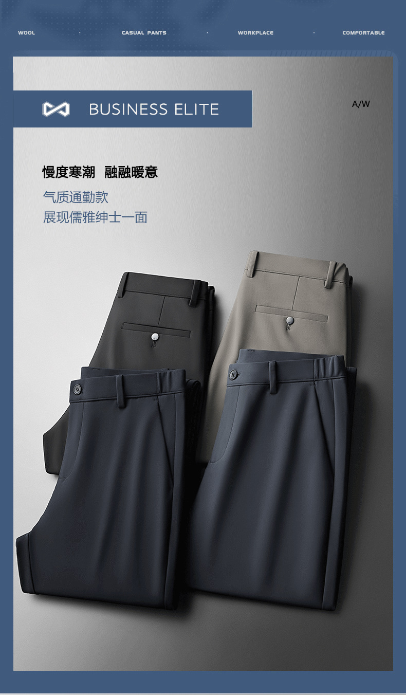 가벼운 럭셔리급 울 비즈니스 바지 남성용 가을 겨울 남성 캐주얼 바지 다림질 필요 없는 정장 바지 두꺼운 남성용 정장 바지스토어 가기