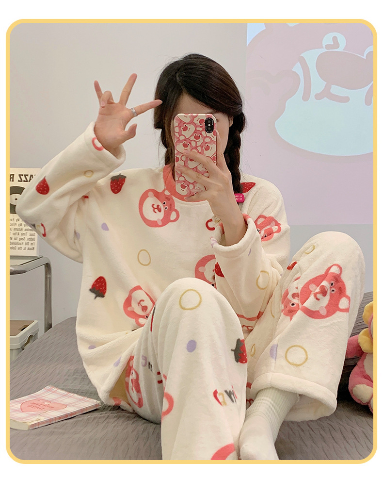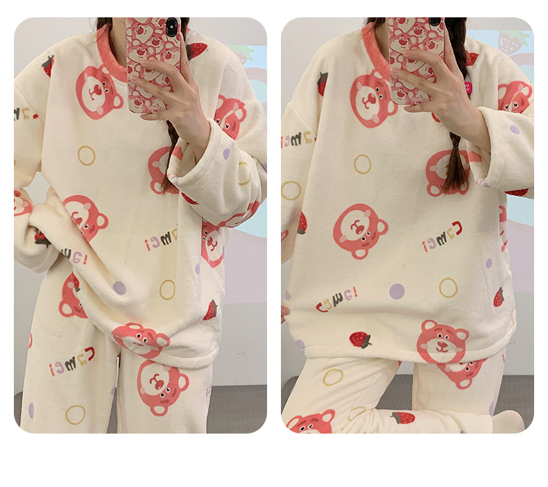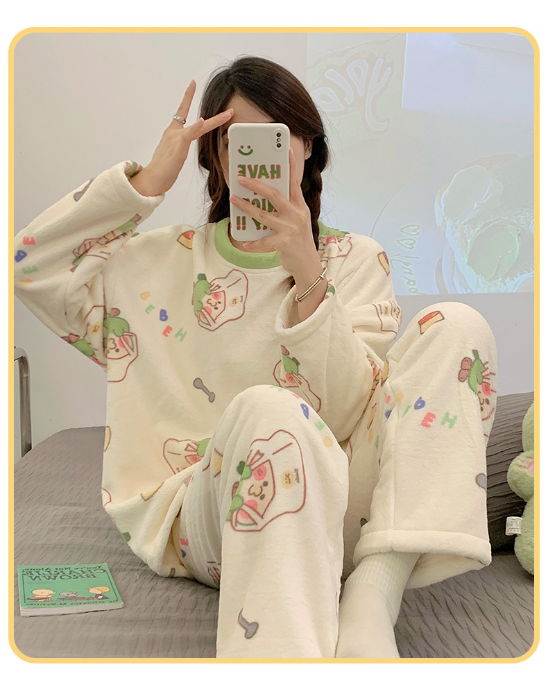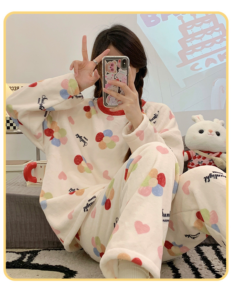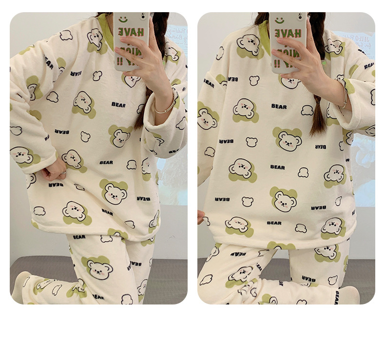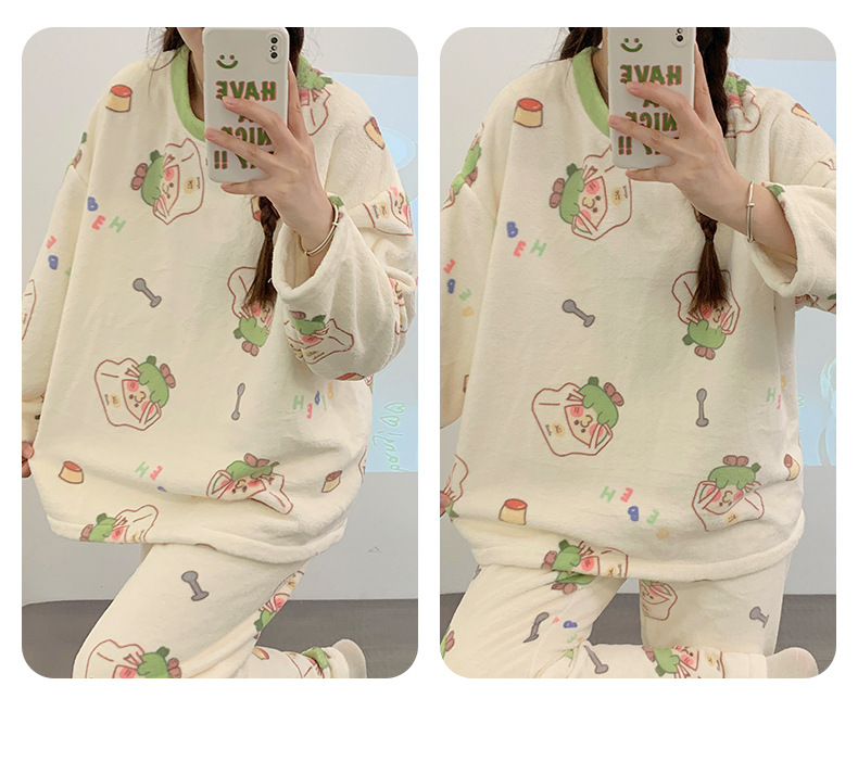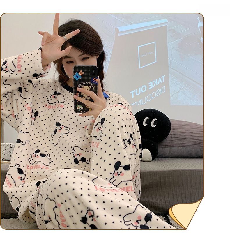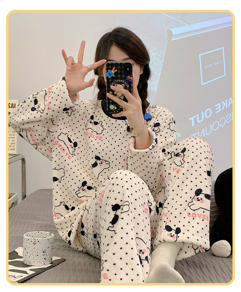 여성용 잠옷 가을, 겨울 플란넬 한국어 버전 만화 달콤하고 귀여운 인터넷 연예인 스타일 따뜻한 플러시 산호 벨벳스토어 가기