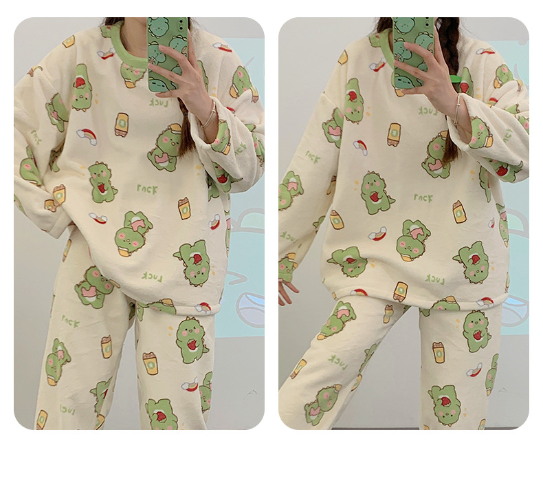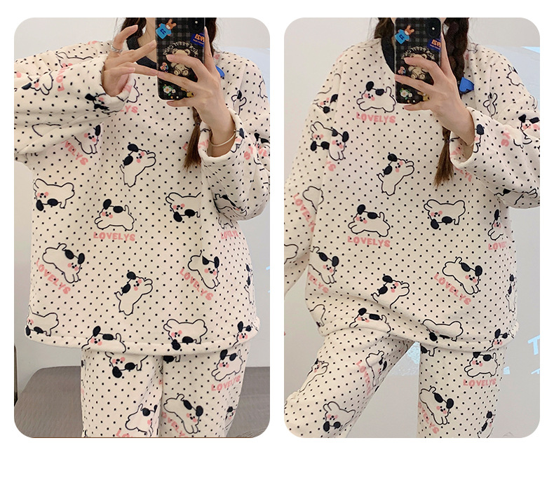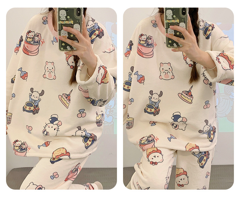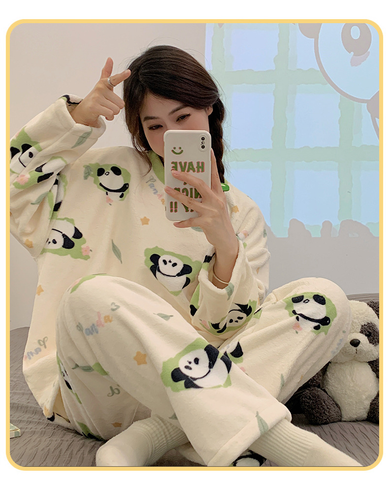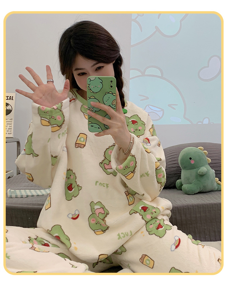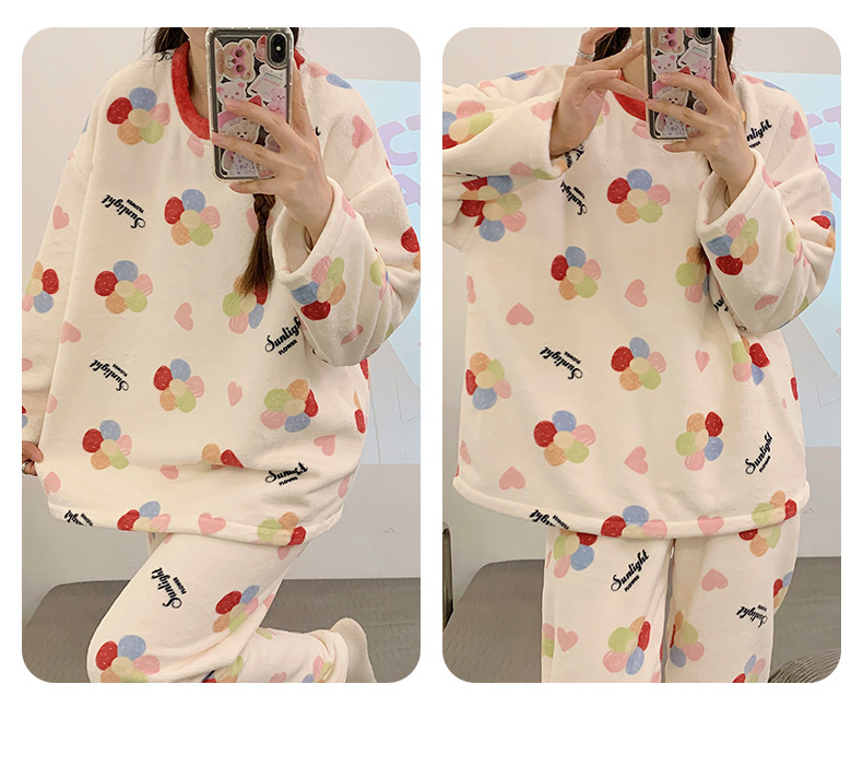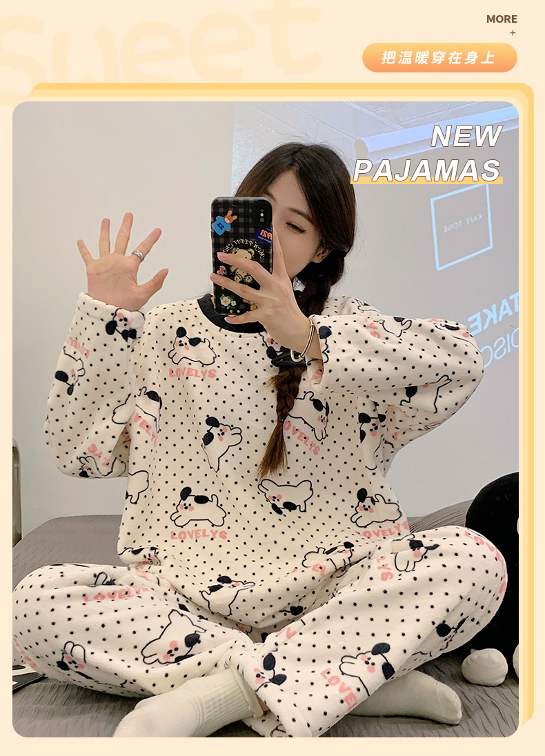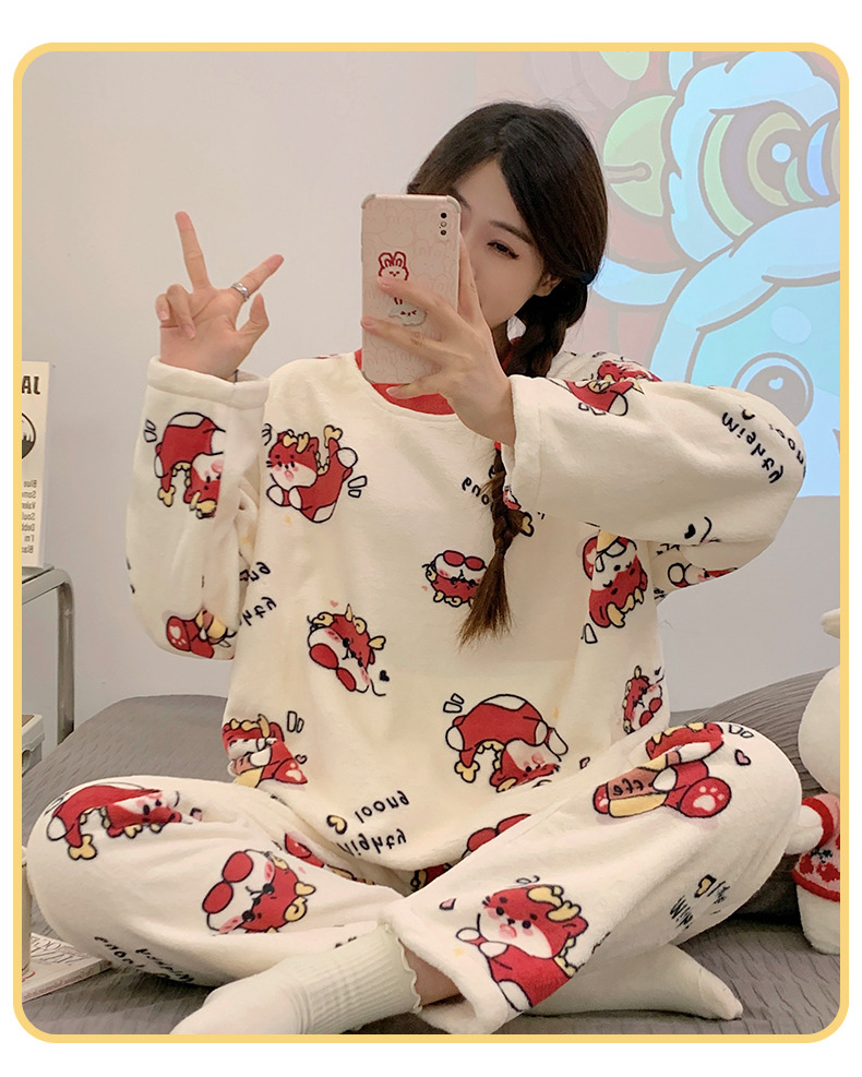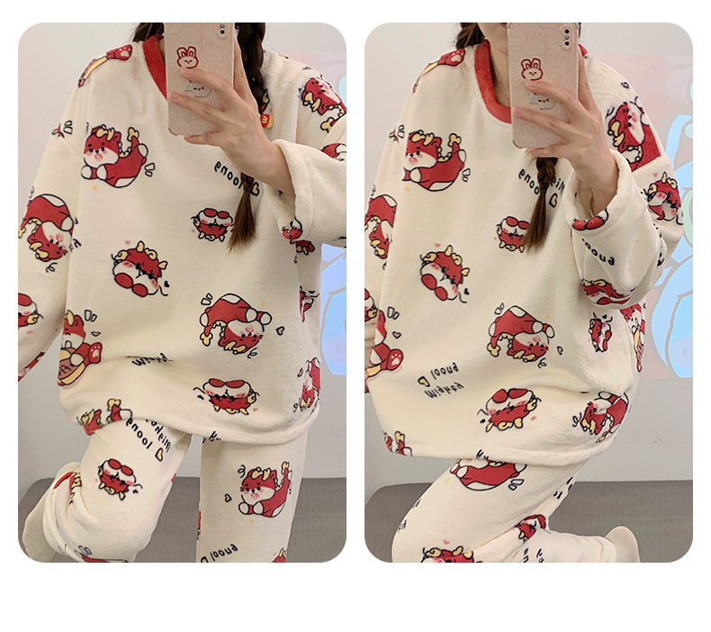 여성용 잠옷 가을, 겨울 플란넬 한국어 버전 만화 달콤하고 귀여운 인터넷 연예인 스타일 따뜻한 플러시 산호 벨벳스토어 가기