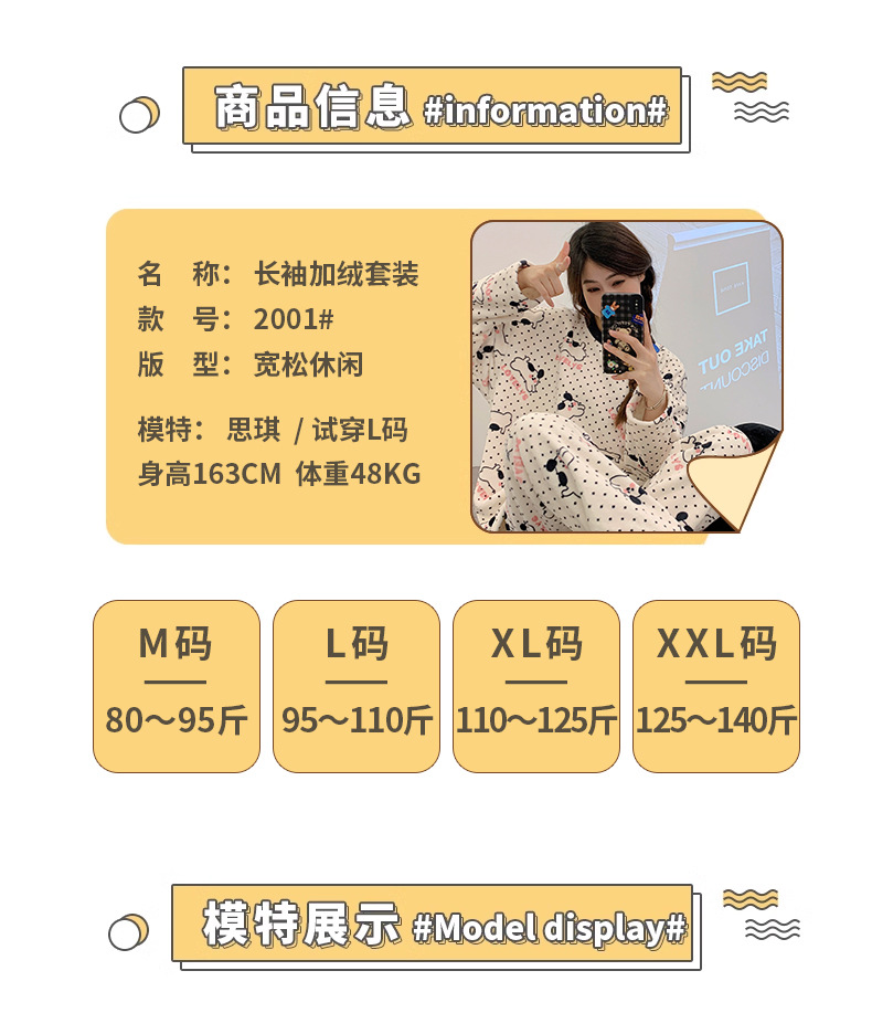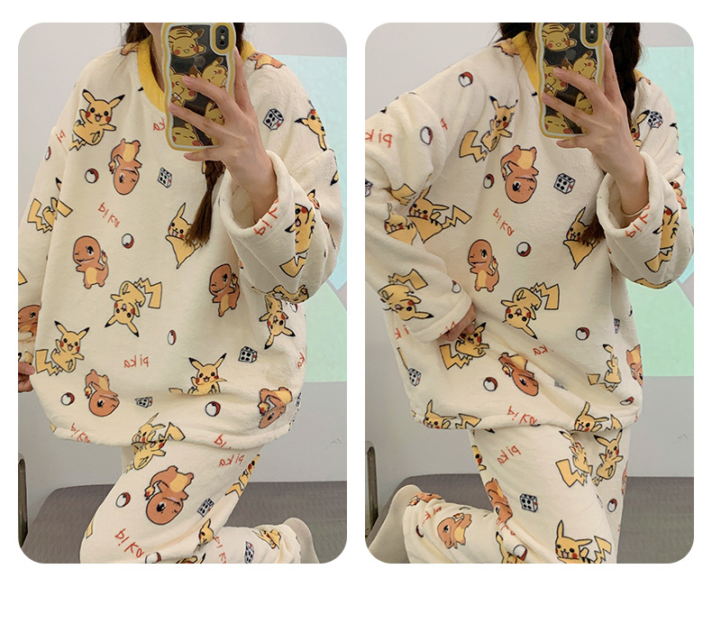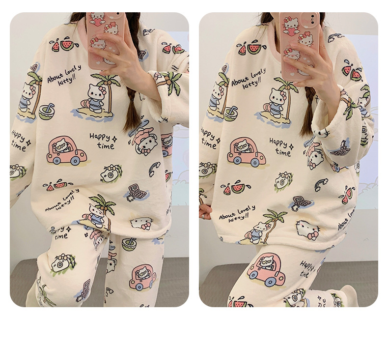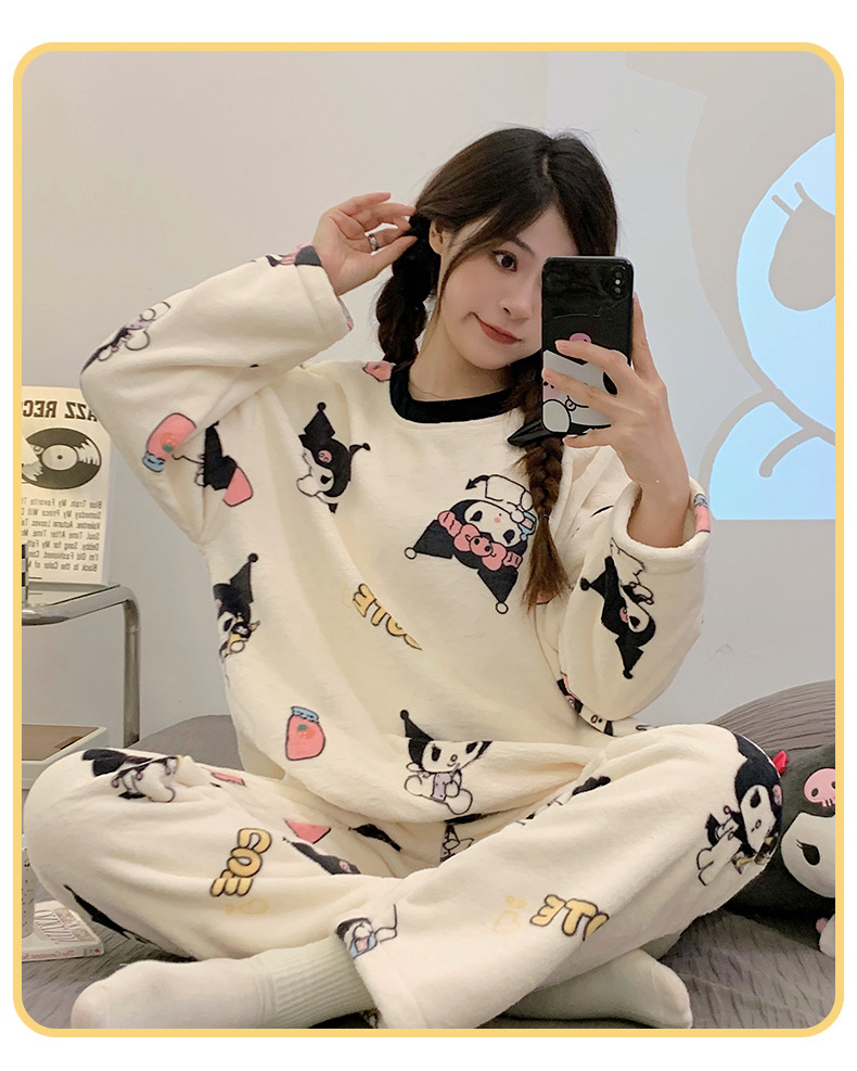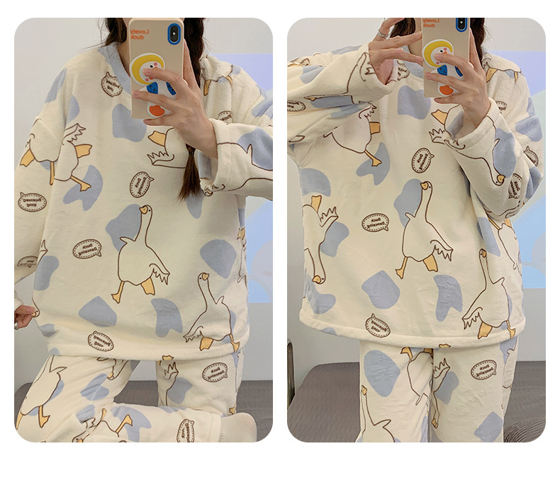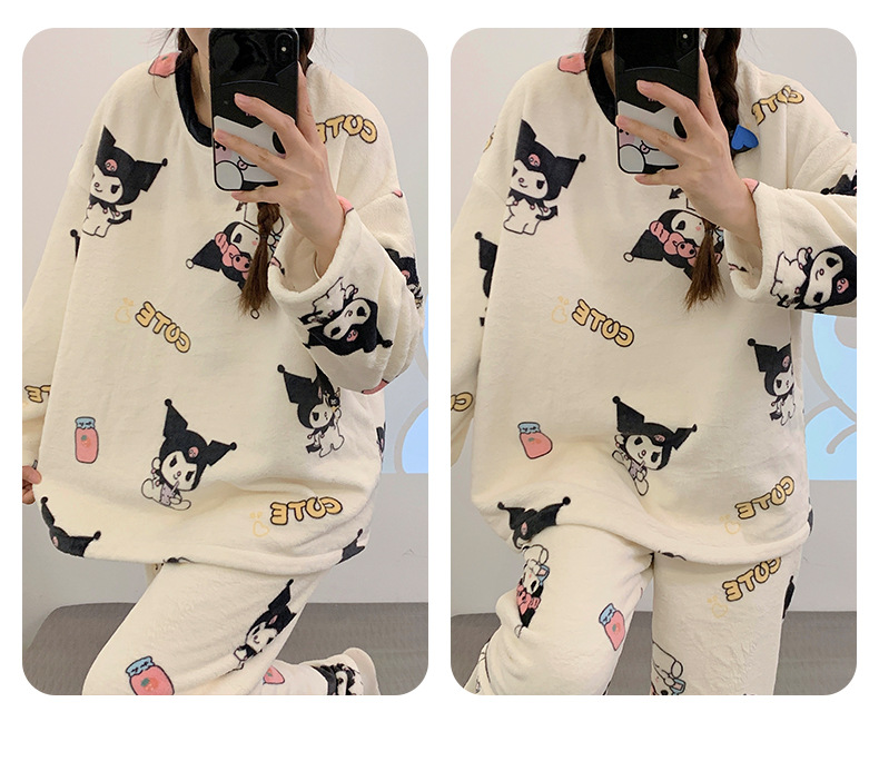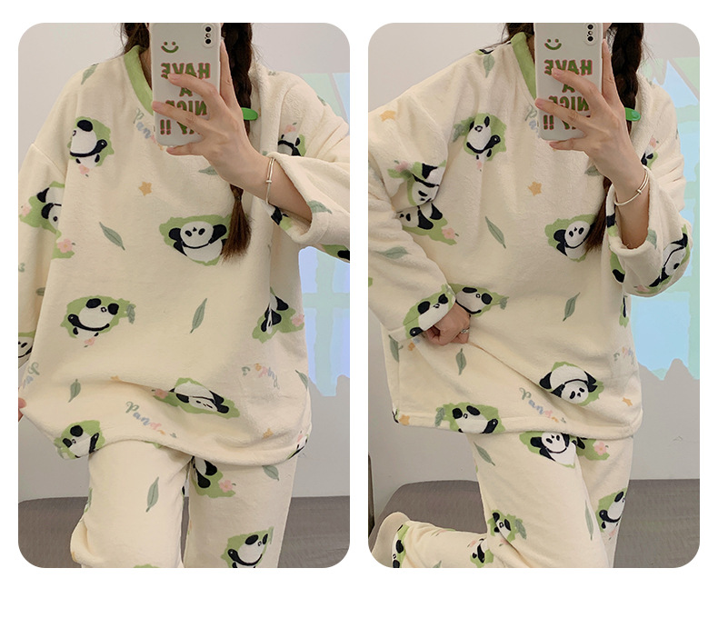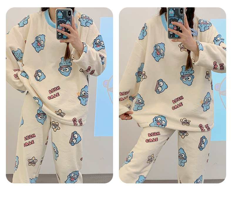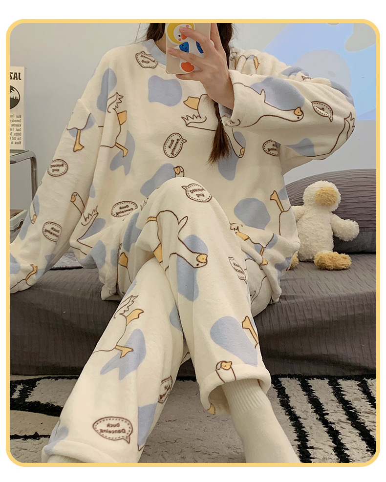 여성용 잠옷 가을, 겨울 플란넬 한국어 버전 만화 달콤하고 귀여운 인터넷 연예인 스타일 따뜻한 플러시 산호 벨벳스토어 가기