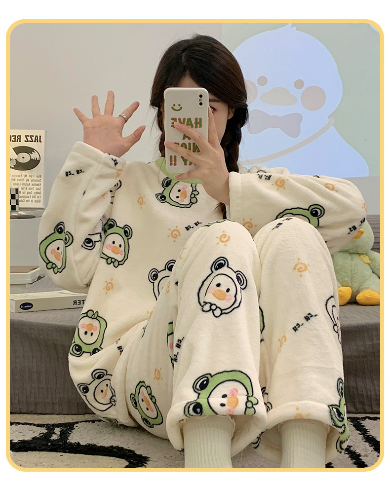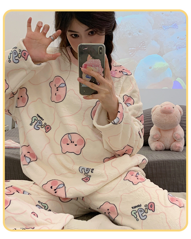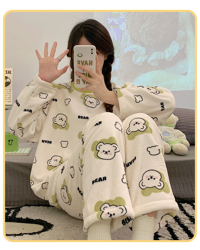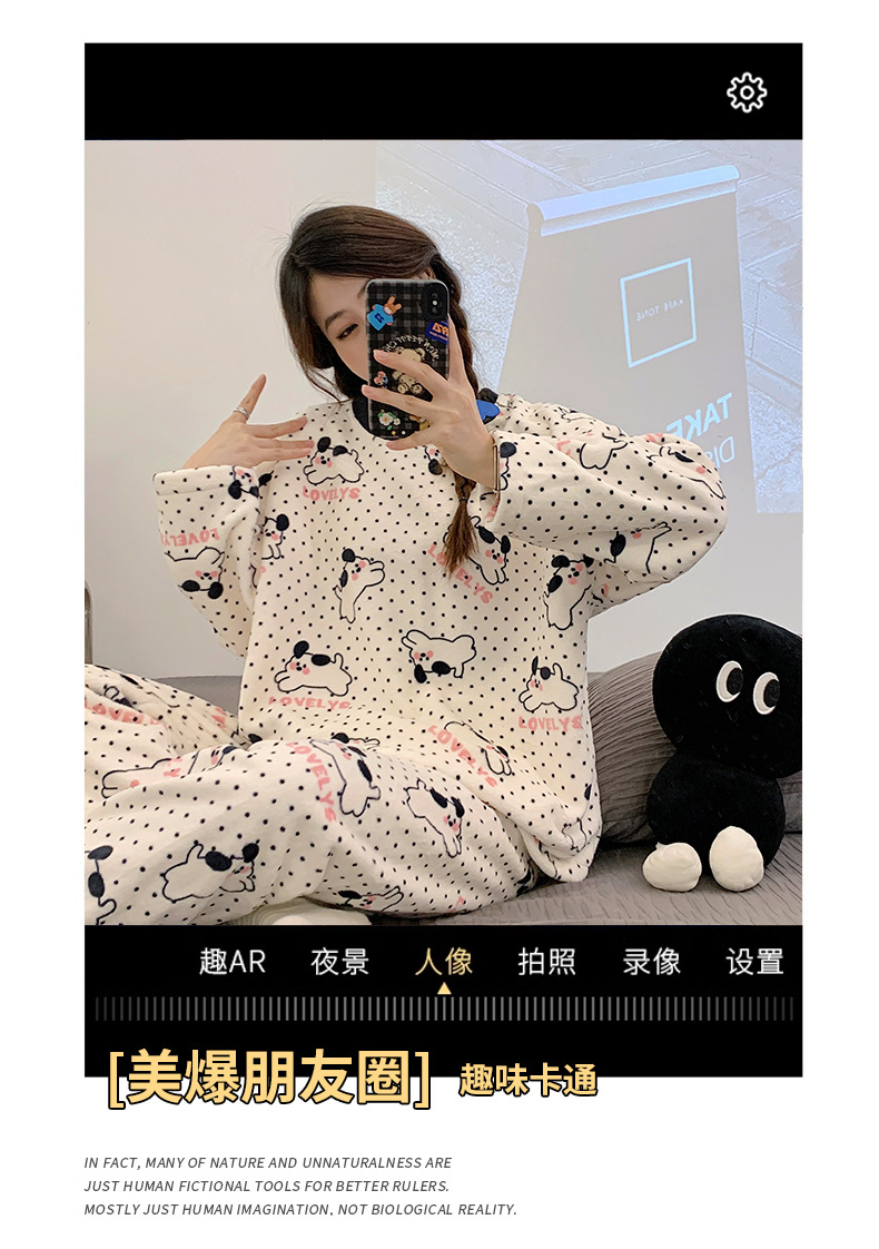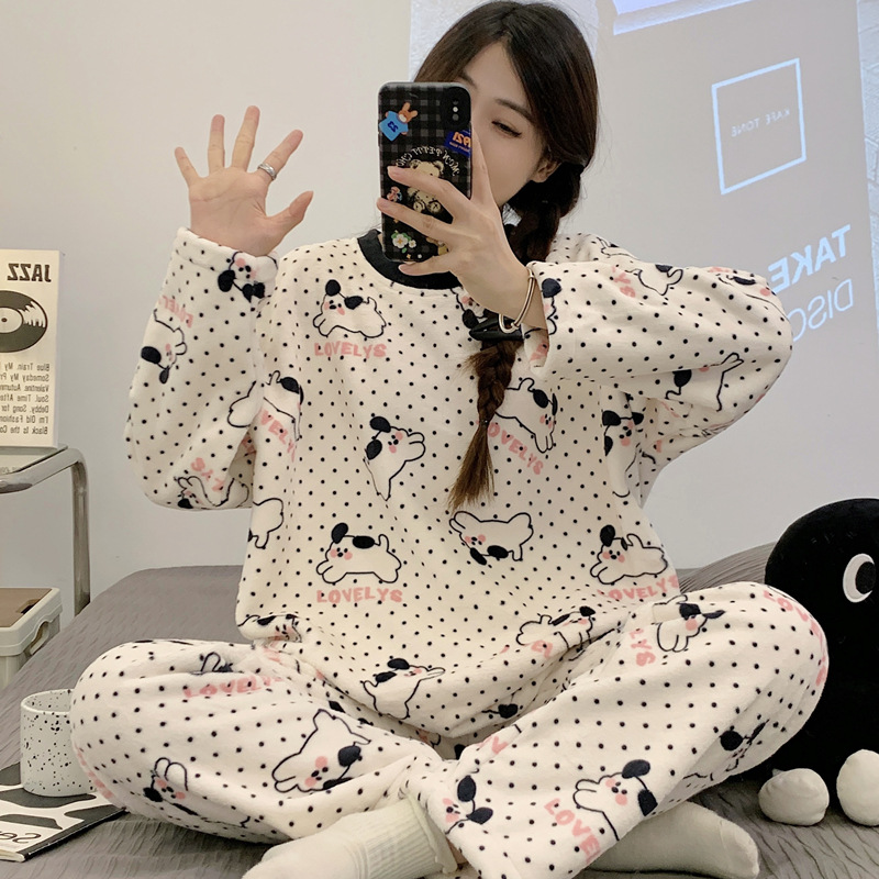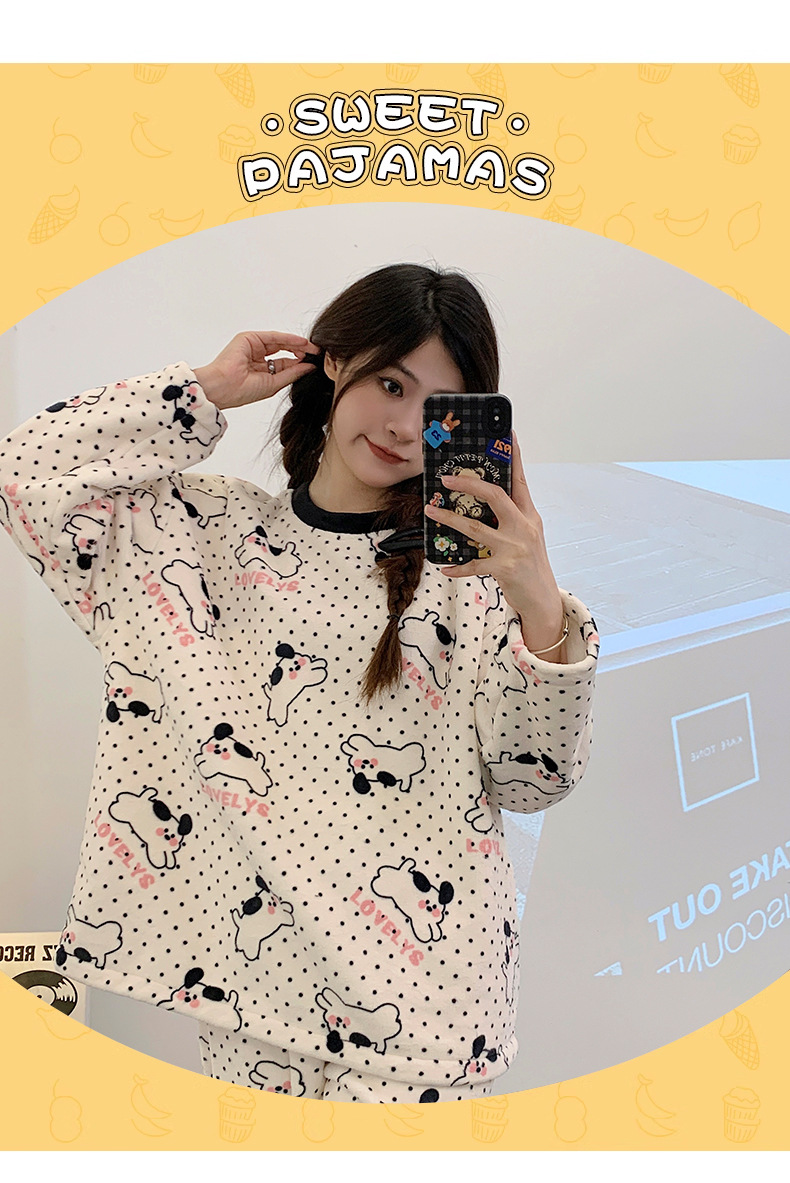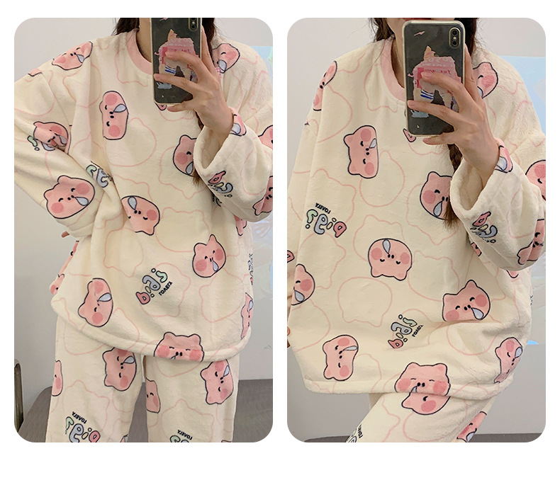 여성용 잠옷 가을, 겨울 플란넬 한국어 버전 만화 달콤하고 귀여운 인터넷 연예인 스타일 따뜻한 플러시 산호 벨벳