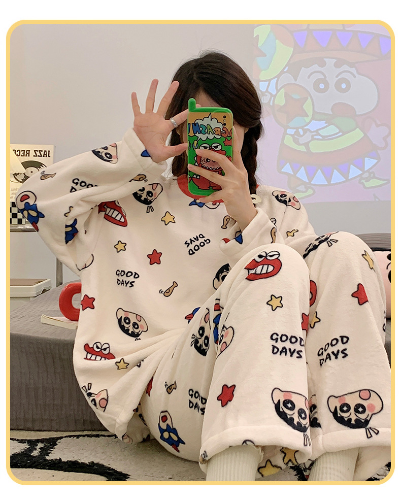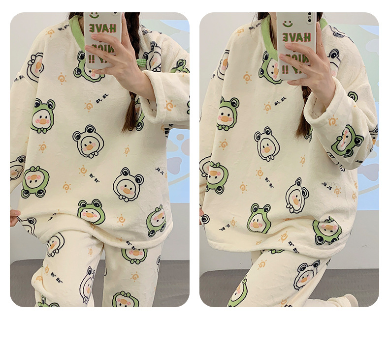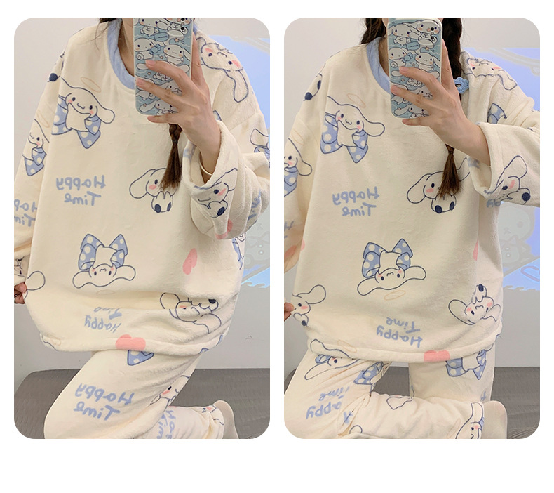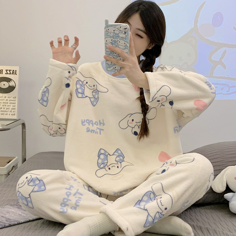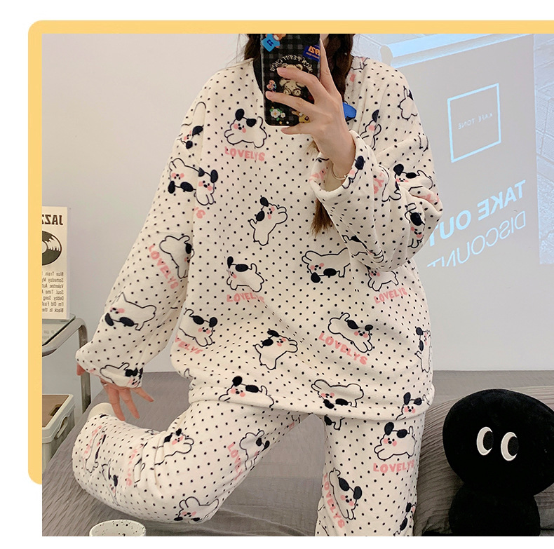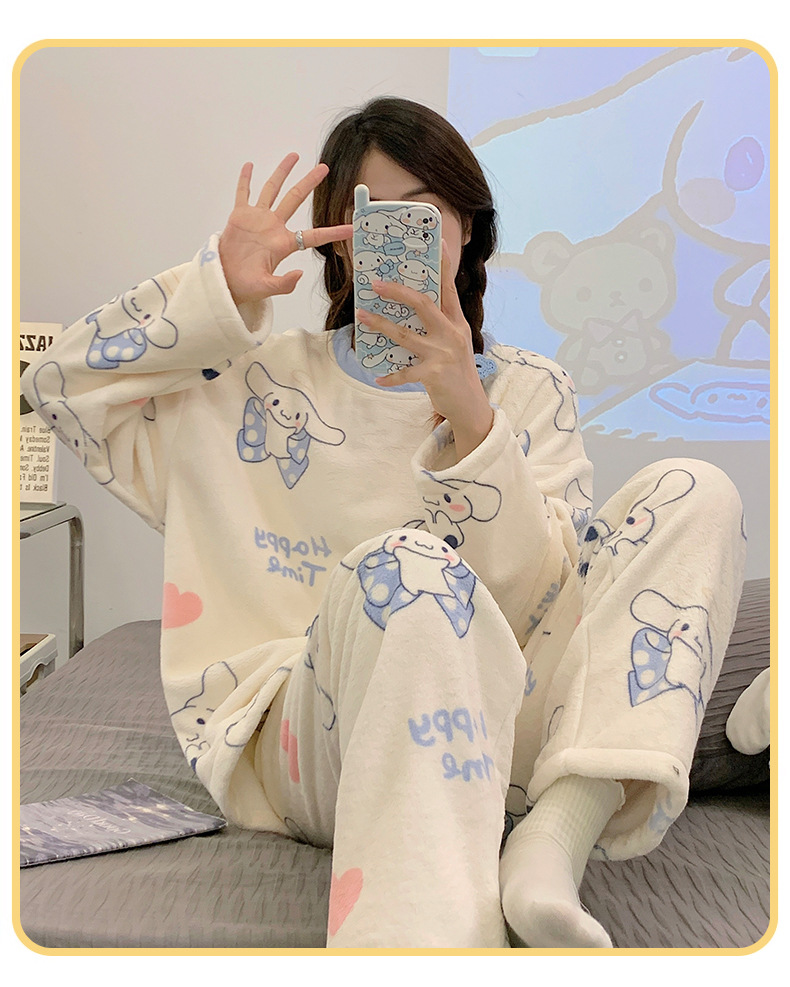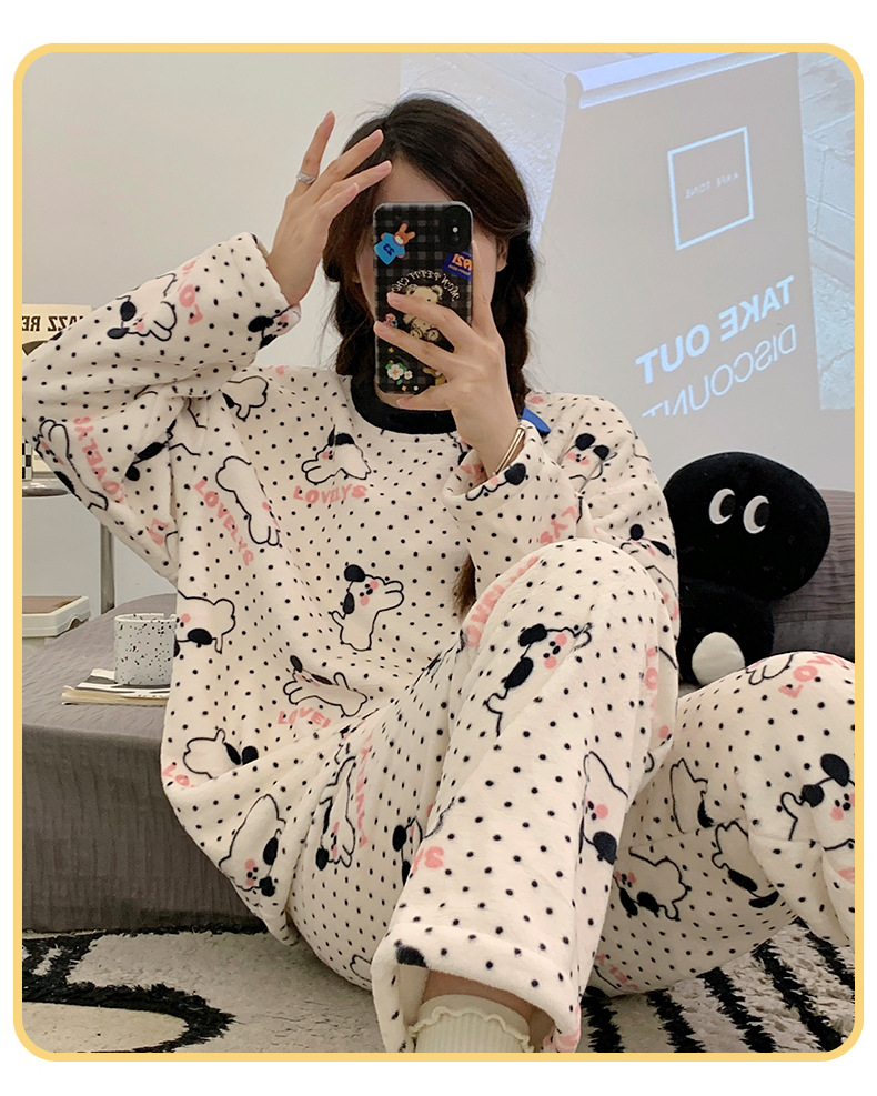 여성용 잠옷 가을, 겨울 플란넬 한국어 버전 만화 달콤하고 귀여운 인터넷 연예인 스타일 따뜻한 플러시 산호 벨벳