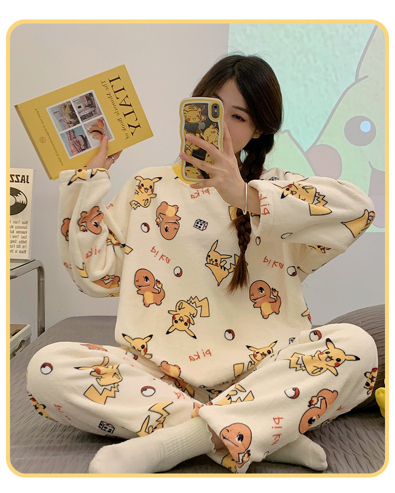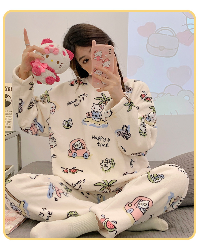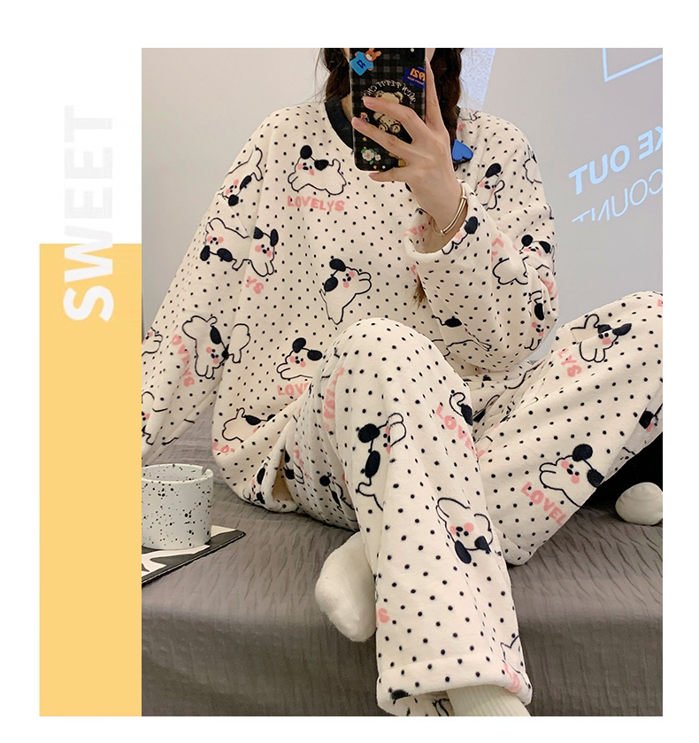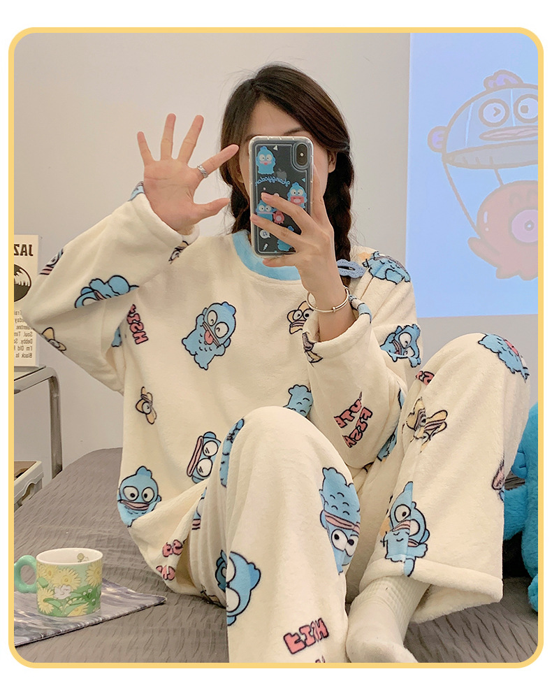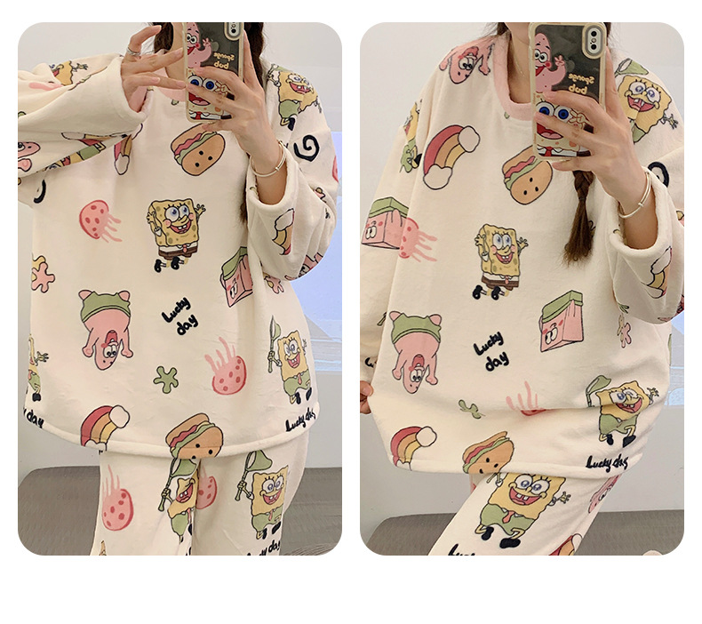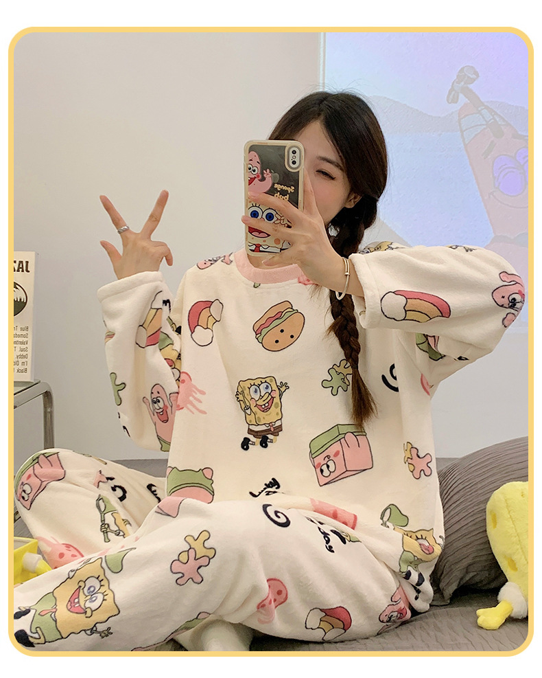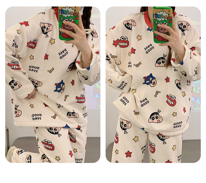 여성용 잠옷 가을, 겨울 플란넬 한국어 버전 만화 달콤하고 귀여운 인터넷 연예인 스타일 따뜻한 플러시 산호 벨벳