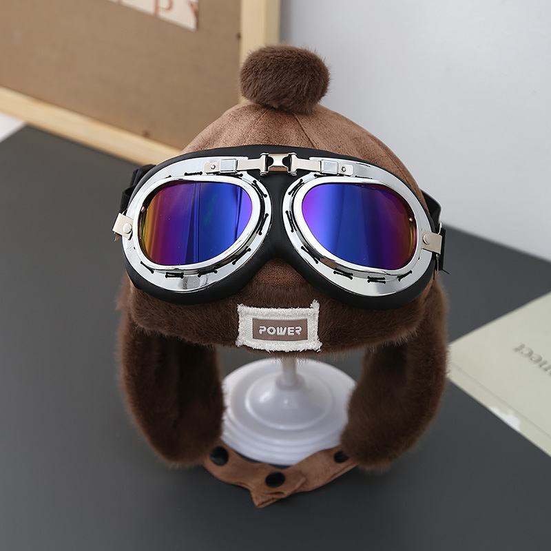 • 토끼털 레이펑 모자 - 갈색 모자 + 안경