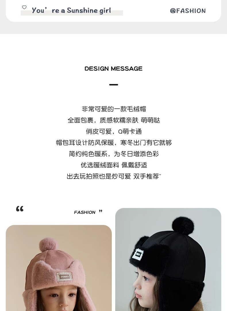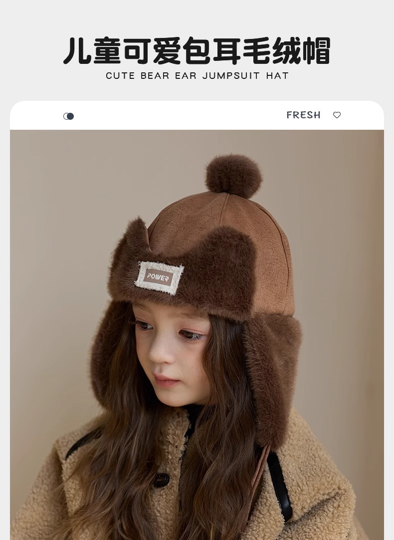 어린이 모자 2024 가을과 겨울 새로운 소녀 레이 펑 모자 고양이 귀 따뜻한 방풍 소년 모피 공 기모 귀 보호