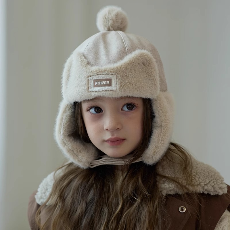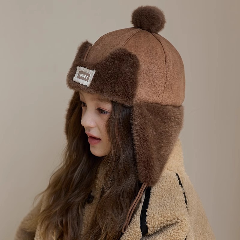 어린이 모자 2024 가을과 겨울 새로운 소녀 레이 펑 모자 고양이 귀 따뜻한 방풍 소년 모피 공 기모 귀 보호스토어 가기