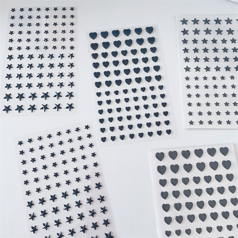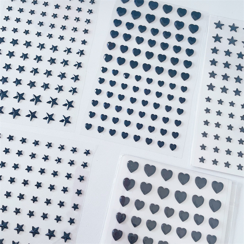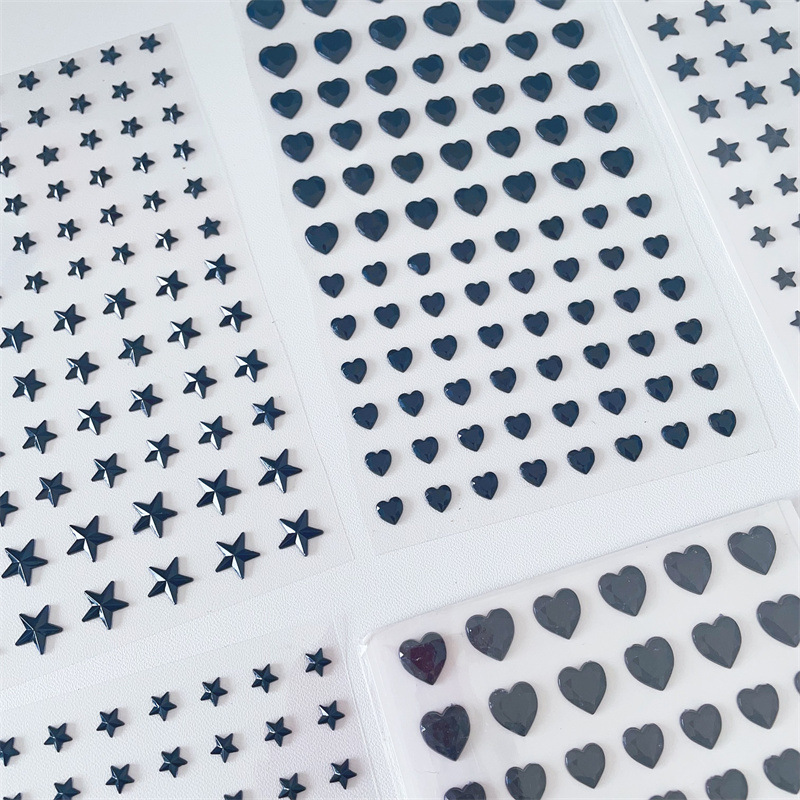 스티커 블랙 하트 스타 아크릴 다이아몬드 스티커 플랫 바닥 접착제 멀티 사이즈 혼합 행 맞춤형 화장품 얼굴 스티커