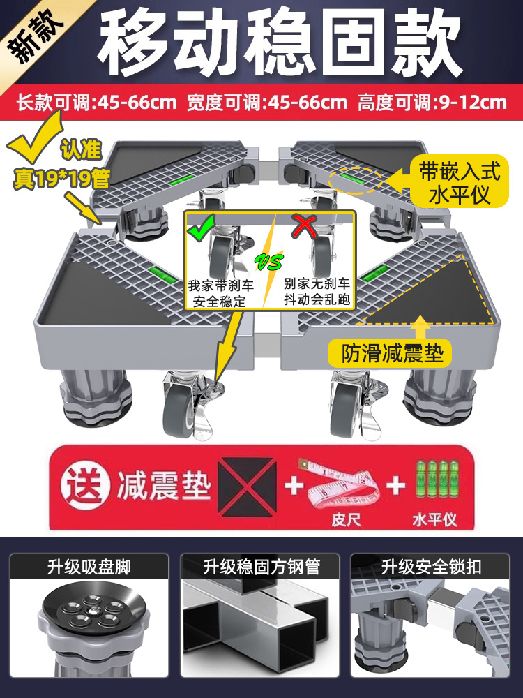 세탁기 베이스 랙 움직일 수 있는 저장 랙 보편적인 발 매트 냉장고 브래킷 반대로 진동 패드 높은 발 랙