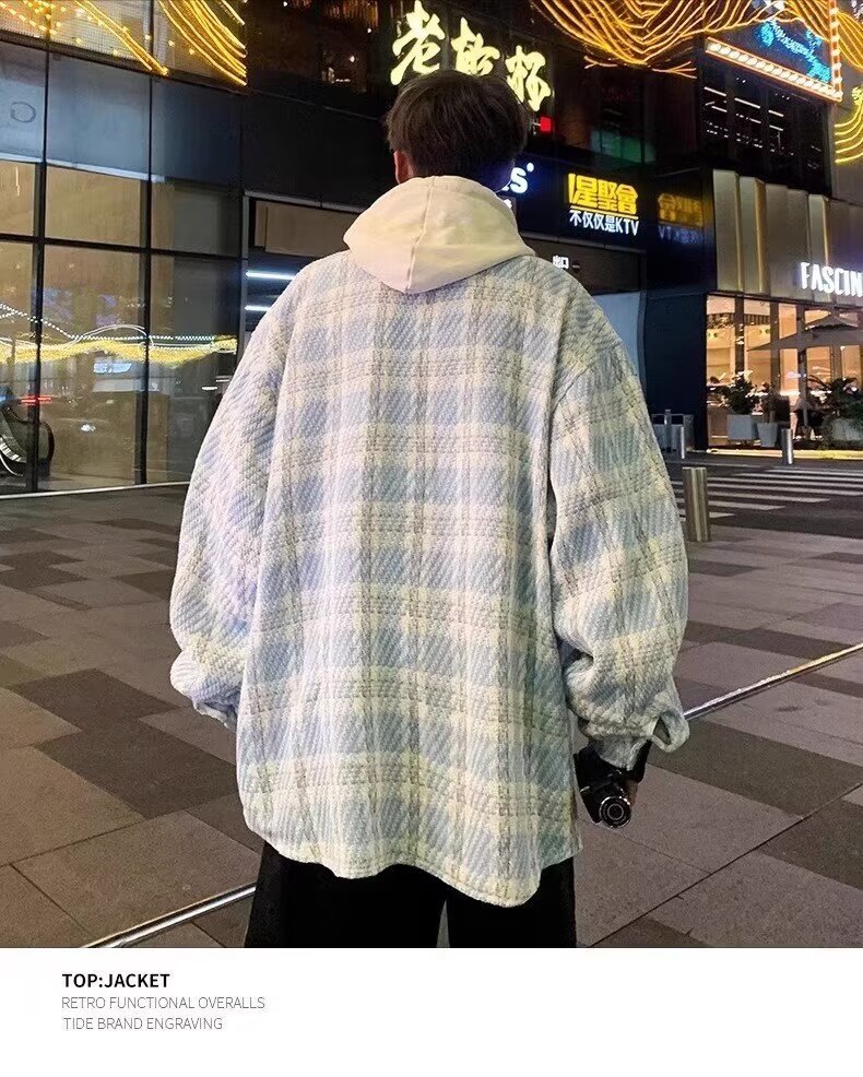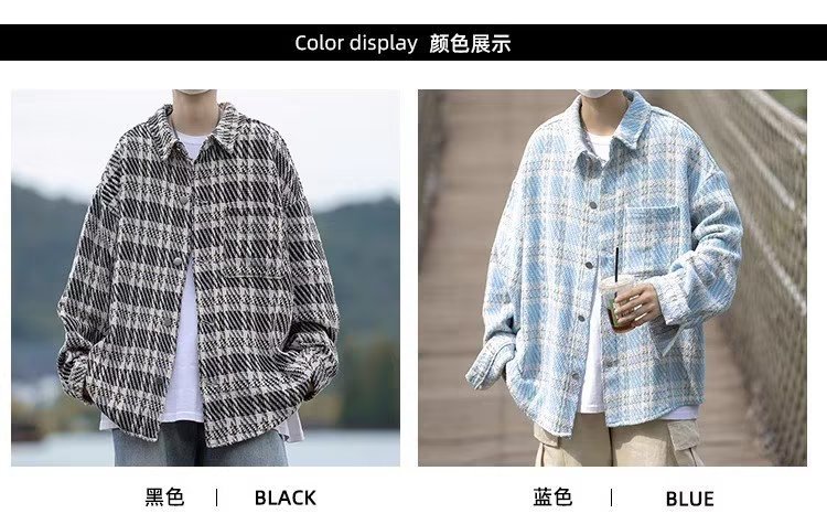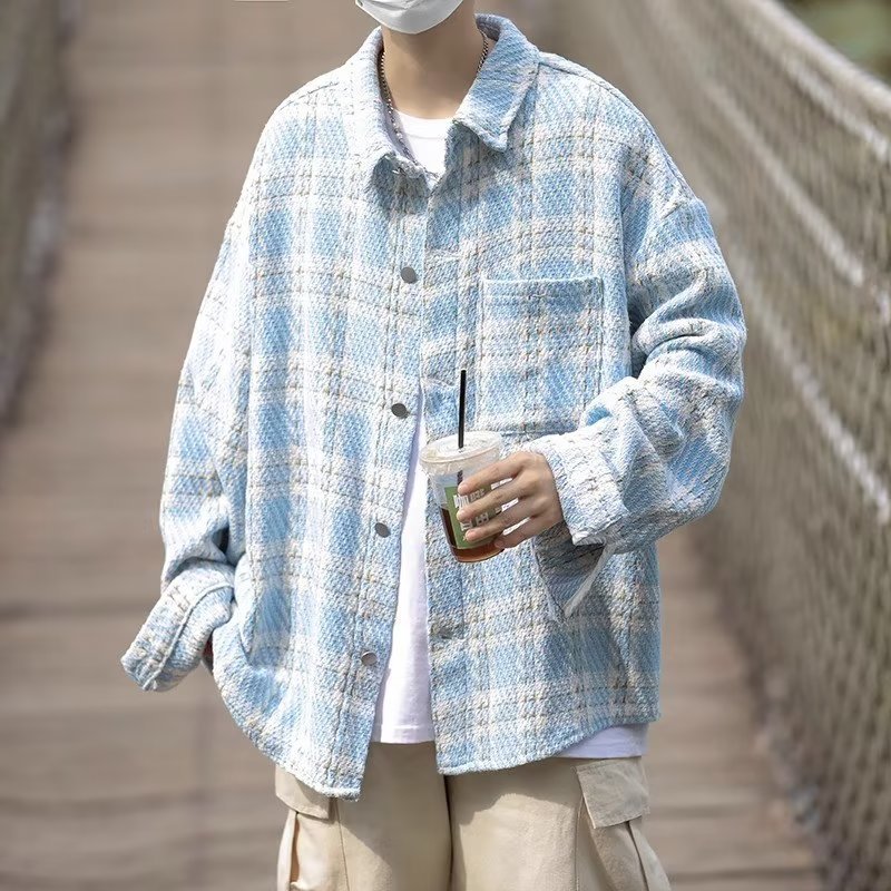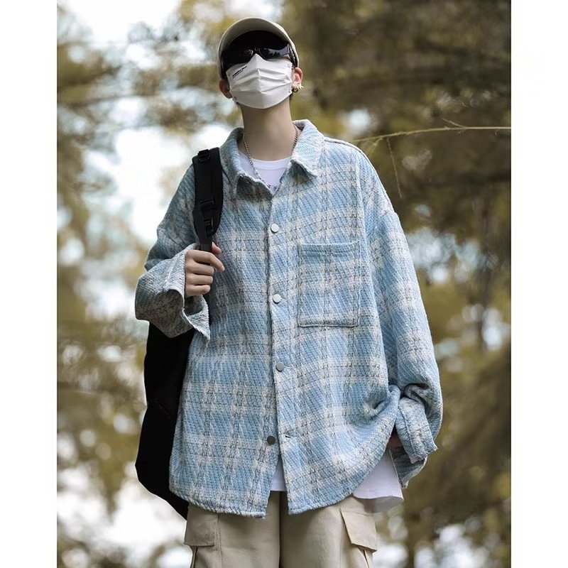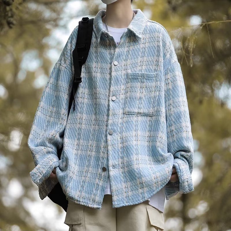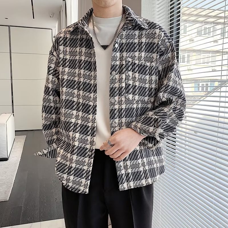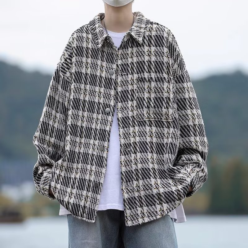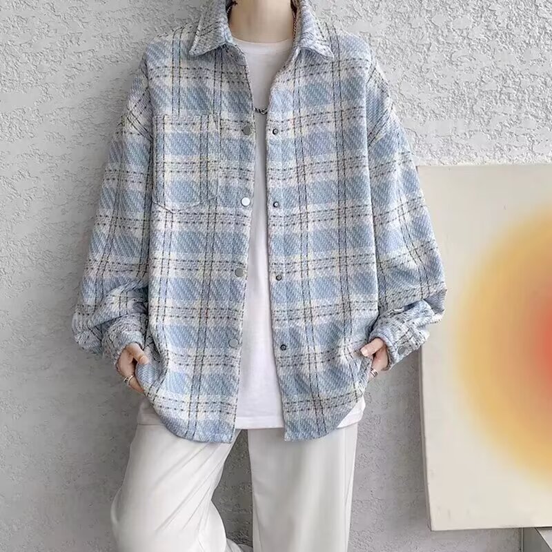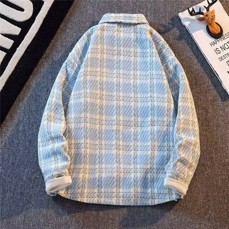 남자와 여자를위한 틈새 스타일 두꺼운 셔츠 유행 커플 니트 격자 무늬 셔츠 옷깃 긴 소매 자켓