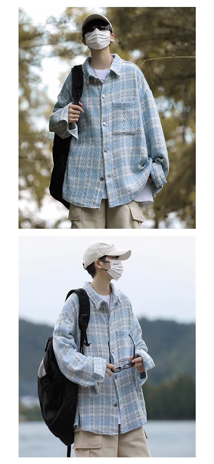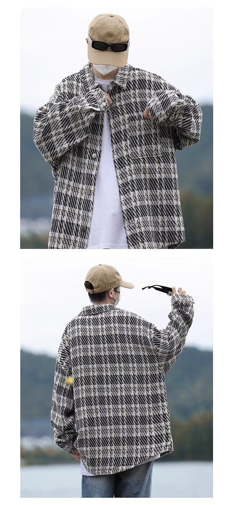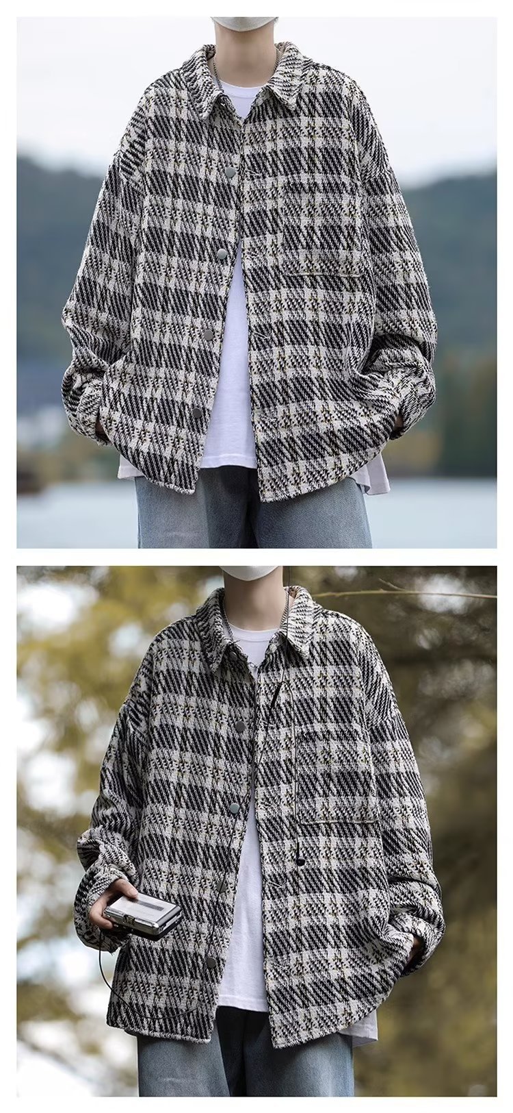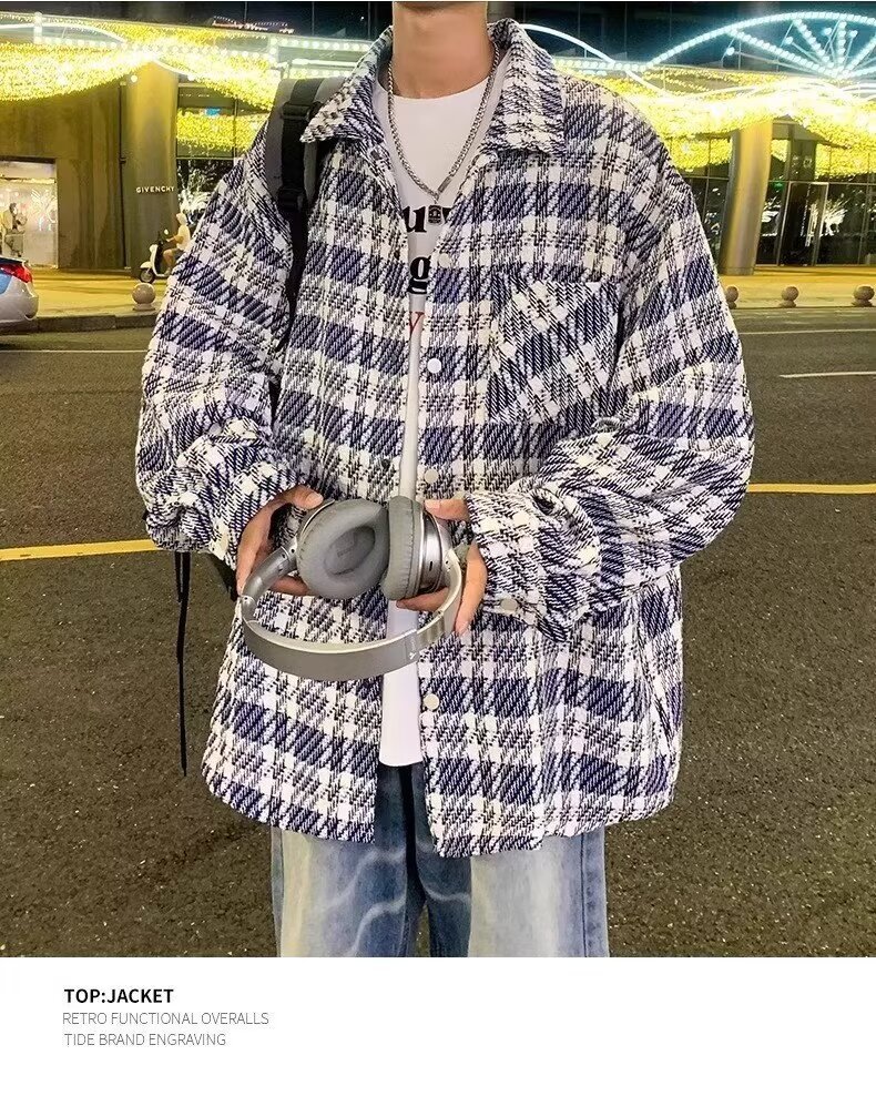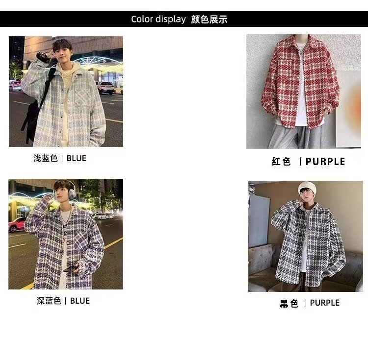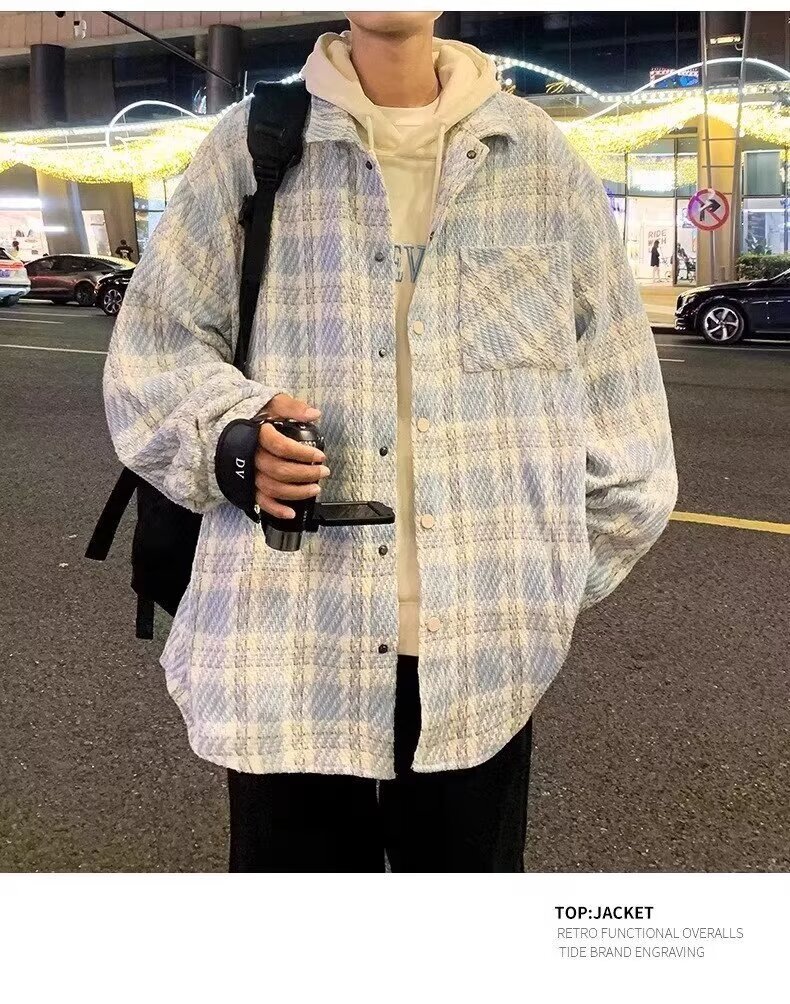 남자와 여자를위한 틈새 스타일 두꺼운 셔츠 유행 커플 니트 격자 무늬 셔츠 옷깃 긴 소매 자켓