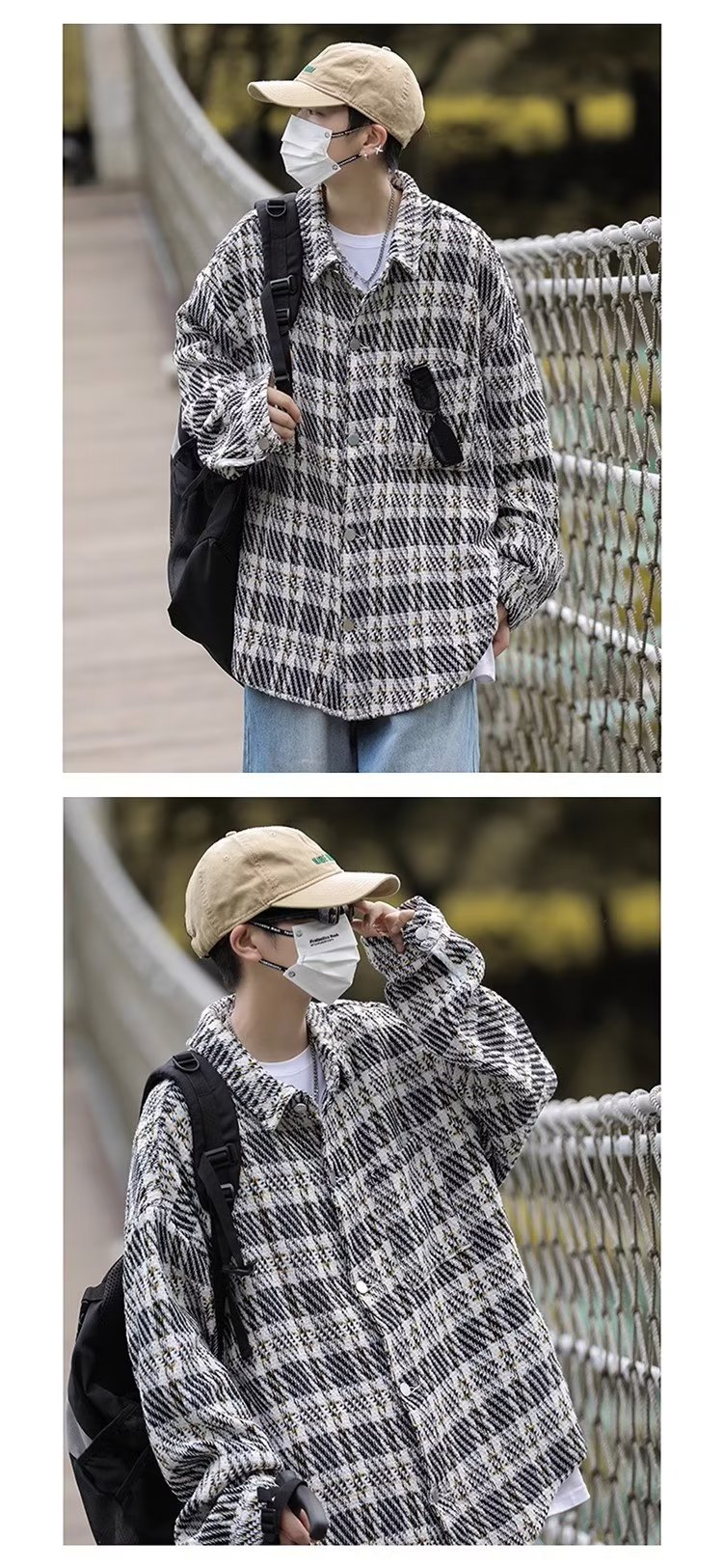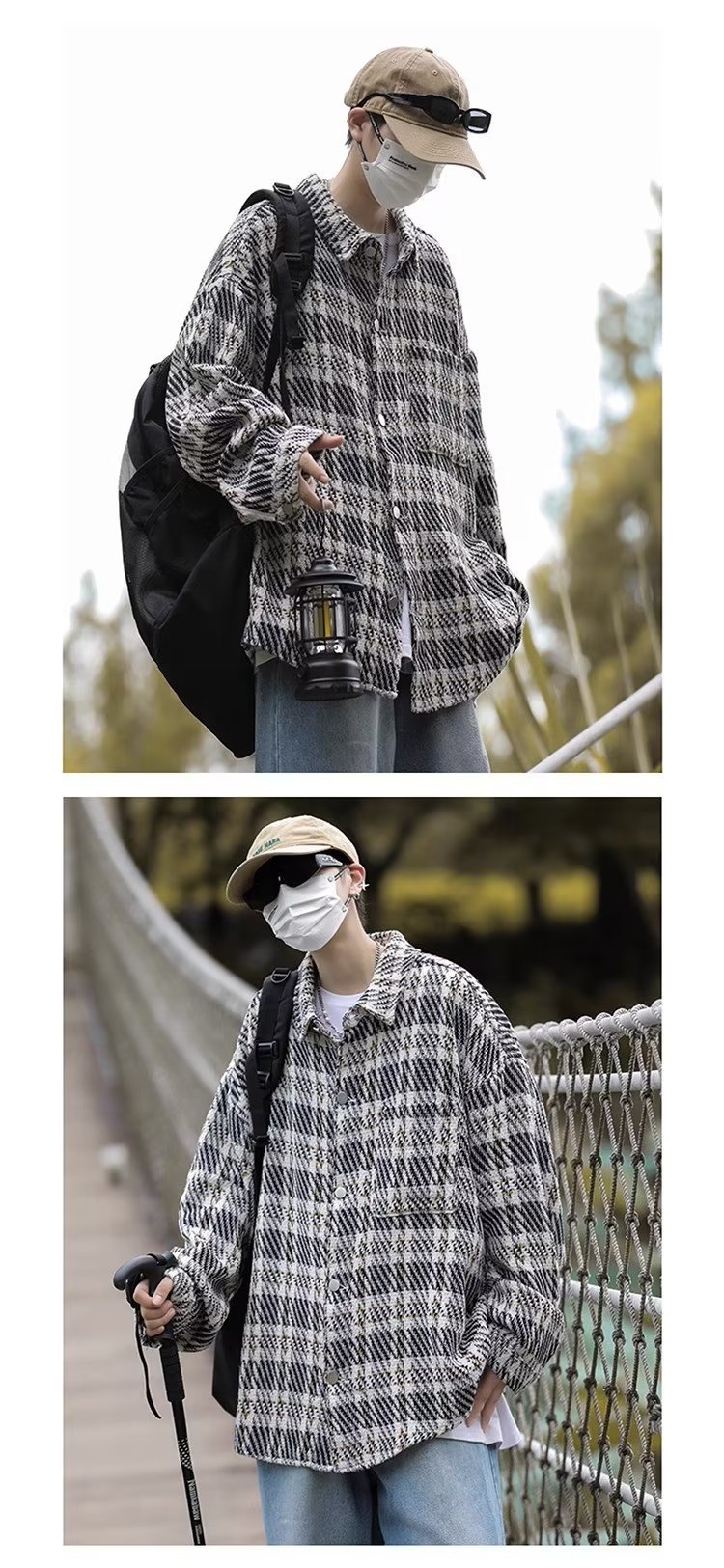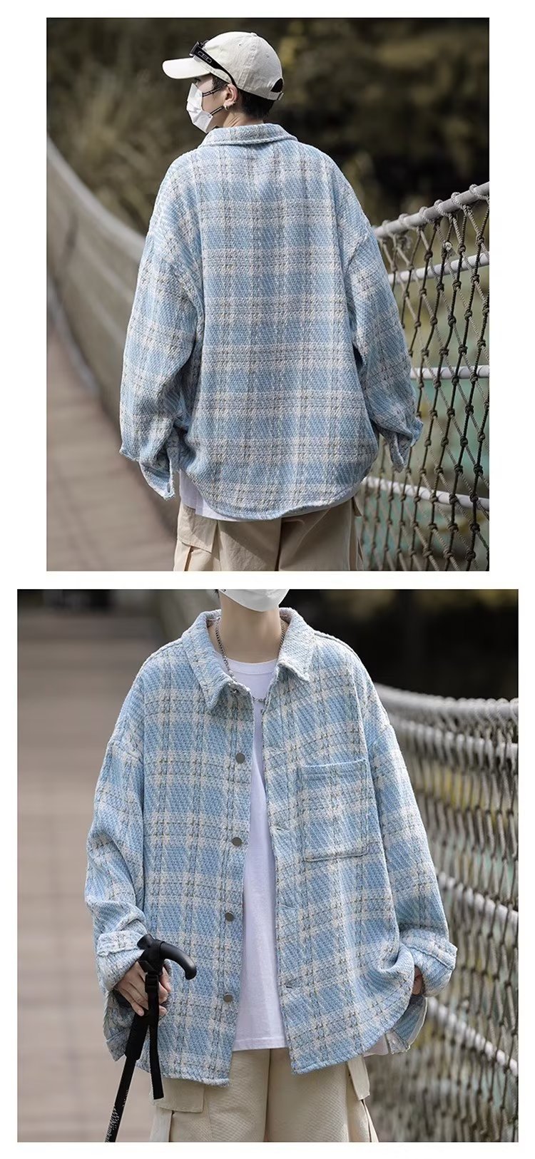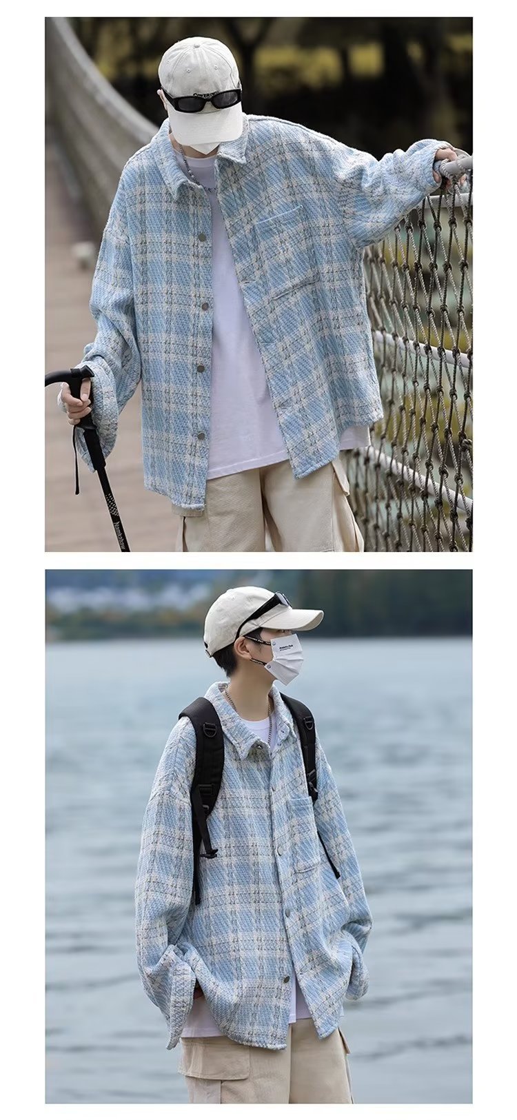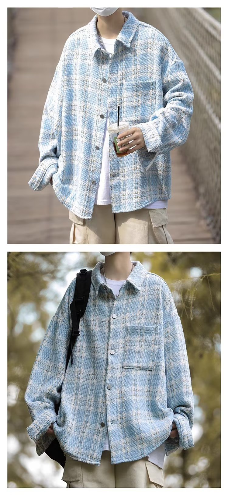 남자와 여자를위한 틈새 스타일 두꺼운 셔츠 유행 커플 니트 격자 무늬 셔츠 옷깃 긴 소매 자켓