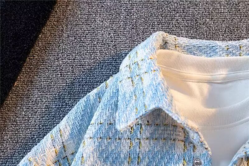 남자와 여자를위한 틈새 스타일 두꺼운 셔츠 유행 커플 니트 격자 무늬 셔츠 옷깃 긴 소매 자켓스토어 가기