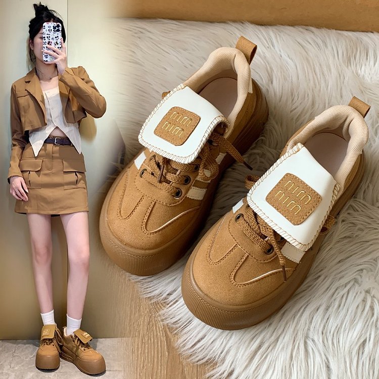 서리가 내린 옷깃 인형 신발 여성의 가을 2024 새로운 두꺼운 바닥 머핀 라운드 헤드 캐주얼 한국식 큰 머리 빵 신발 조수스토어 가기