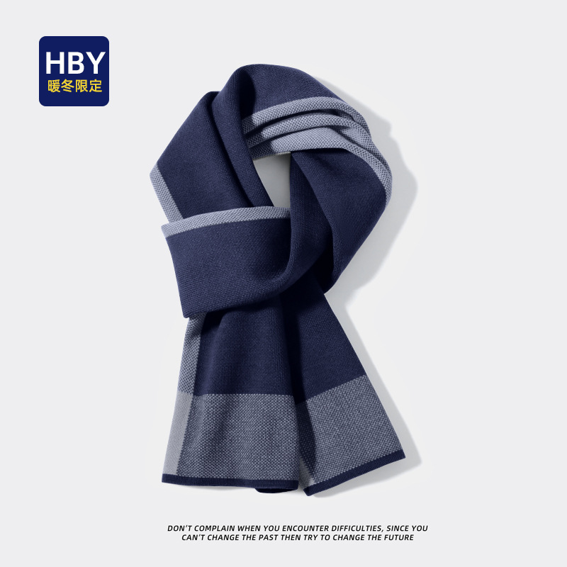 • 네이비 블루 라이트 플레이트 세 개의 두꺼운 줄무늬 투톤 스카프